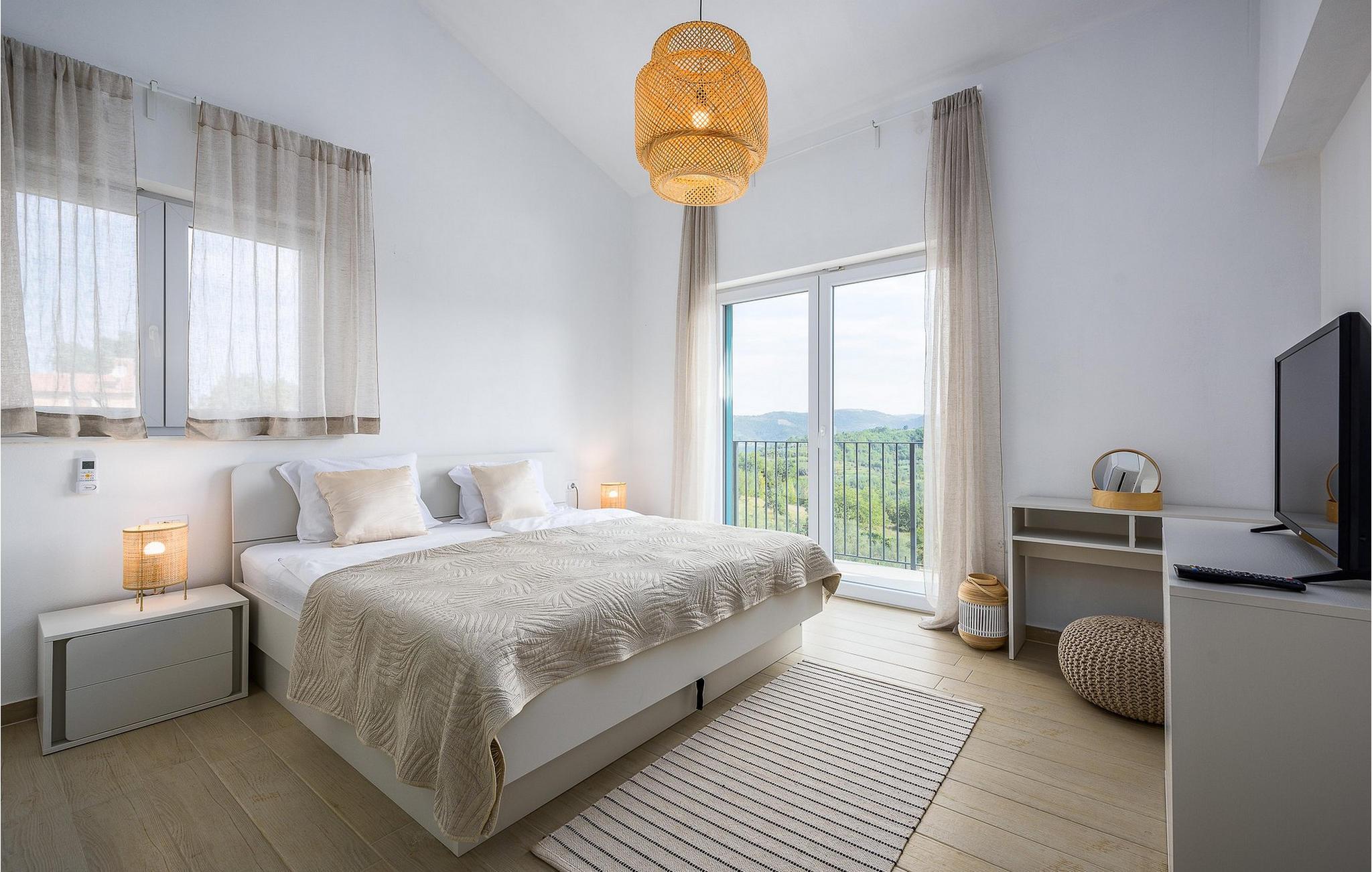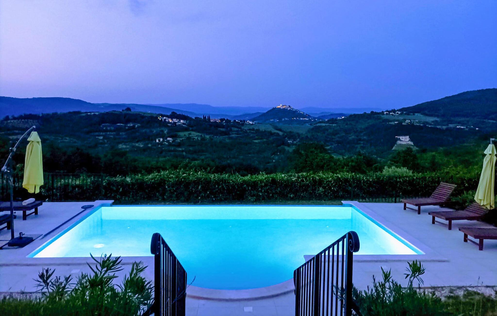 Die Villa Bianchera befindet sich in Karojba in der Nähe einer der berühmtesten mittelalterlichen Städte Istriens – Motovun. Die Stadt Motovun, früher Kastelijer genannt, liegt auf einem Hügel über dem Meeresspiegel. Die unberührten historischen Mauern schmücken noch immer diese atemberaubende Stadt und ziehen mit ihrer Einzigartigkeit und langen Tradition zahlreiche Touristen an. Die Villa Bianchera bietet in ihren drei geräumigen und luxuriösen Schlafzimmern, die mit Doppelbetten und eigenem Bad mit Dusche ausgestattet sind, Platz für sechs Personen. Alle drei Schlafzimmer befinden sich im ersten Stock dieser schönen Villa. Im Erdgeschoss der Villa gibt es ein Wohnzimmer, in dem auch zwei Personen auf einem Schlafsofa Platz finden, ein Esszimmer, eine voll ausgestattete und rustikal eingerichtete Küche, die auch den Bedürfnissen von Spitzenköchen gerecht wird, Toilette und Terrasse. Im Obergeschoss der Villa befinden sich Schlafzimmer und drei Badezimmer. Die Villa ist außerdem mit einem Esstisch und Grill im Freien ausgestattet, was sie ideal zum Essen und für entspannte Abendveranstaltungen voller Lachen und Gespräche macht. Diese schöne und luxuriöse Villa verfügt über einen 40 m2 großen Pool und 6 Liegestühle, die ihn umgeben. Der Pool ist von Anfang Mai bis Ende Oktober verfügbar. Gäste dieser Villa haben außerdem die Möglichkeit, 8 private Parkplätze zu nutzen. Motovun liegt im nördlichen Teil Istriens in der Nähe des Flusses Mirna. Diese wunderschöne mittelalterliche Stadt wird von mittelalterlicher Architektur dominiert und ist von Weinbergen und einer Waldlandschaft umgeben. Der historische Reichtum und die Erhaltung historischer Denkmäler machen diese Stadt für Historiker äußerst interessant. Motovun ist Sitz des Zentrums des Internationalen Forschungszentrums für Spätantike, Frühmittelalter und Anthropologische Wissenschaften. Besuchen Sie bei einem Besuch in Motovun unbedingt das berühmte Filmfestival, das jedes Jahr im Juli stattfindet, und die Internationale Sommerschule für Architektur. Diese Gegend ist äußerst reich an den berühmten schwarzen und weißen Trüffeln (Tuber Magnatum), einem unterirdischen Pilz, der in der kulinarischen Welt hoch geschätzt wird und Motovun zu einer wahren Gourmet-Oase macht. Die Gegend von Motovun ist reich an verschiedenen Legenden und Geschichten aus der Antike. Eine der bekanntesten ist die Geschichte von Veli Joža, einem guten, sanften Riesen, der traditionell das Volk Istriens symbolisiert. Buchen Sie Ihren Urlaub und lassen Sie sich von der Villa Bianchera mit ihrem Charme verführen. Genießen Sie in guter Gesellschaft und bei einem Glas feinen istrischen Teran- oder Malvasia-Weins die Aussicht auf Motovun, die Hänge der istrischen Weinberge, den Motovun-Wald mit dem Rauschen des Flusses Mirna am Fuße von Motovun.