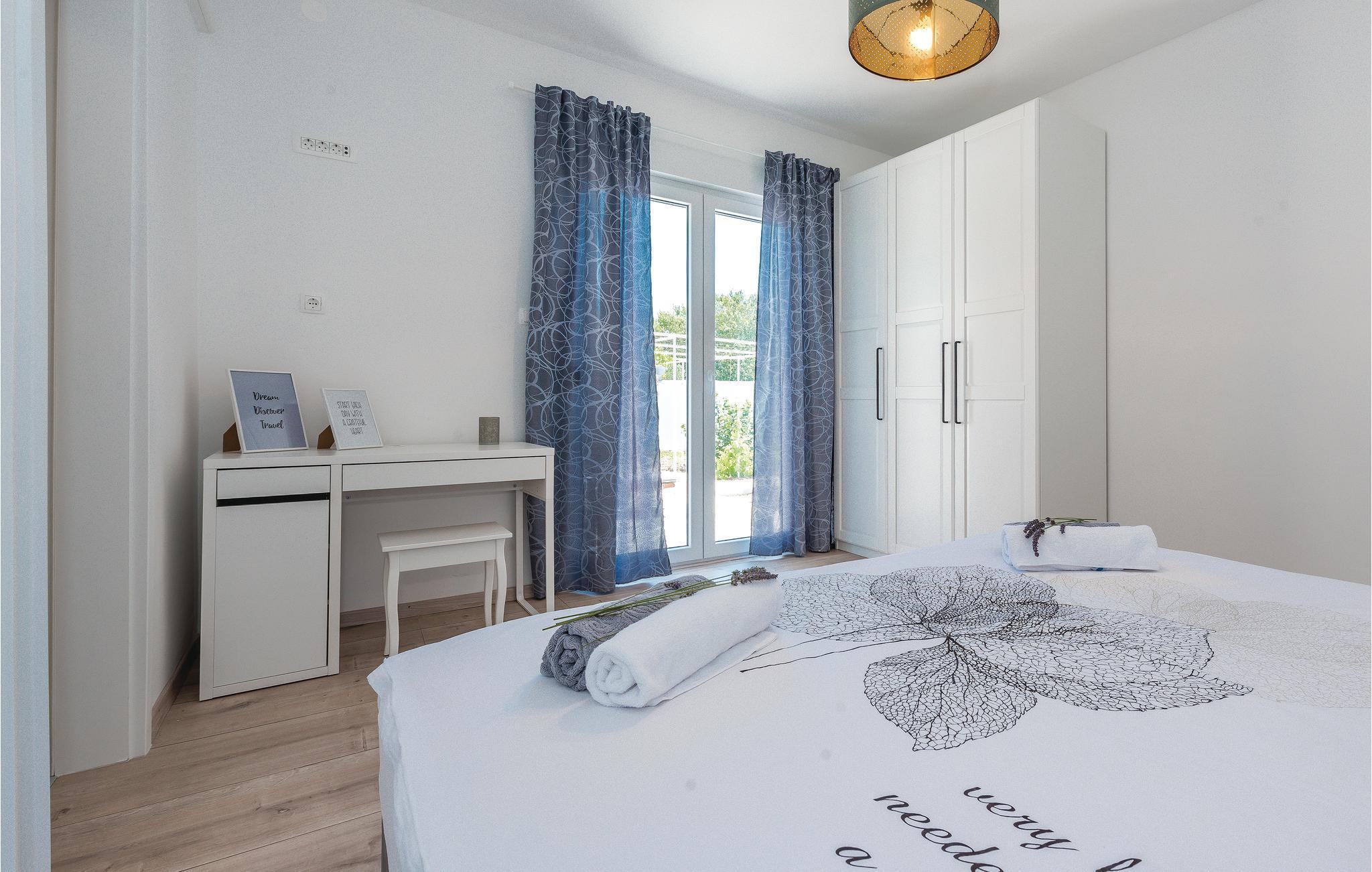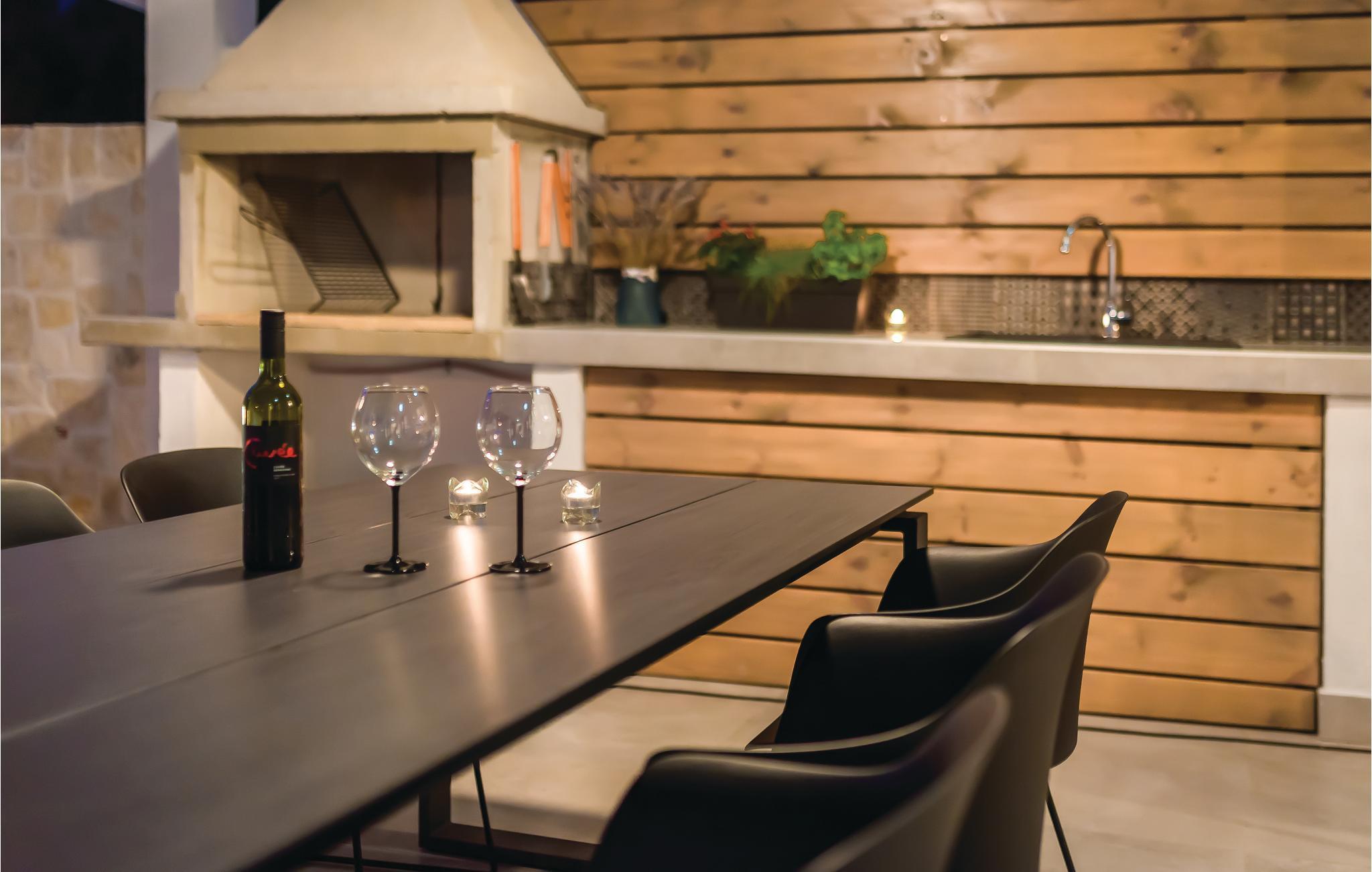 Dieses moderne und geschmackvoll eingerichtete Ferienhaus befindet im Dorf Betina auf der schönen Insel Murter, die in Tisno durch eine Brücke mit dem Festland verbunden und somit leicht zu erreichen ist. Das gemütliche Ferienhaus eignet sich perfekt für einen ruhigen Familienurlaub oder den gemeinsamen Urlaub von zwei Paaren. Ihnen stehen ein Außenpool und eine geräumige Terrasse mit Sonnenliegen zur Verfügung. Außerdem gibt es eine überdachte Terrasse mit Grill und Gartenmöbeln. Aktivurlauber sollten zweifellos einen Ausflug zum Nationalpark Kornati Inseln machen. Besuchen Sie auch unbedingt die historischen Städten Sibenik und Zadar.