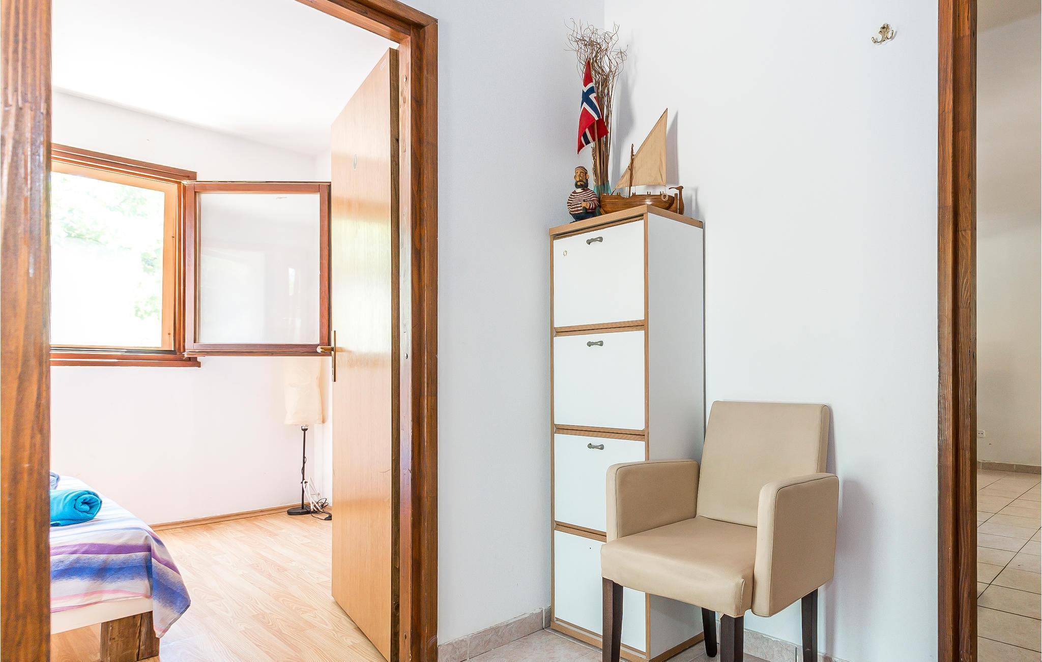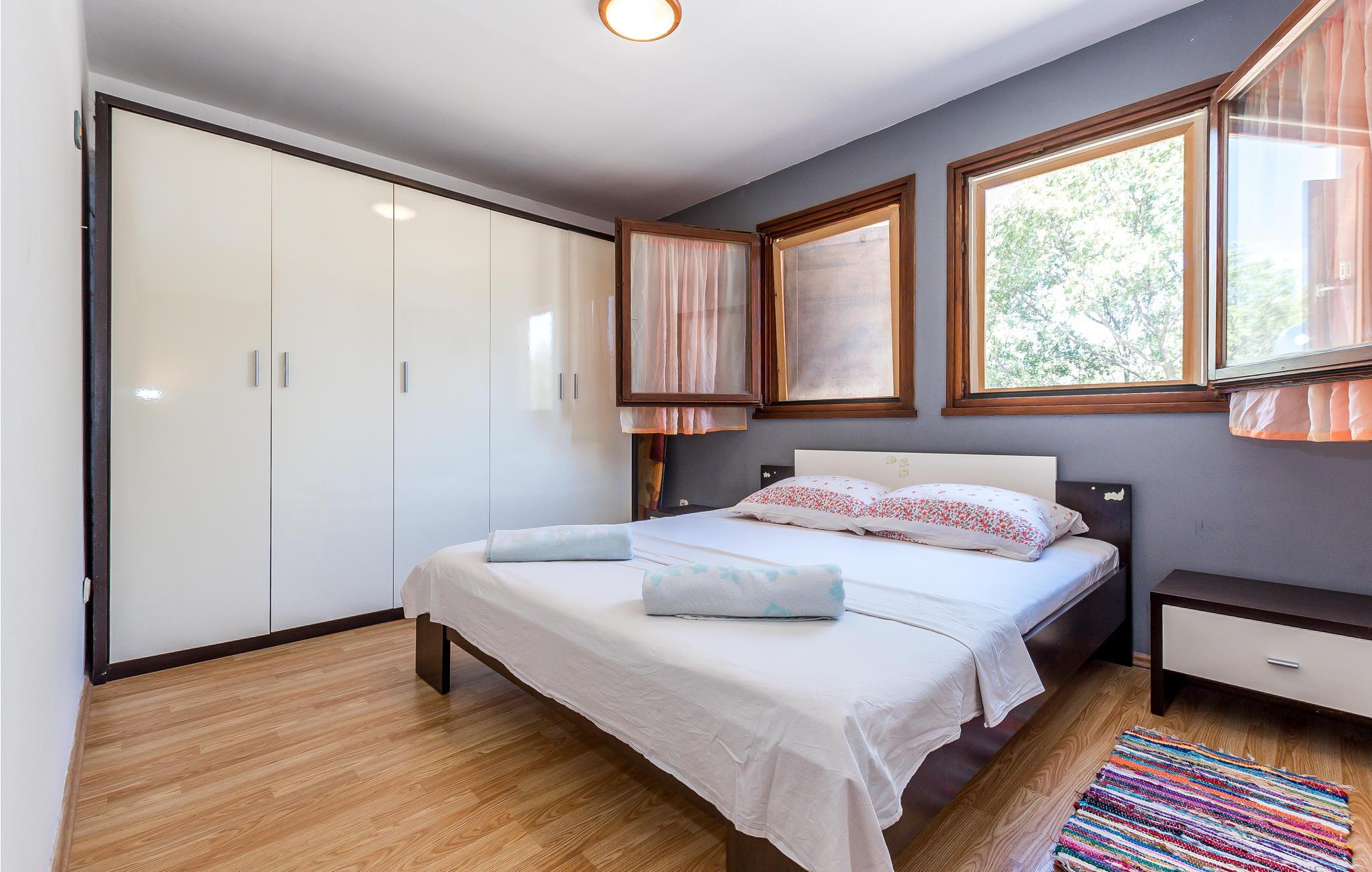 Dieses Ferienhaus, eingebettet in der Natur, befindet sich im malerischen Ort Jezera auf der Insel Murter. Umgeben von viel Grün werden Sie Ruhe und Privatsphäre sowie wunderschöne Strände finden. Das Haus ist ideal für einen idyllischen Urlaub mit der Familie oder Freunden. Auch wenn sich das Ferienobjekt in einer sehr ruhigen Gegend befindet, sind es nur einige Gehminuten zum Zentrum Jezeras. Hier erwarten Sie unzählige Restaurants und eine sommerliche Unterhaltung. Die Insel Murter ist beim Ort Tisno durch eine Brücke mit dem Festland verbunden, sodass Sie auch die Möglichkeit haben, den Krka Nationalpark mit seinen Wasserfällen zu besuchen. Besuchen Sie auch die Stadt Murter, die nur 5 km entfernt liegt sowie den Nationalpark Kornati.