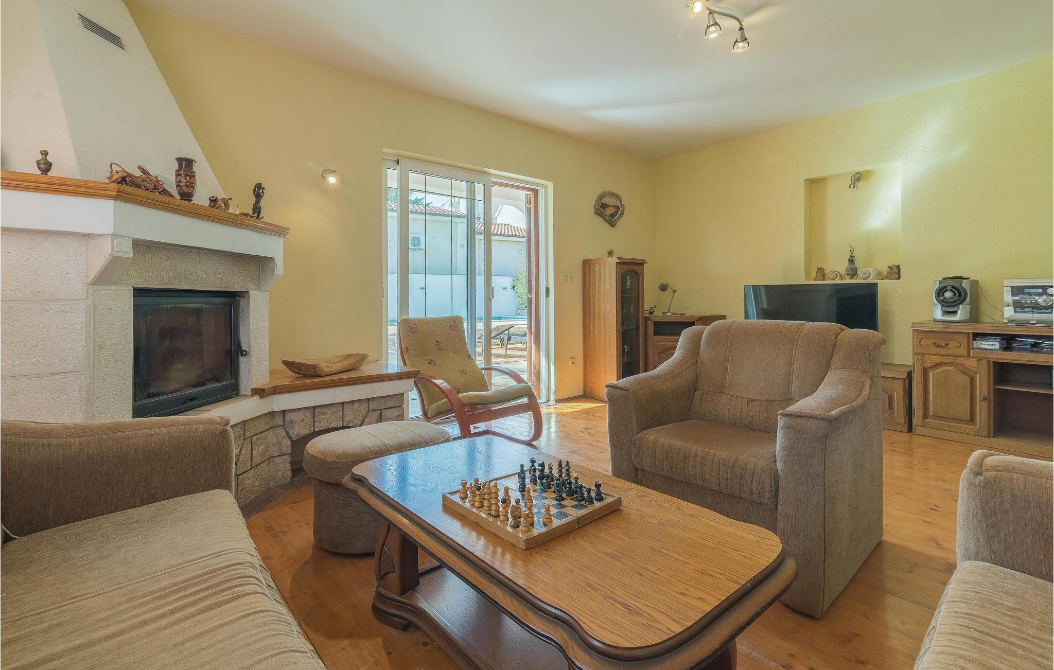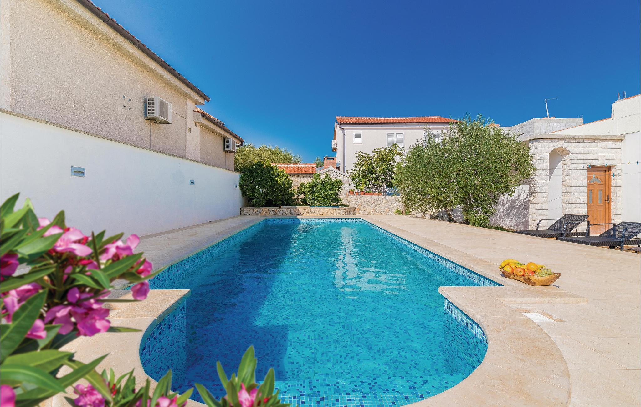 Verbringen Sie einen angenehmen Urlaub auf der Insel Murter, in diesem schönen Poolhaus am Rande der Ortes Jezero. Es befindet sich auf einem großzügigen und eingezäunten Grundstück in einer sehr ruhigen und grünen Umgebung. Dieses geschmackvoll und funktionell eingerichtete Ferienhaus wird Ihren Bedürfnissen entsprechen. Unternehmen Sie einen Spaziergang bis zur Ortsmitte, in der Sie verschiedene Einrichtungen finden. Genießen Sie den Swimmingpool oder die Natur und das wunderschöne Meer an einem der umliegenden Strände. Kosten Sie die Spezialitäten dieser Region in einem der Restaurants und spüren Sie den Charme dieser kleinen dalmatinischen Stadt.