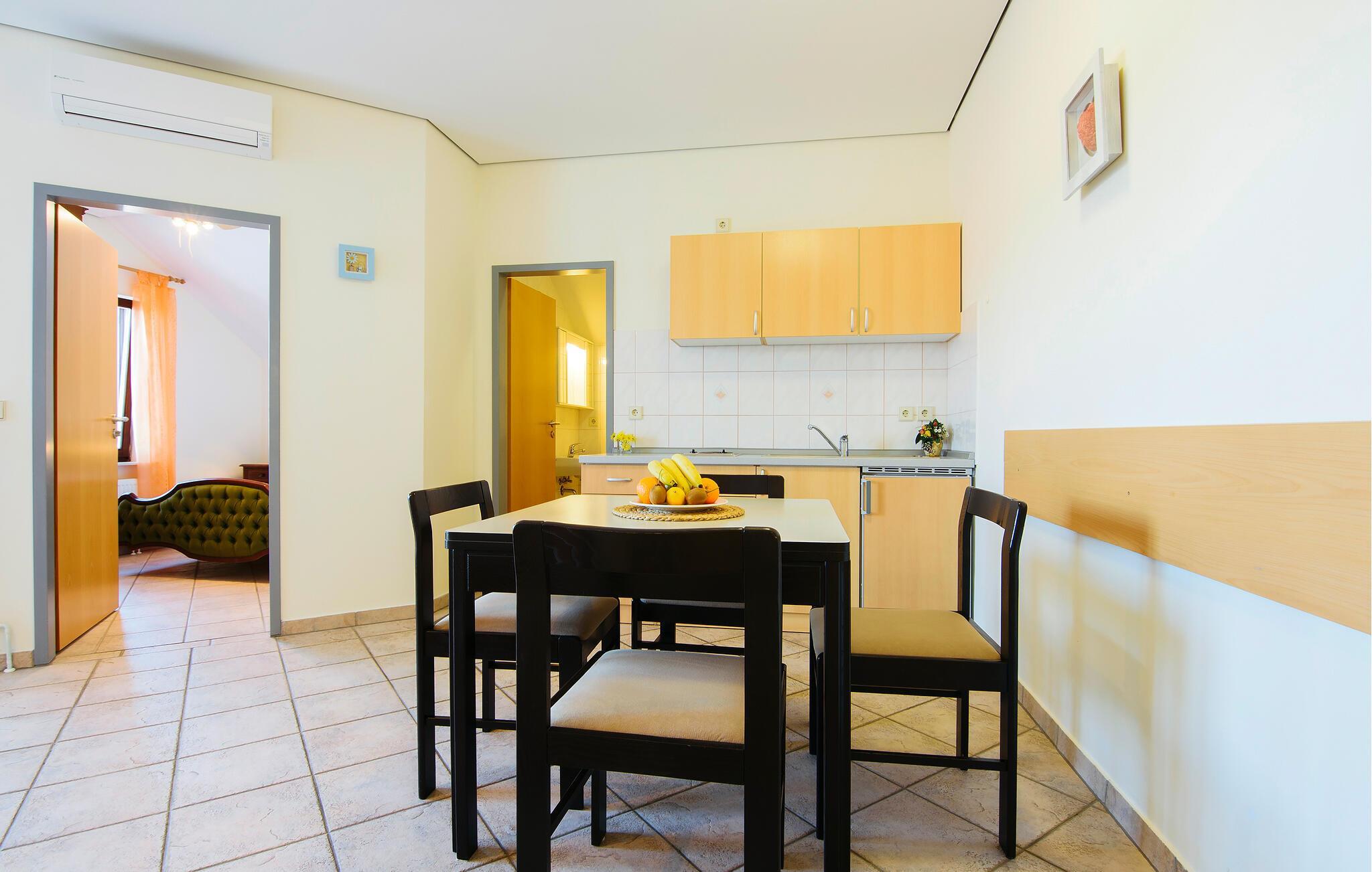 Diese gepflegte Ferienwohnung bietet Ihnen eine ideale Basis, um bei wunderschönen Ausflügen die reizvolle Landschaft zu erkunden. Kochen Sie Ihre Mahlzeiten in der offenen Küche und nehmen Sie am einladenden Esstisch Platz, wo Sie bequem Ihre nächsten Unternehmungen planen oder den Tag mit einem Spieleabend ausklingen lassen können.
