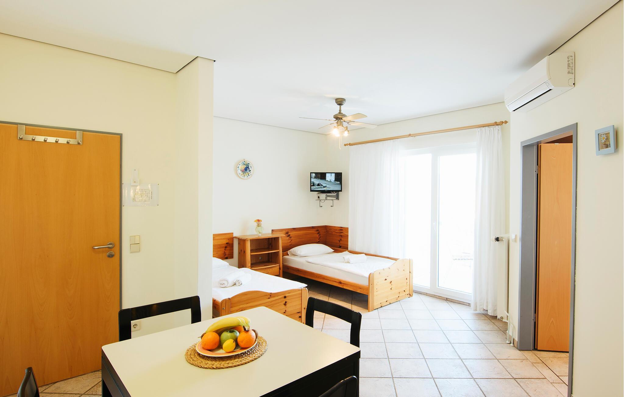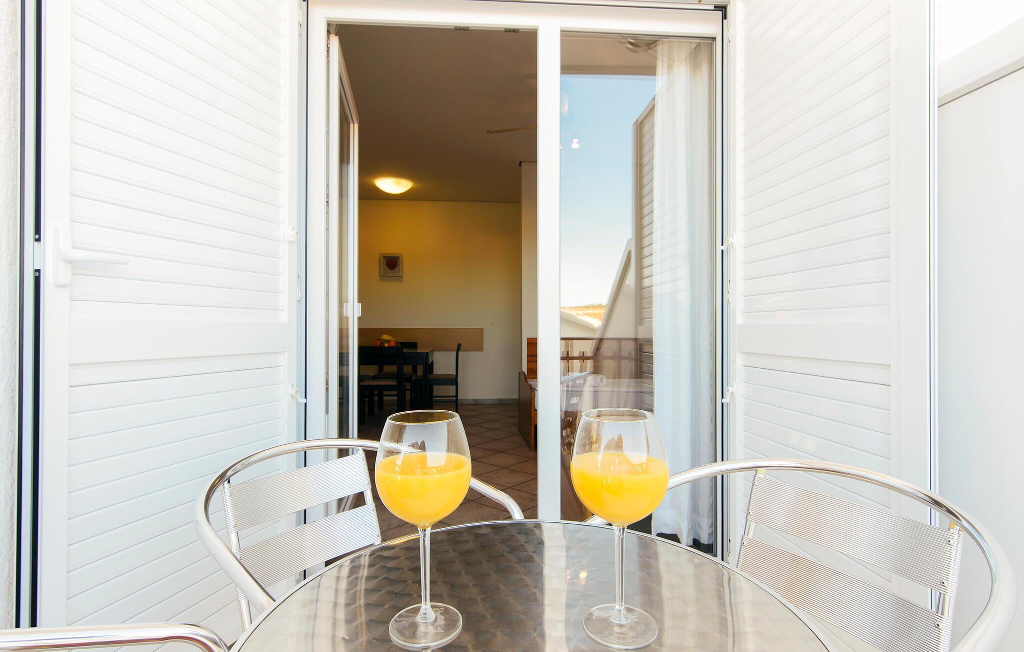 Servieren Sie Ihr Frühstück auf Ihrer kleinen Terrasse oder genießen Sie mediterrane Sommerabende hier bei einem Glas Wein.