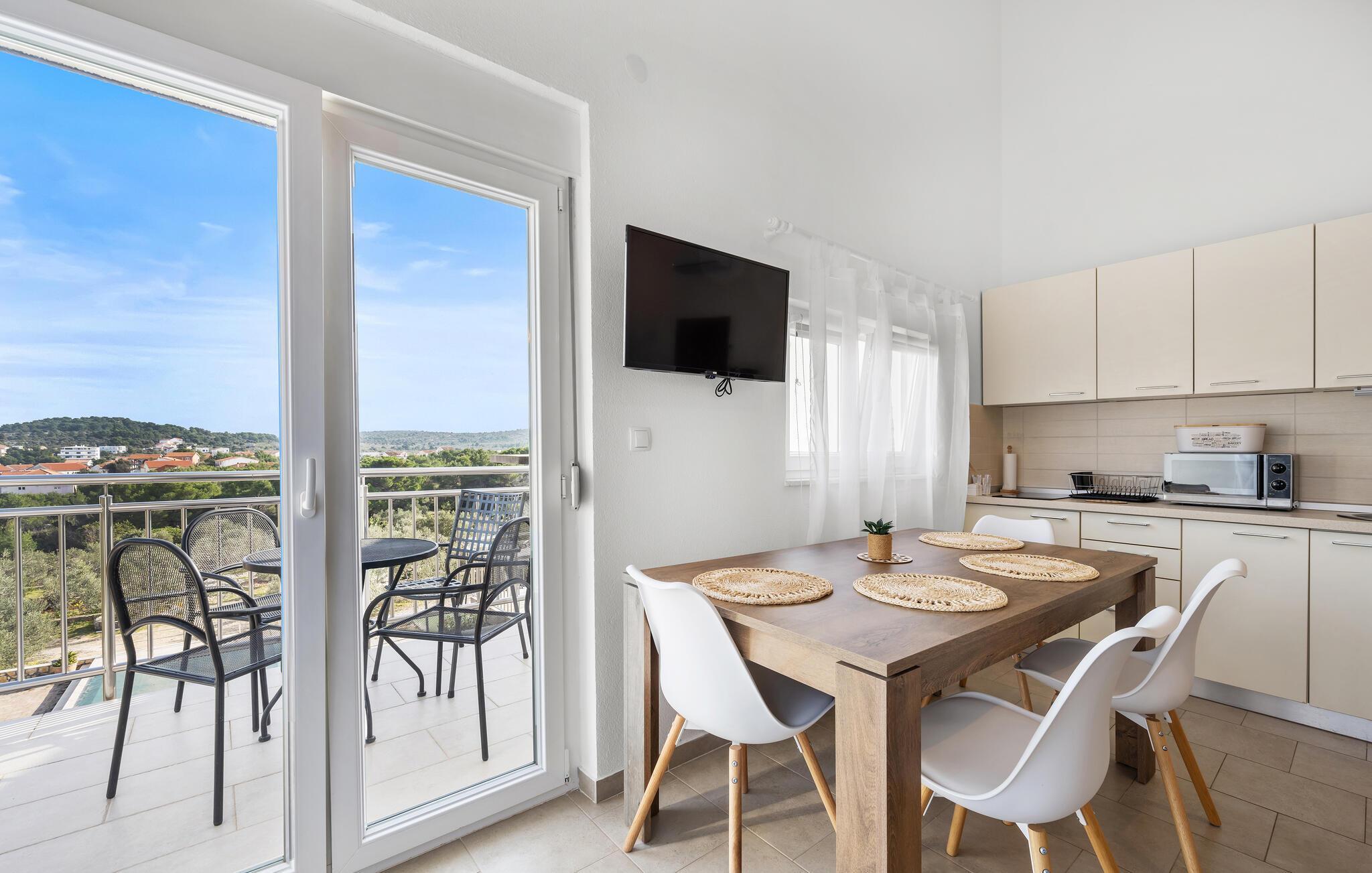 Die Umgebung lädt zu zahlreichen Erkundungen ein: Besuchen Sie die Strände und Buchten der Insel Murter, unternehmen Sie eine Bootstour durch den Nationalpark Kornaten oder erkunden Sie die historische Stadt Šibenik. Auch die beeindruckenden Krka-Wasserfälle und das charmante Tisno sind nur eine kurze Fahrt entfernt.