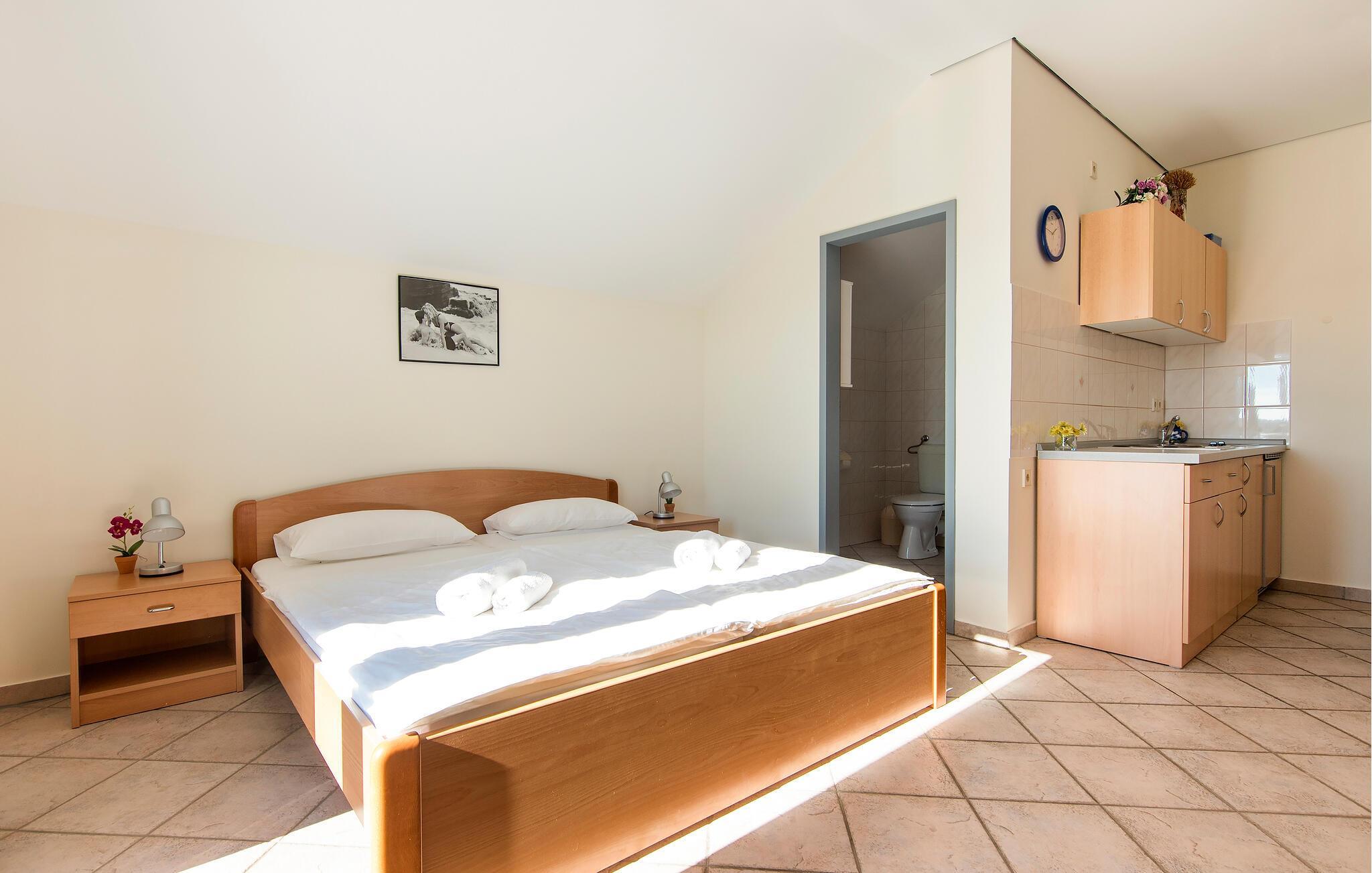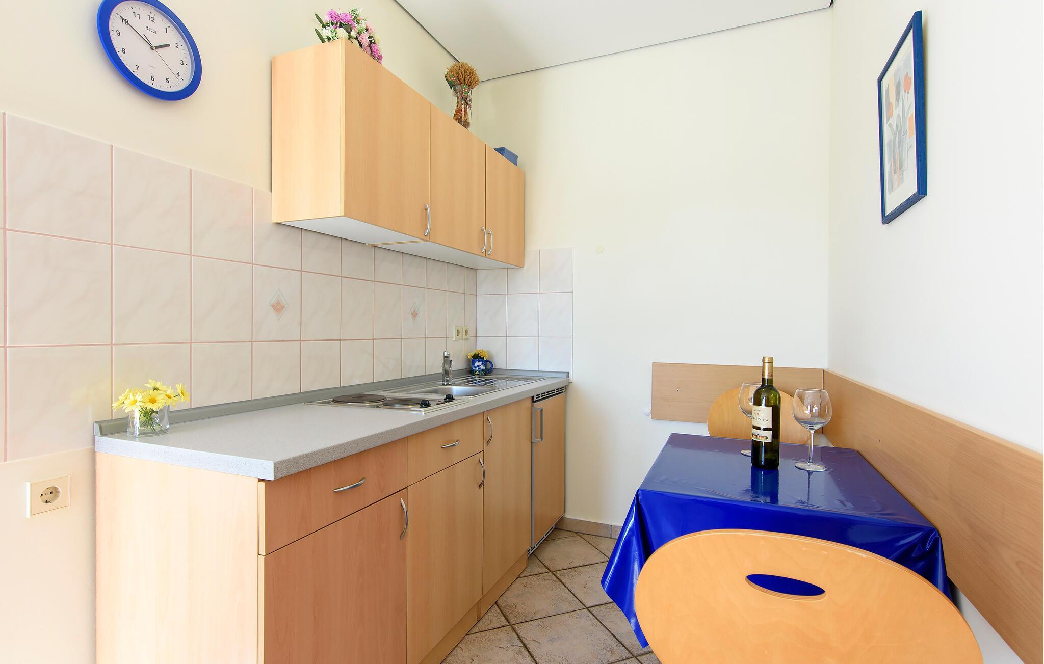 Dieses helle und gepflegte Studio bietet Ihnen eine freundliche Basis für eine entspannte Auszeit an der Adria. Bereiten Sie in der charmanten Küche Ihre Lieblingsgerichte zu und nehmen Sie am einladenden Esstisch Platz. Planen Sie hier Ihre nächsten Ausflüge oder lassen Sie den Tag mit einem Spieleabend ausklingen.