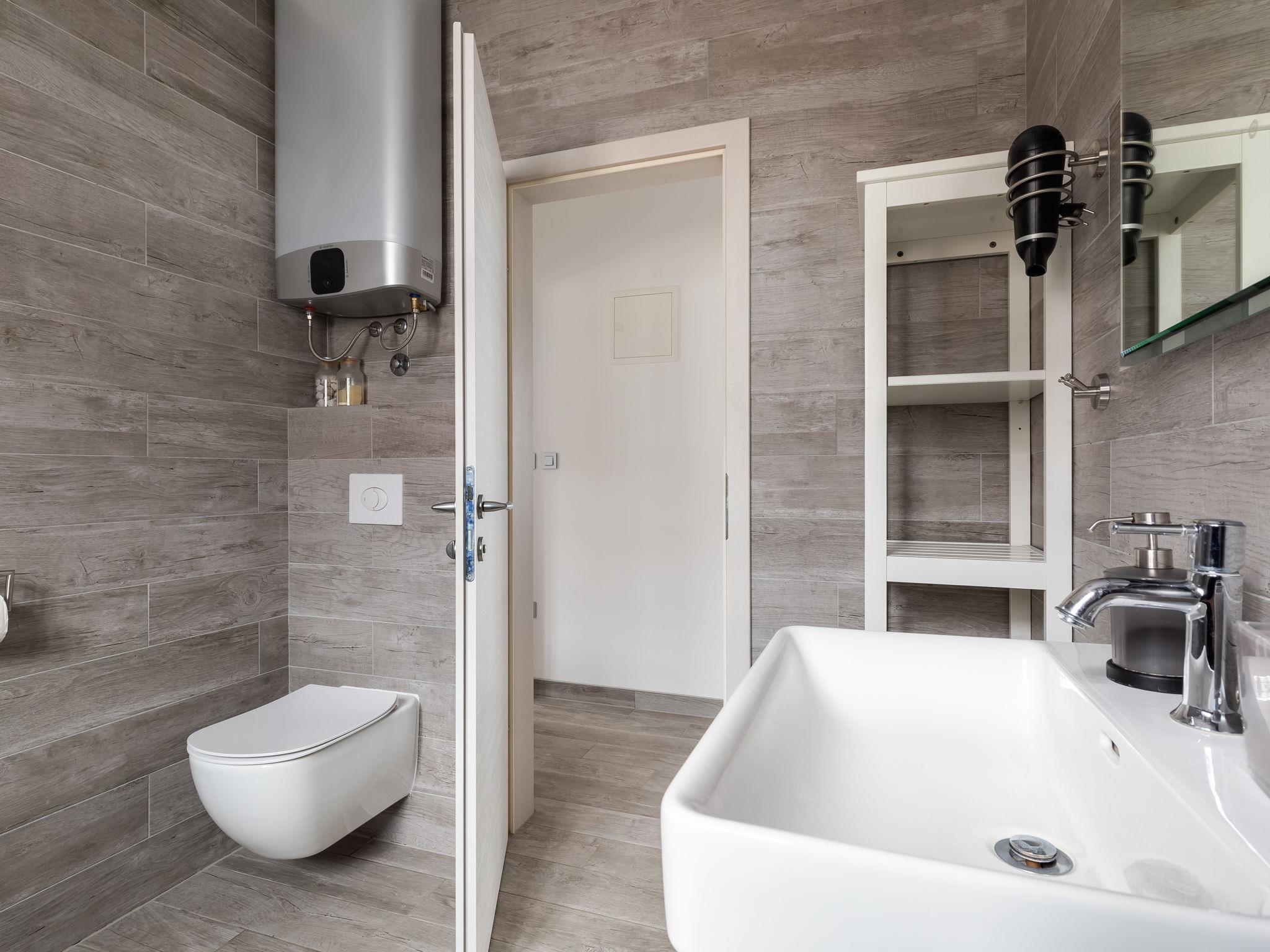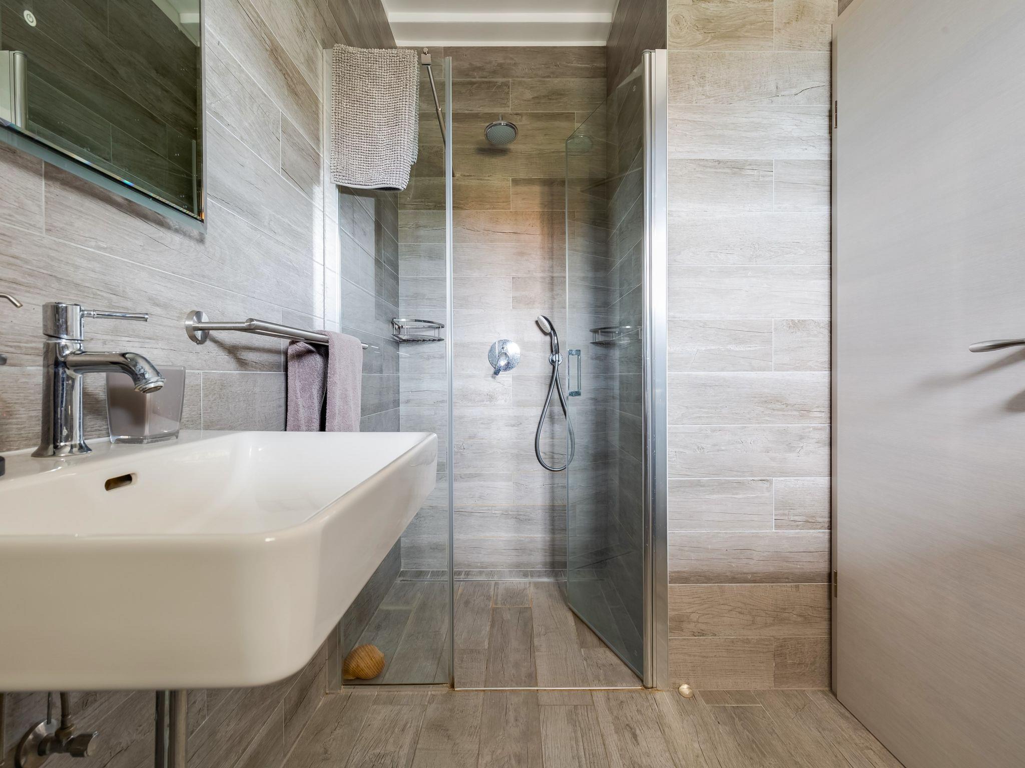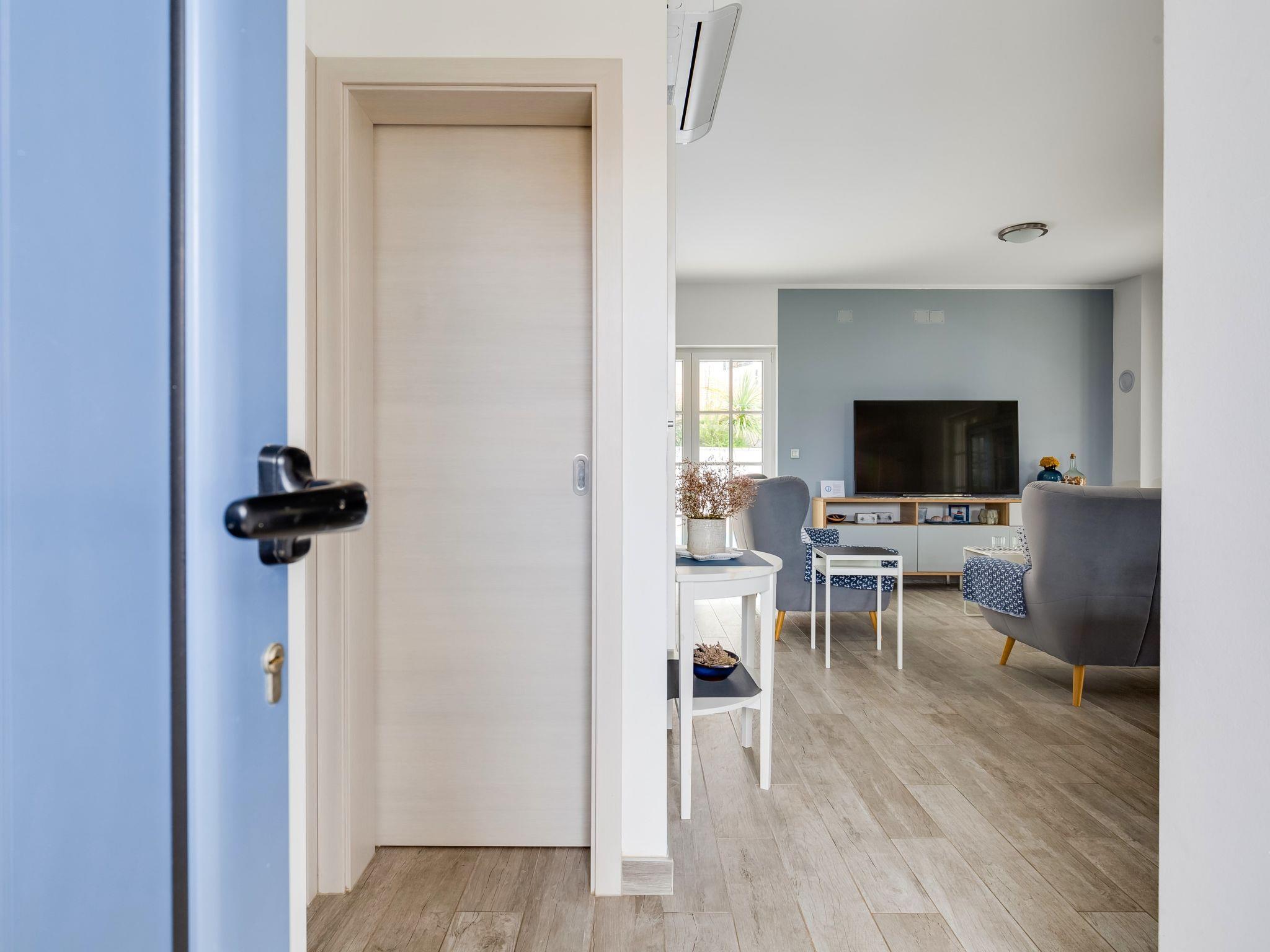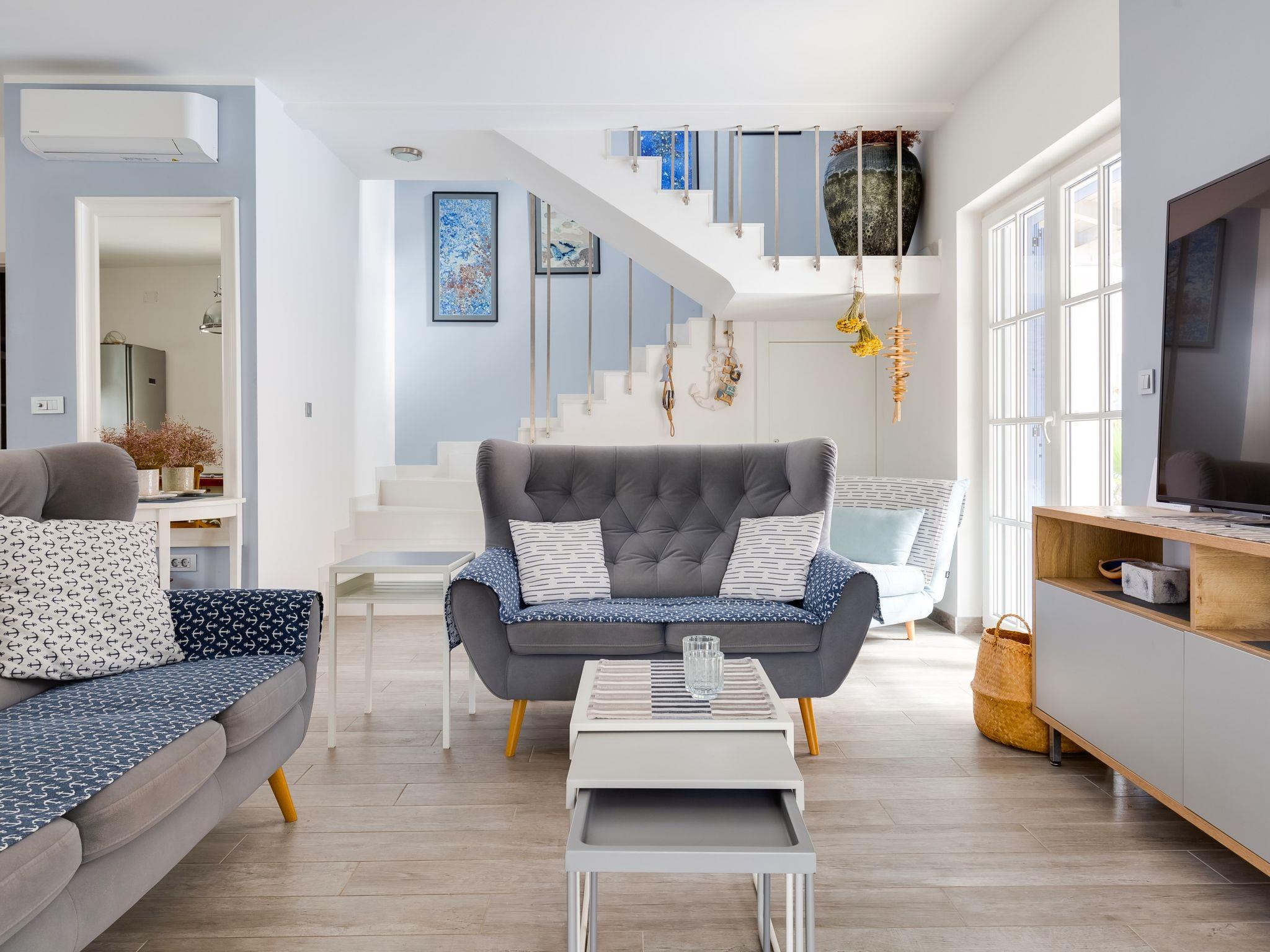 3-Zimmer-Doppelhaushälfte 120 m2 auf 2 Stockwerken. Wohn-/Esszimmer 30 m2 mit 2 Betten (100 cm, Länge 200 cm), TV (Flachbildschirm), Klimaanlage. Ausgang zur Terrasse. Offene Küche (Backofen, Geschirrspüler, 4 Glaskeramikplatten, Toaster, Tiefkühler, elektrische Kaffeemaschine). Ausgang zur Terrasse. Dusche/WC. Obergeschoss: 1 Zimmer mit 1 franz. Bett (200 cm, Länge 220 cm), TV (Flachbildschirm), Klimaanlage. Ausgang zum Balkon. 1 Zimmer mit 2 Betten (100 cm, Länge 200 cm), Klimaanlage. Ausgang zum Balkon. Bad/WC. Keine Heizmöglichkeit. 2 Balkone 6 m2. Terrassenmöbel, Balkonmöbel, Liegestühle. Zur Verfügung: Safe, Bügeleisen, Haartrockner. Internet (Wireless LAN, gratis). Bitte beachten: Nichtraucher-Haus. 1 kleines Haustier/Hund erlaubt.