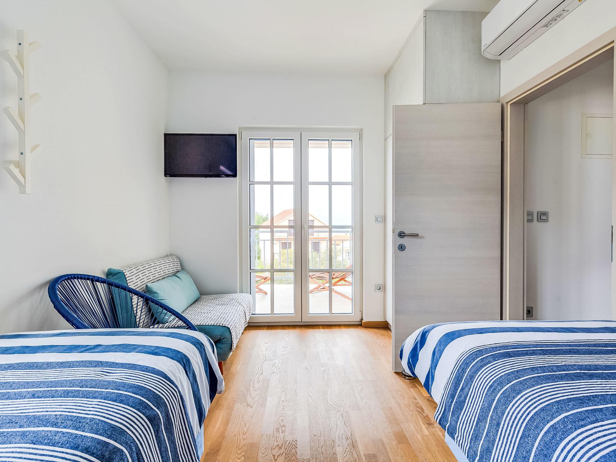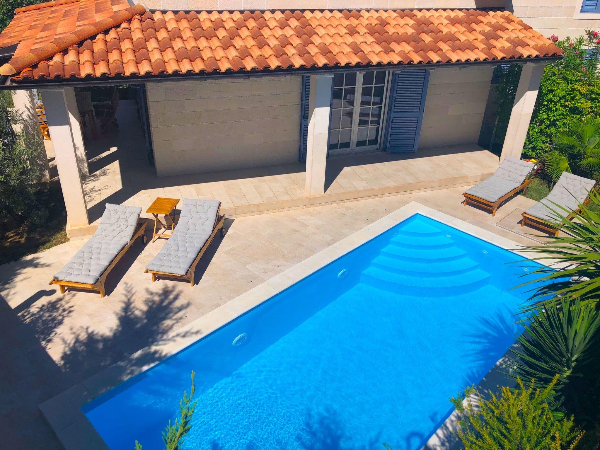 Schönes Doppelhaus "Mala", auf 2 Stockwerken. 1 km vom Zentrum von Murter, sonnige Lage, 900 m vom Meer, 900 m vom Strand. Zur Alleinbenutzung: Grundstück 330 m2, Schwimmbad eckig (21 m2, 150 cm tief, saisonale Verfügbarkeit: 01.Jun. - 30.Sep.) mit Innentreppe. Aussendusche, Terrasse (22 m2), Gartenmöbel, Grill. Im Hause: Internetzugang, Waschmaschine. Parkplatz (für 2 Autos) beim Haus auf dem Grundstück. Einkaufsgeschäft 450 m, Restaurant 900 m, Bushaltestelle 1 km, Sandstrand, Felsstrand 900 m. Jacht-Hafen 1.4 km.