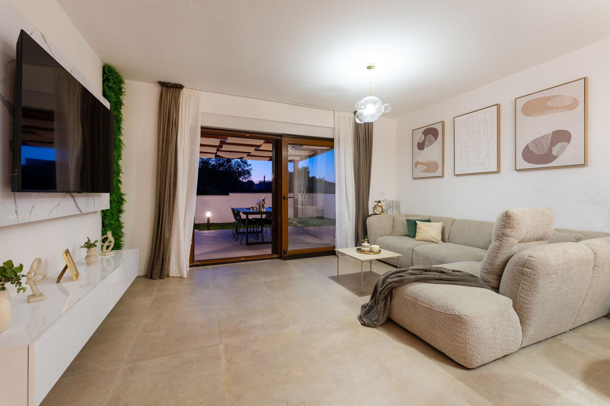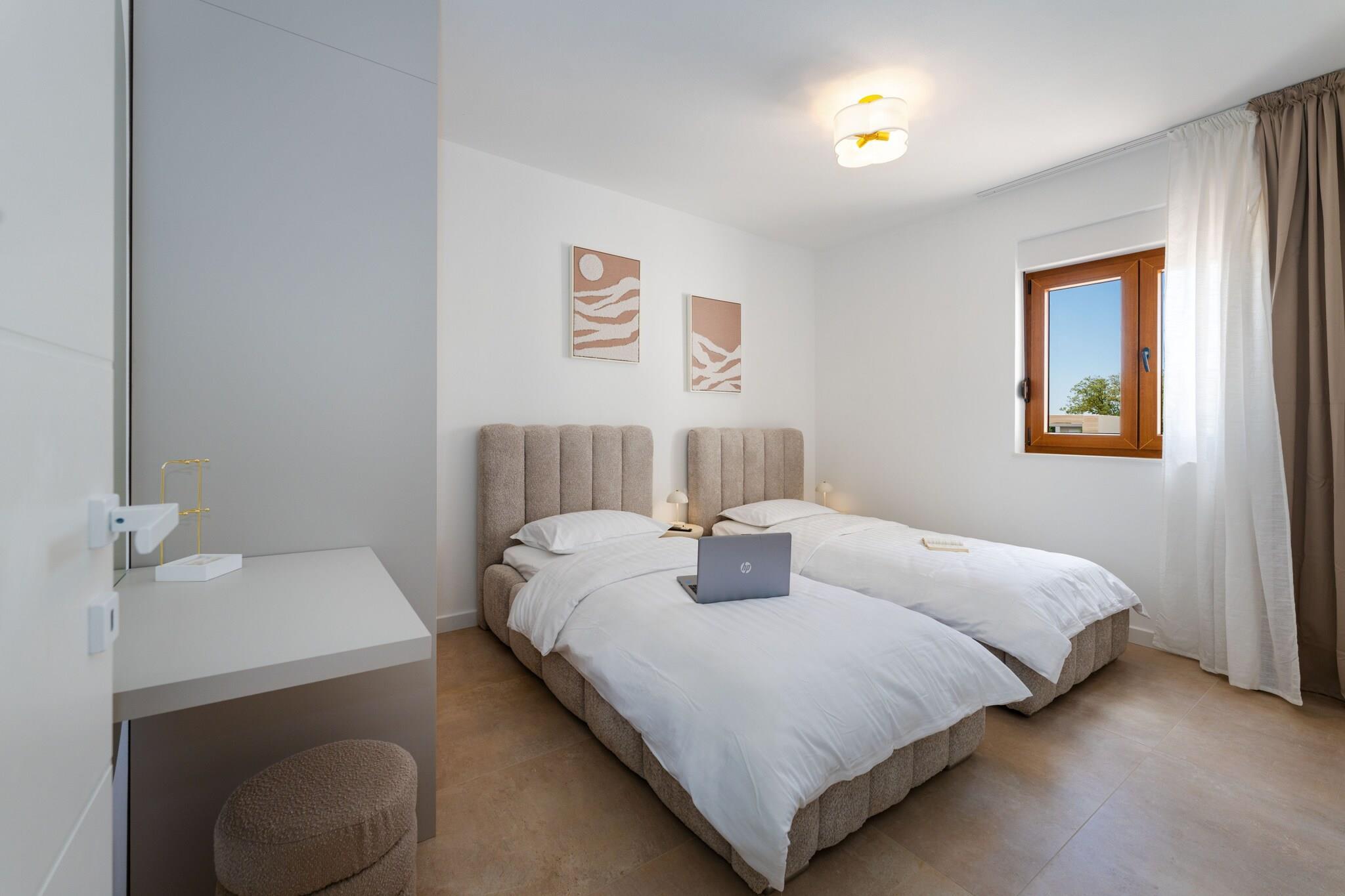 Versteckt in einer ruhigen Wohngegend etwas außerhalb von Zadar, verbindet dieser moderne Rückzugsort elegantes Design mit einer warmen, einladenden Atmosphäre. Die Villa verfügt über drei elegante Schlafzimmer, jedes mit eigenem Bad und Fernseher, und bietet somit Platz für bis zu sechs Gäste. Der geräumige offene Wohnbereich geht nahtlos in eine voll ausgestattete Küche und einen hellen Essbereich über, während große Glastüren auf eine sonnendurchflutete Terrasse führen. Draußen lädt ein privater 8 × 4 m großer Pool zum Entspannen unter dem mediterranen Himmel ein, umgeben von bequemen Liegestühlen, Sonnenschirmen und einem Essbereich im Freien, der sich ideal für lange, gemütliche Mahlzeiten mit Ihren Lieben eignet. Jedes Detail wurde hier sorgfältig auf Komfort und Bequemlichkeit abgestimmt. Die Innenausstattung verbindet modernen Stil mit wohnlichen Akzenten, und die Villa ist mit allem Notwendigen ausgestattet – von Highspeed-WLAN und Satellitenfernsehen bis hin zu Waschmaschine, Trockner und mückengeschützten Fenstern für unbeschwerte Sommernächte. Eine voll ausgestattete Küche macht das Kochen zum Vergnügen, egal ob Sie morgens Kaffee kochen oder ein Festmahl mit lokalen Meeresfrüchten zubereiten. Es gibt sogar einen Grill und einen gemütlichen Außenkamin für unvergessliche Abende unter dem Sternenhimmel. Trotz der ruhigen Lage ist alles, was Sie brauchen, in unmittelbarer Nähe. Lokale Cafés, Geschäfte und Restaurants sind nur eine kurze Autofahrt entfernt, während die glitzernden Strände und die historische Altstadt von Zadar in wenigen Minuten erreichbar sind. Diese Villa bietet das Beste aus beiden Welten – friedliche Abgeschiedenheit zum Entspannen am Pool und einfachen Zugang zur Küste für Tage voller Sonne, Meer und dem Charme Dalmatiens.