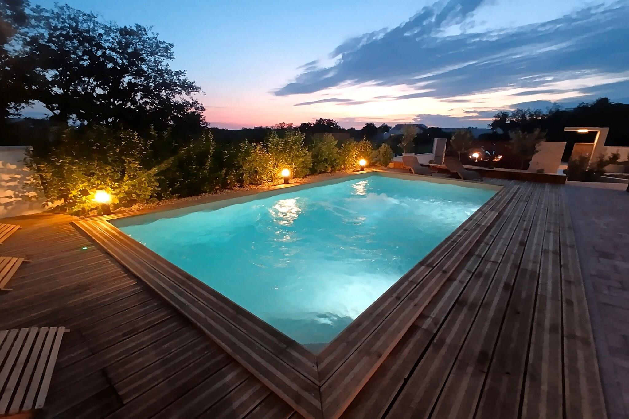 Offene Küche(Kochplatte(Induktion), Wasserkocher, Toaster, Kaffeemaschine, Backofen, Mikrowelle, Spülmaschine, Kühl-/Gefrierkombination, (), ()), Wohn/Esszimmer(TV(Satellit, smart TV), Esstisch, Sitzecke, Radio, Waschbecken, Klimaanlage), Schlafzimmer mit Badezimmer(Doppelbett king size, TV(Satellit, smart TV), Dusche, Waschbecken, Toilette, Klimaanlage), Schlafzimmer mit Badezimmer(Doppelbett king size, TV(Satellit, smart TV), Dusche, Waschbecken, Toilette, Klimaanlage), Schlafzimmer mit Badezimmer(Einzelbett, Einzelbett, TV(Satellit, smart TV), Badewanne, Waschbecken, Toilette, Klimaanlage), Internet, Erste-Hilfe-Station, Bar, Garten, Gartenmöbel, Kaminofen, Grill, Trockner, Babybett, Infrarotdusche, Waschmaschine, Balkon, Patio, Klimaanlage, Terrasse(16 m2), Garten(umzäunt), Liegen, Grill, Parkplatz, Pool(alleinige Nutzung, im Garten), Bügelbrett, Bügeleisen, Föhn, Außenkamin, Trockenschrank, , , Cleaning products, Wine glasses
