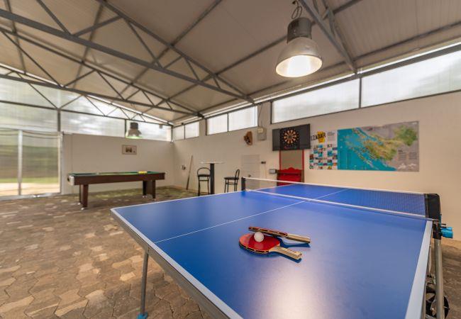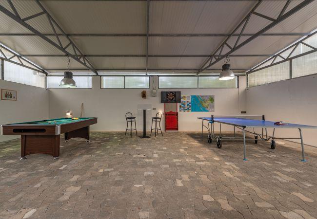 Verfügt über Garten, Gartenmöbel, umzäuntes Grundstück, Terrasse, Grill, Bügeleisen/-brett, Internetanschluss (WiFi), Fön, Balkon, Kinderbereich, Zentralheizung, Klimaanlage nur im Esszimmer, privater Pool, überdachte Garage (10 Stellplätze) auf dem Grundstück, 2 Fernseher, Satelliten-/Kabelanschluß.