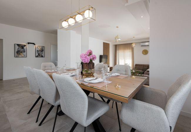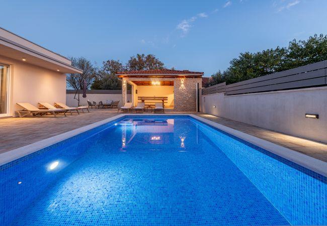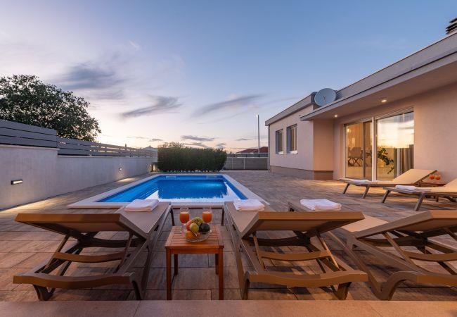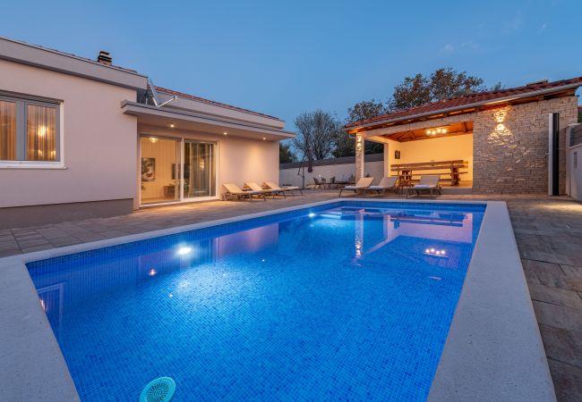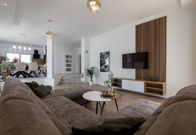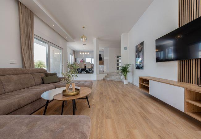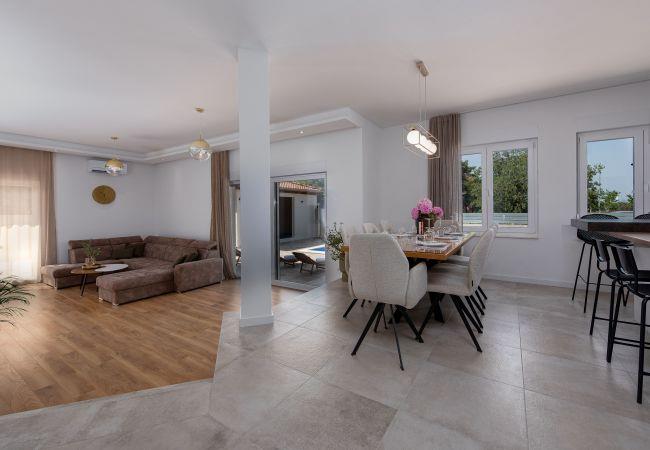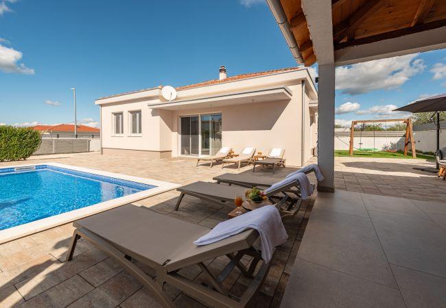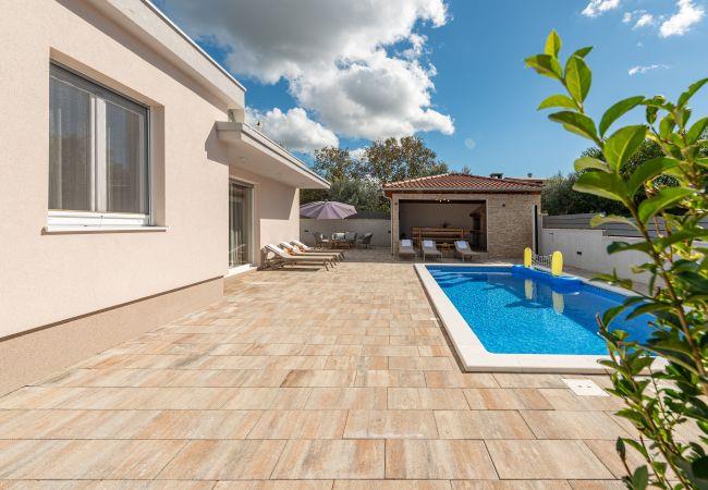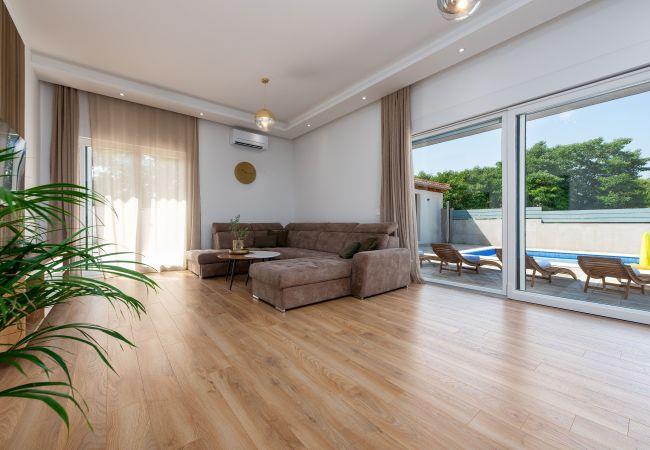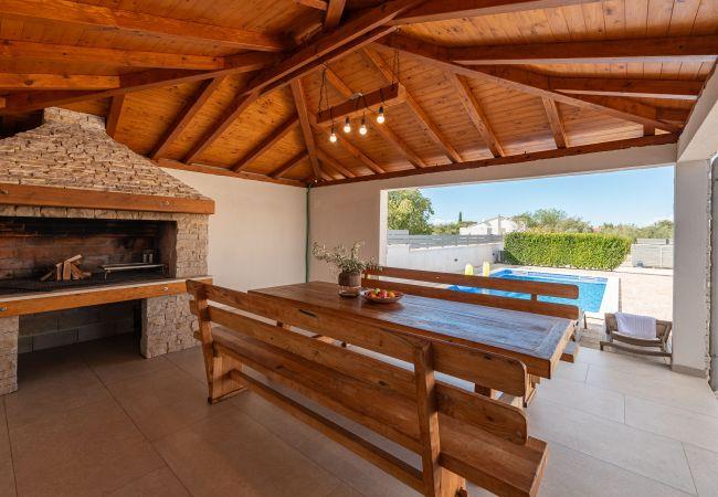 Verfügt über Garten, Gartenmöbel, umzäuntes Grundstück, Terrasse, Grill, Bügeleisen/-brett, Internetanschluss (WiFi), Kinderbereich, Klimaanlage in der ganzen Unterkunft, privater Pool, Parkplatz im Freien (3 Stellplätze) auf dem Grundstück, 1 Fernseher, Satelliten-/Kabelanschluß.