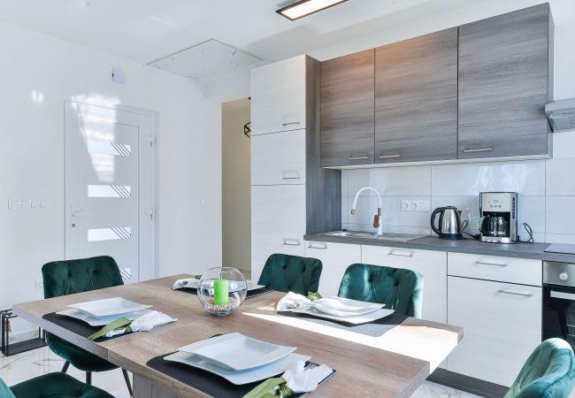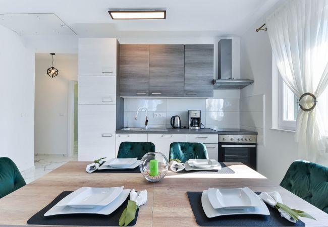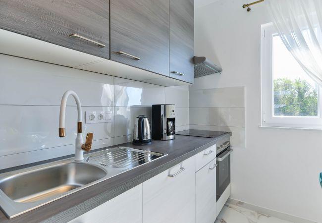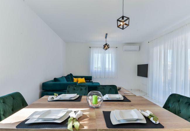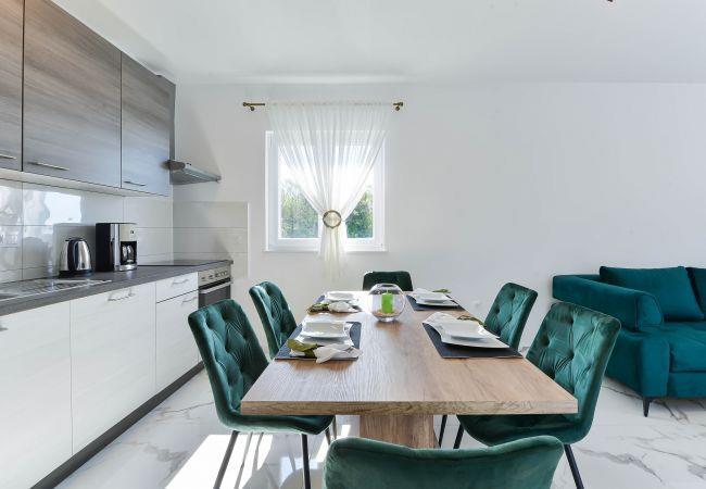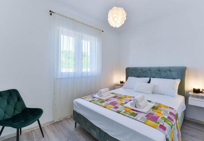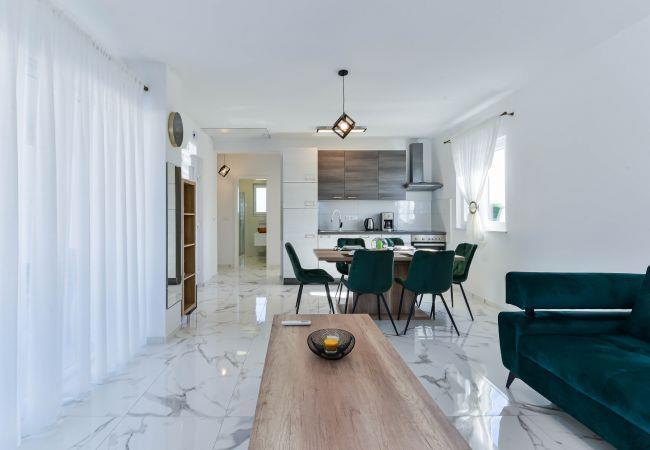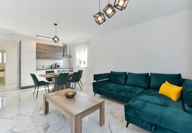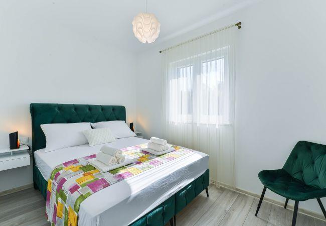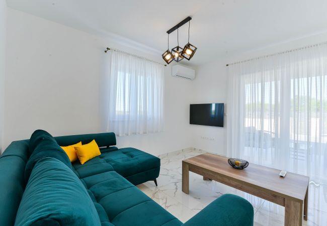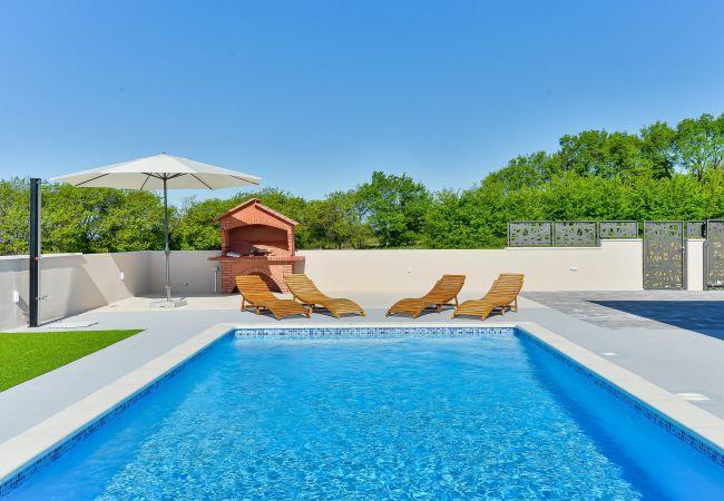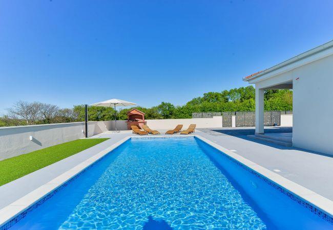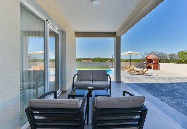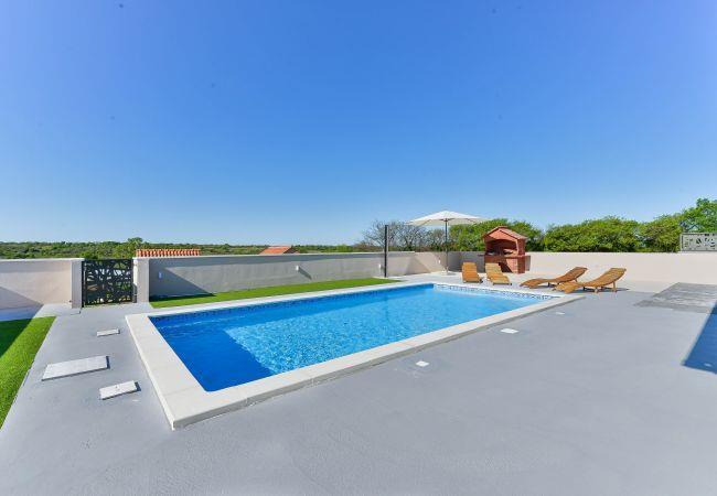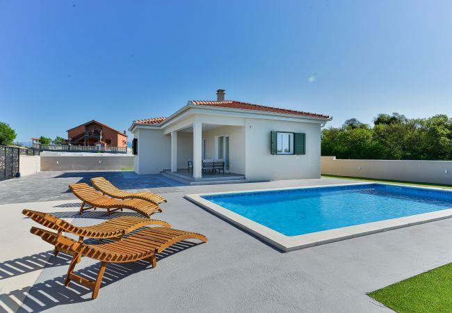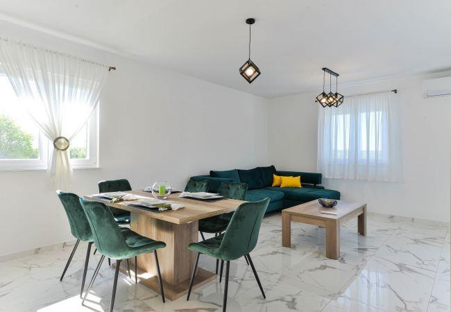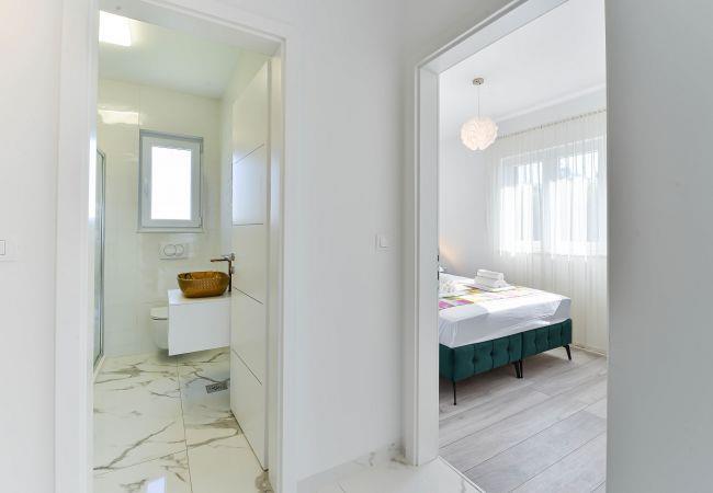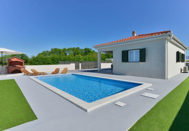 Das Ferienhaus ist ein neu gebautes, charmantes Haus in einer ruhigen ländlichen Gegend am Rande der Gespanschaft Zadar. Es befindet sich in Murvica, nur eine kurze Autofahrt von der historischen Stadt Zadar entfernt. Das Haus befindet sich im Erdgeschoss, was einen kontinuierlichen Fluss zwischen dem Wohnbereich, dem Schlafbereich und dem Außenbereich ermöglicht.