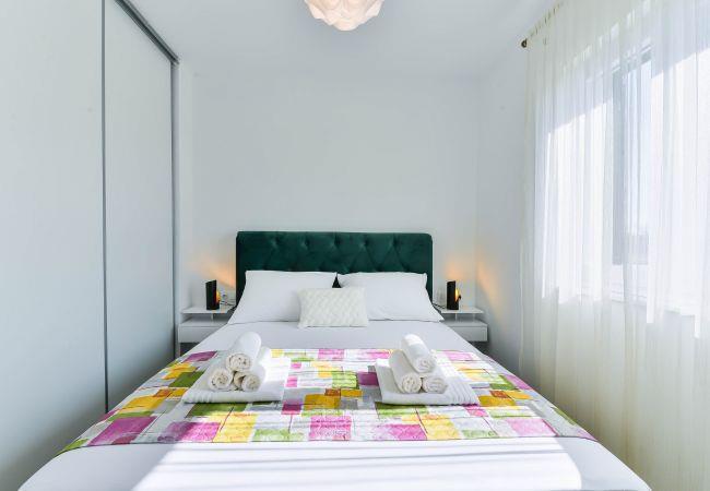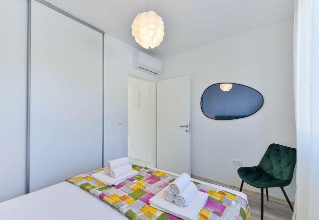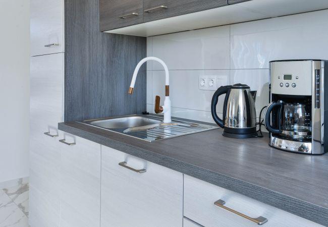 Im Inneren finden Sie einen offenen Wohnbereich mit Wohnzimmer, Esszimmer und Küche mit direktem Ausgang zur Terrasse. Es gibt 2 Schlafzimmer mit Doppelbetten und einem aufklappbaren Doppelsofa für maximal 6 Gäste. Ein Badezimmer mit Dusche ist vorhanden. Das Haus verfügt über 2 Parkplätze auf dem Grundstück, Kabel-TV, WLAN im gesamten Gebäude und 3 individuell regulierbare Klimaanlagen.