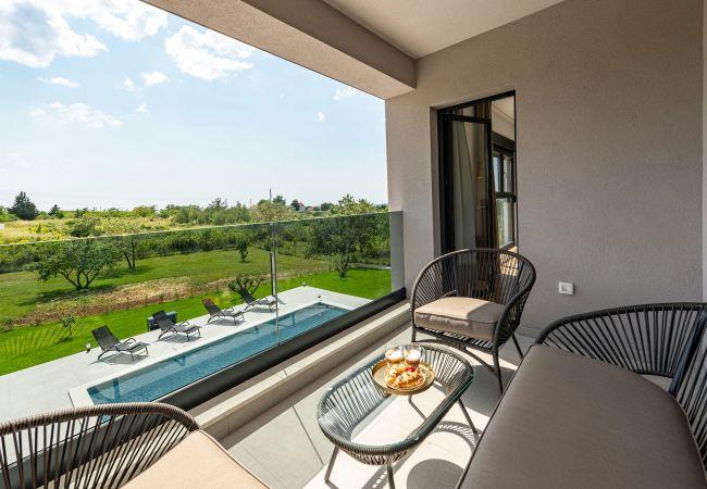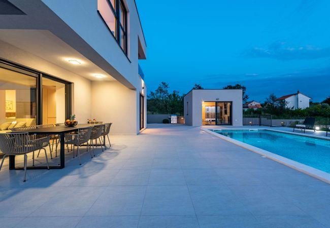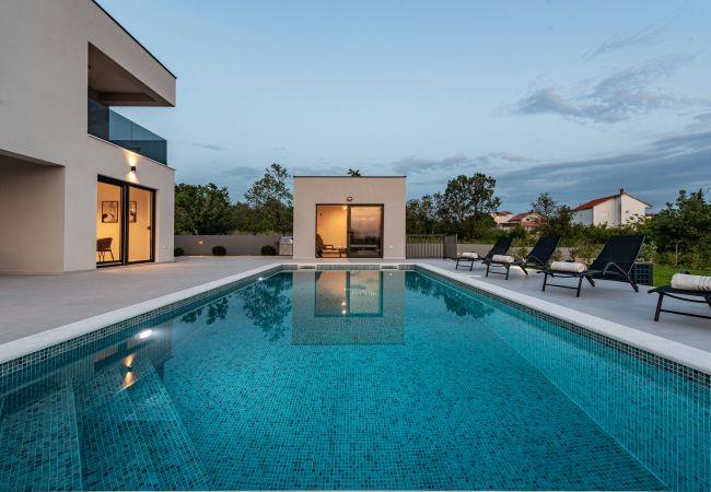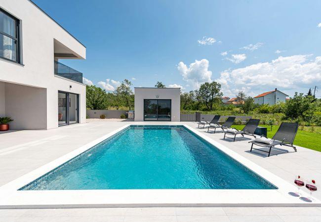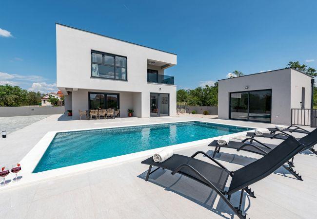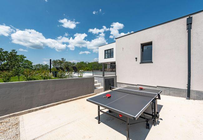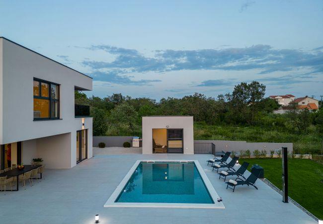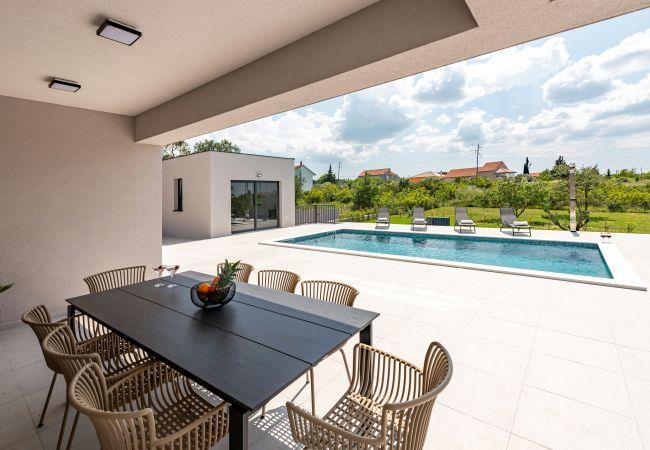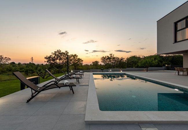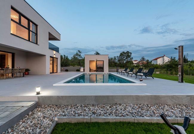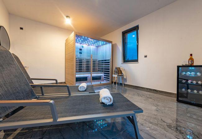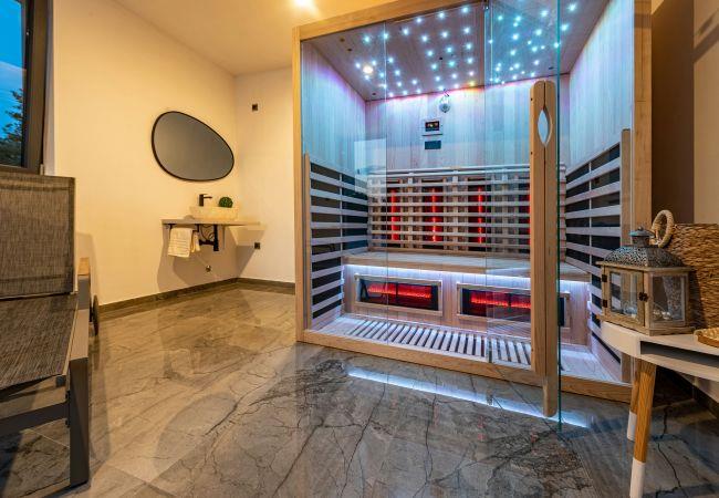Verfügt über Garten, Gartenmöbel, umzäuntes Grundstück, Terrasse, Grill, Bügeleisen/-brett, Zimmersafe, Internetanschluss (WiFi), Fön, Balkon, Kinderbereich, Sauna, Klimaanlage, privater Pool, beheizter privater Pool, Parkplatz im Freien (3 Stellplätze) auf dem Grundstück, 3 Fernseher, Satelliten-/Kabelanschluß.
