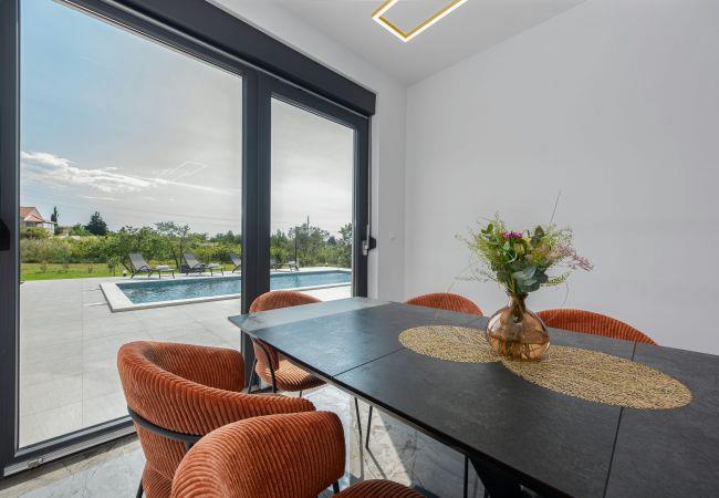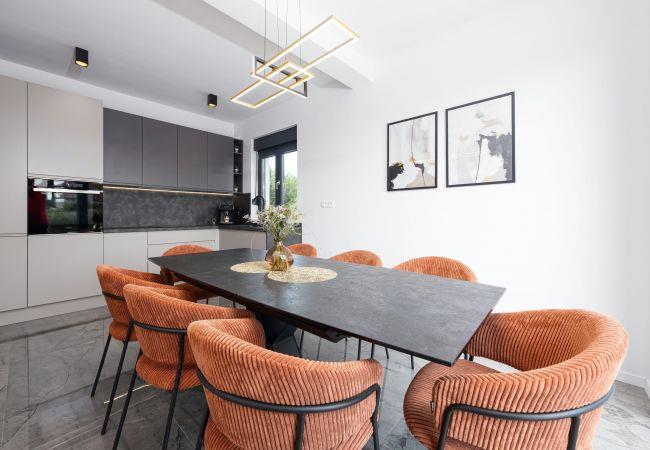 Die geschmackvoll ausgestattet und moderne Unterkunft mit 180 m², mit Blick auf die Berge und den Garten.