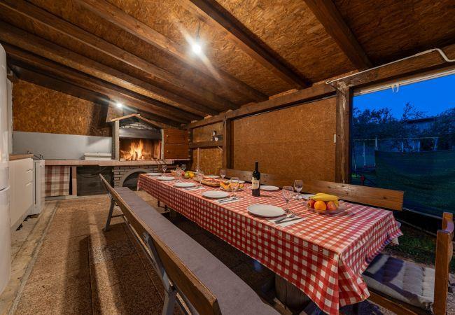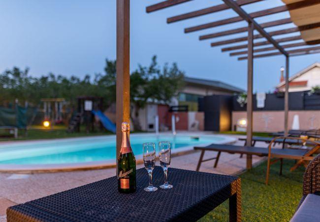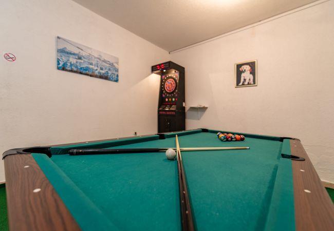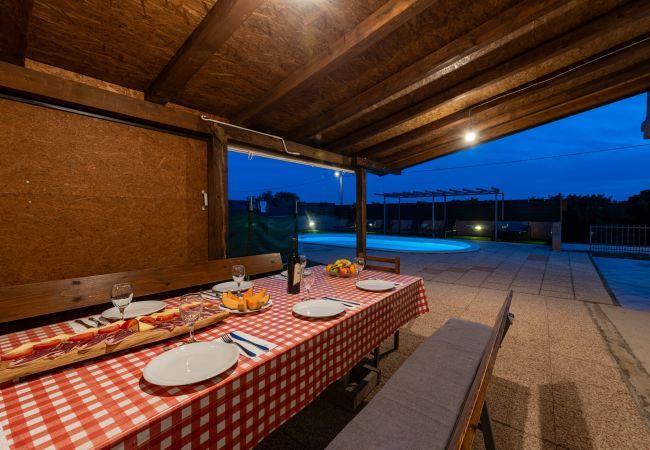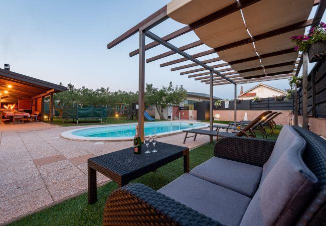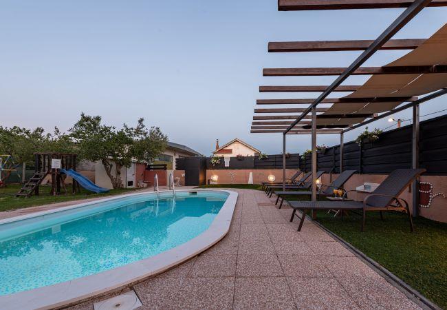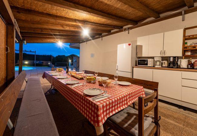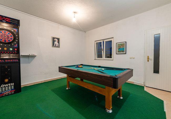 Verfügt über Garten, Gartenmöbel, umzäuntes Grundstück, Terrasse, Grill, offener Kamin, Bügeleisen/-brett, Internetanschluss (WiFi), Fön, Balkon, Kinderbereich, Klimaanlage im Wohnzimmer und einigen Zimmern, privater Pool, Parkplatz im Freien (5 Stellplätze) auf dem Grundstück, 3 Fernseher, Satelliten-/Kabelanschluß.