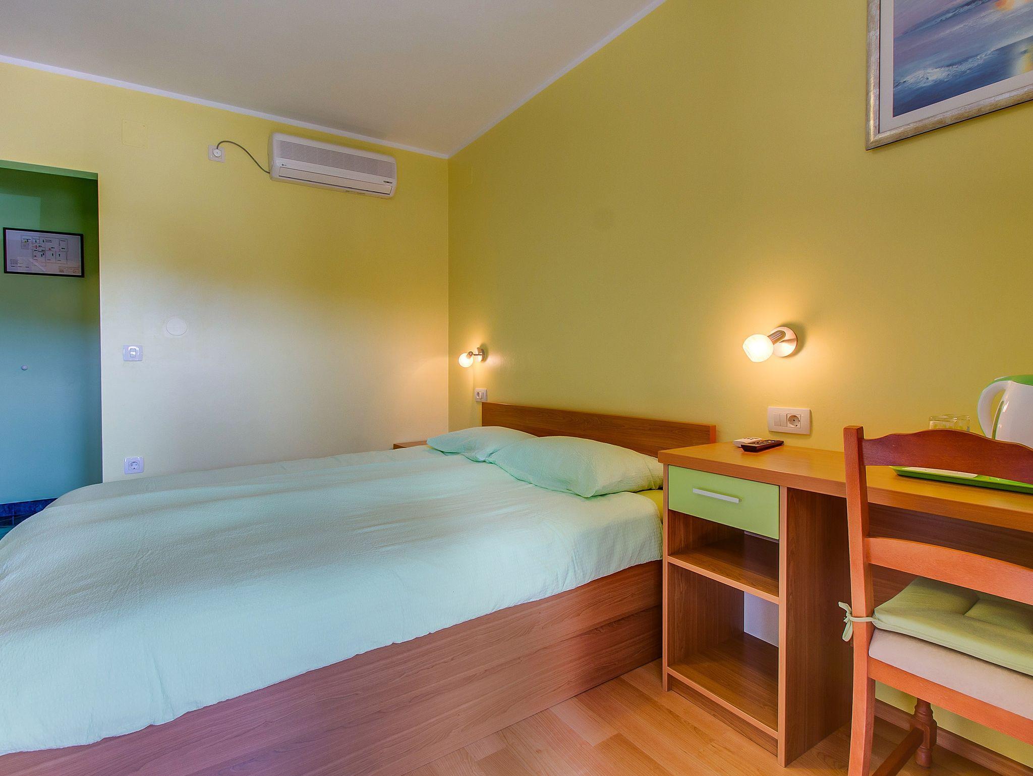 Zimmer bietet Platz für 2 Gäste. Die Betten sind in Schlafzimmern, die es 1 gibt, innerhalb einer Gesamtfläche von 17m2, angeordnet. Die Gäste haben einen eigenen Balkon zur Verfügung, auf der sie in warmen Sommernächten genießen können. Das Zimmer bietet Meerblick. Die reservierte Unterkunftseinheit ist ein Zimmer mit eigenem Badezimmer ohne die Möglichkeit der Nutzung einer Küche. IM PREIS INBEGRIFFEN: Kurtaxe, Endreinigung, Klimatisierung, Zentralheizung, Parkplatz, Internet, Föhn. VERBINDLICHE ZUSÄTZLICHE KOSTEN: Aufzahlung für Kurzaufenthalte (prozentualer Zuschlag pro Nächtigungsanzahl: 30% - 1, 20% - 2, 10% - 3). UNVERBINDLICHE ZUSÄTZLICHE KOSTEN: Wäschewaschen (7,00 € Waschen). Die Verfügbarkeit zusätzlicher Dienstleistungen in Ihrem reservierten Termin und die Preise derselben (falls nicht aufgeführt) müssen im Voraus überprüft werden. Zusätzliche Dienstleistungen die in der Zahlungsaufforderung nicht aufgeführt sind werden direkt beim Vermieter bezahlt, angenommen der Gast nutzt auch diese. Ermäßigung auf den Grundpreis: Gratistag 14=13 (bei einem Aufenthalt von 14 Tagen oder mehr erhalten Sie einen Gratistag für den Aufenthalt bis 31.12.25).