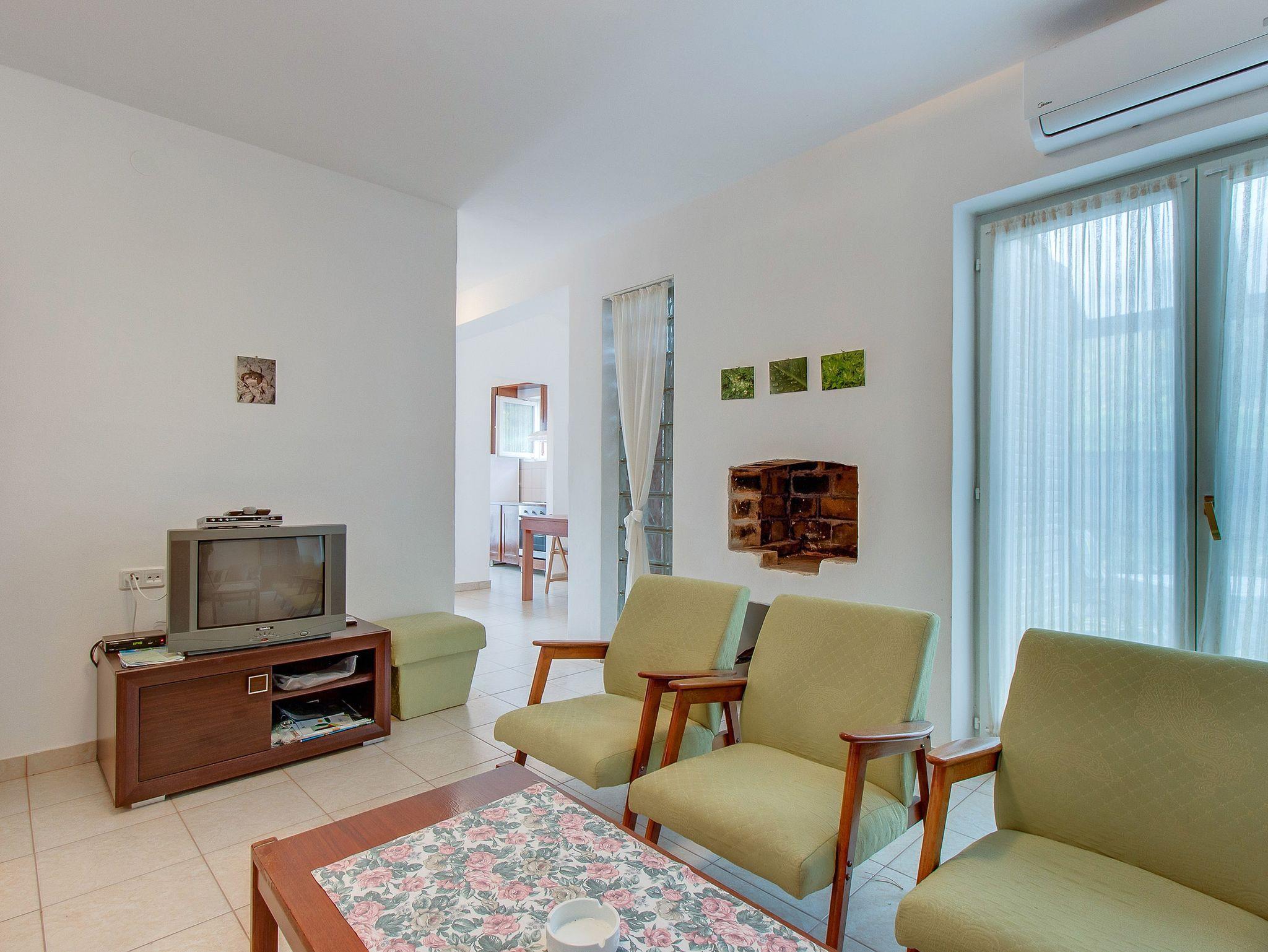 Ferienwohnung bietet Platz für 7 Gäste. Die Betten sind in Schlafzimmern, die es 2 gibt, und in Wohnzimmer, innerhalb einer Gesamtfläche von 63m2, angeordnet. Die Gäste haben eine eigene Terrasse zur Verfügung, auf der sie in warmen Sommernächten genießen können. Es ist erlaubt, Speisen auf dem Gemeinschafts-Grill vorzubereiten. In der Unterkunftseinheit besteht die Möglichkeit des Mitbringens von Haustieren gegen Aufpreis. Durch die Terrasse der gebuchten Unterkunftseinheit gehen auch andere Gäste oder Vermieter. IM PREIS INBEGRIFFEN: Kurtaxe, Endreinigung, Klimatisierung, Parkplatz, Internet, Kinderbett, Bügeleisen, Bügelbrett, Föhn. VERBINDLICHE ZUSÄTZLICHE KOSTEN: Aufzahlung für Kurzaufenthalte (prozentualer Zuschlag pro Nächtigungsanzahl: 30% - 1, 20% - 2, 10% - 3). UNVERBINDLICHE ZUSÄTZLICHE KOSTEN: Haustiere (5,00 € pro Nacht), Zusatzbett (13,00 € pro Nacht). Die Verfügbarkeit zusätzlicher Dienstleistungen in Ihrem reservierten Termin und die Preise derselben (falls nicht aufgeführt) müssen im Voraus überprüft werden. Zusätzliche Dienstleistungen die in der Zahlungsaufforderung nicht aufgeführt sind werden direkt beim Vermieter bezahlt, angenommen der Gast nutzt auch diese. Ermäßigung auf den Grundpreis: Gratistag 28=25 (bei einem Aufenthalt von 28 oder mehr Tagen erhalten Sie 3 kostenlose Tage für den Aufenthalt bis 31.12.26).