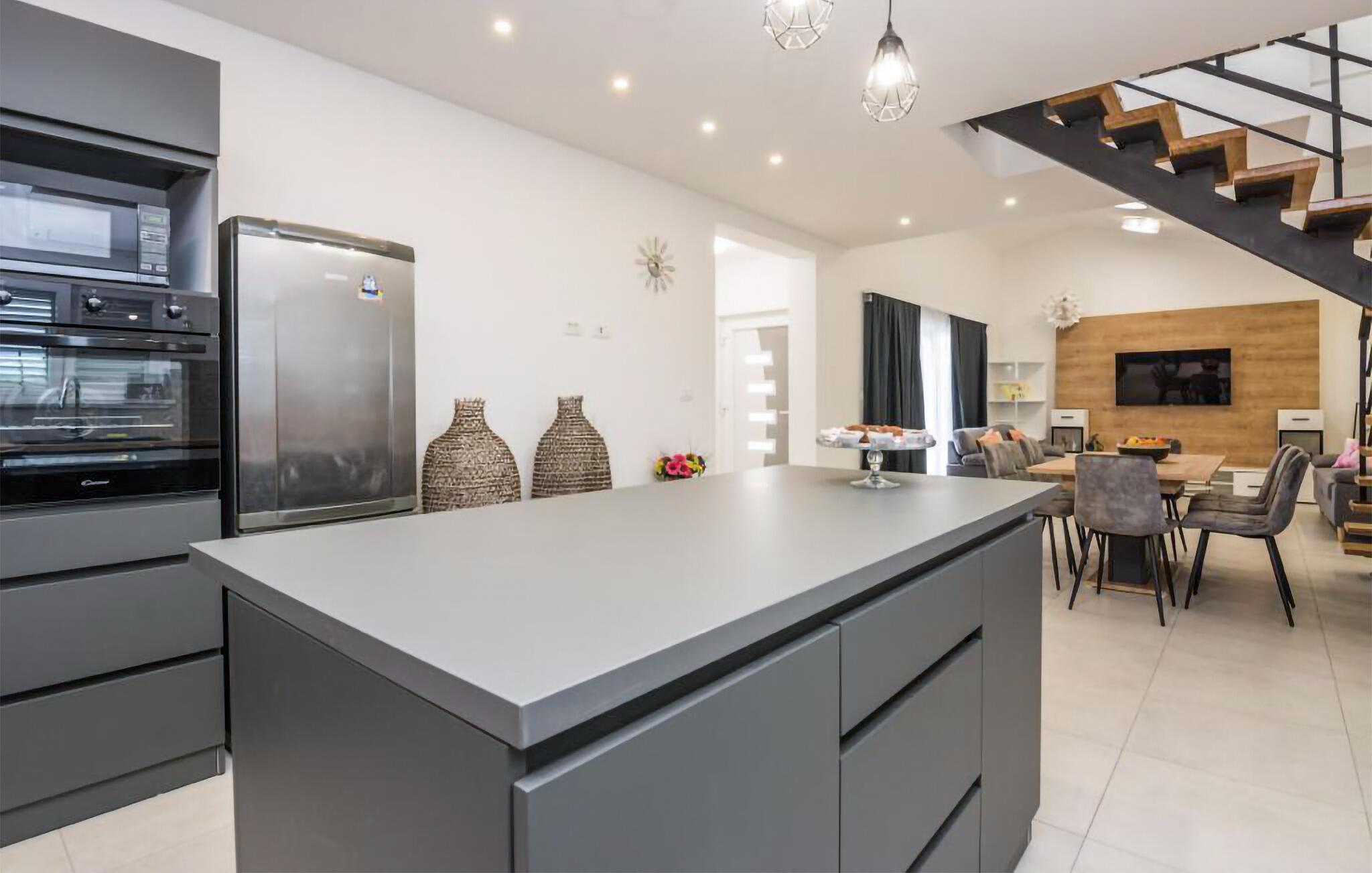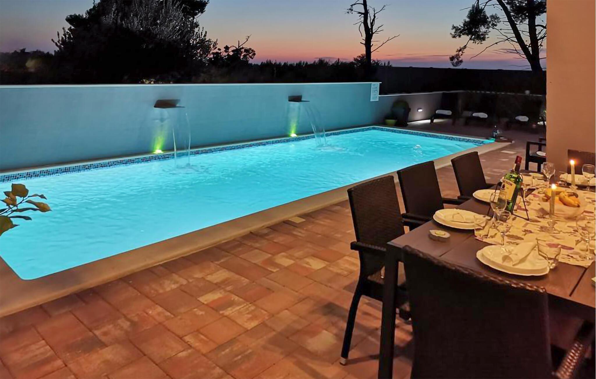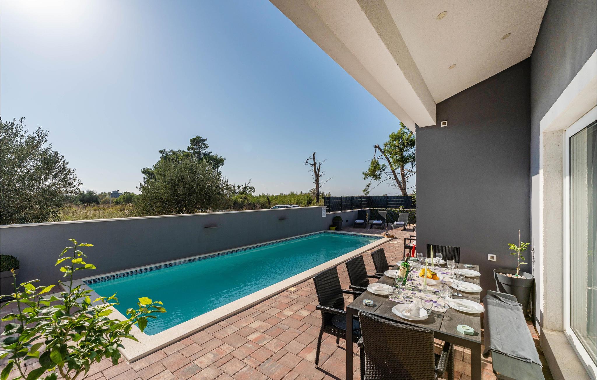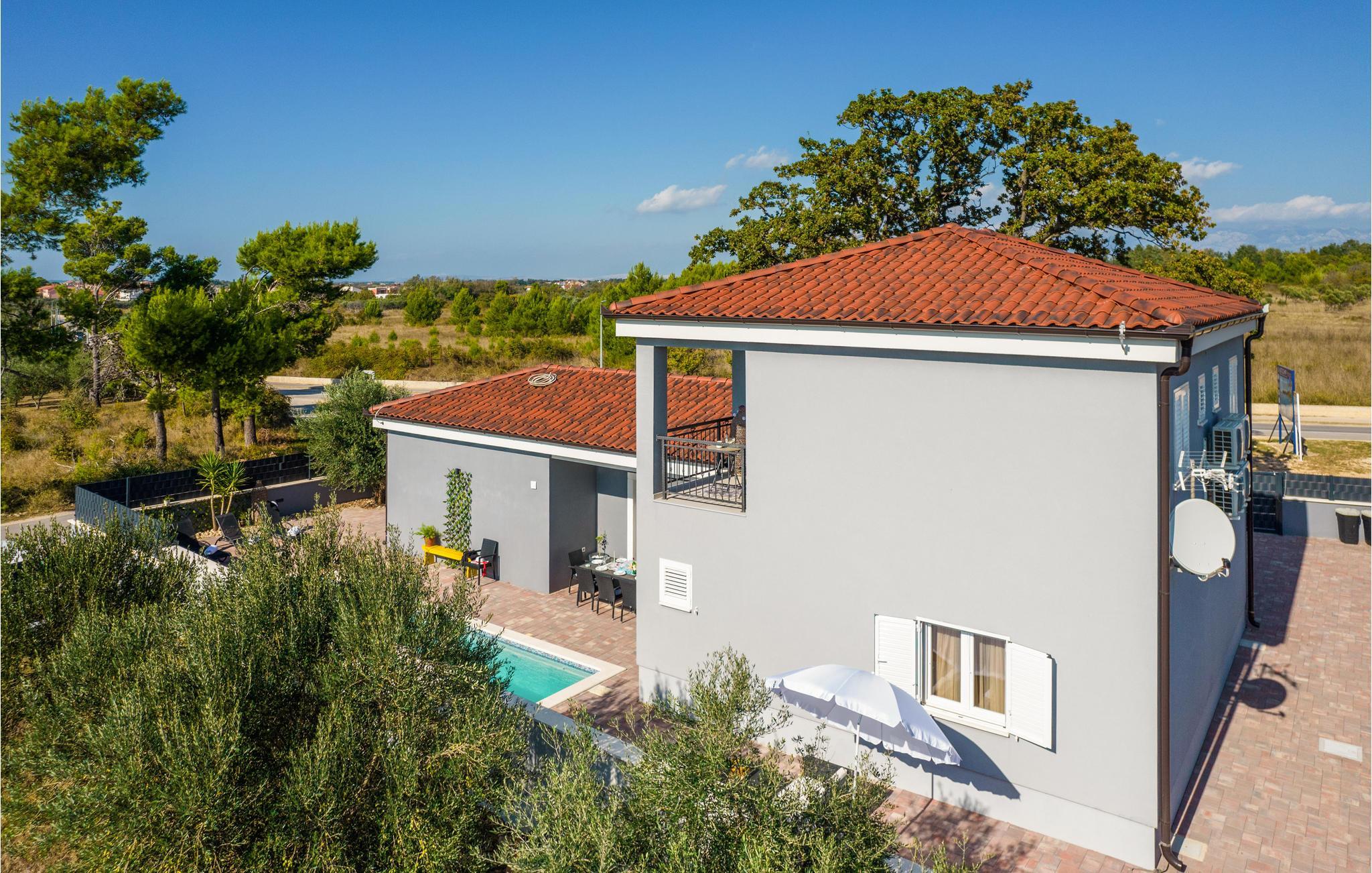 Zwischen den Küstenstädten Nin und Pivlaka empfängt Sie dieses große und freundliche Ferienhaus mit Pool. Kommen Sie hier an und genießen den Komfort und abgestimmte Einrichtung, die eine schöne Wohlfühlatmosphäre schafft. Gemeinsam mit dem großen Terrassenfenster wird der Wohnraum mit der Terrasse und dem Garten verbunden. Zusätzlich können Sie im 1. Stock ein ruhiges Plätzchen auf dem Balkon finden, von dem Sie das Meer entdecken können. Baden, sonnen, speisen und grillen Sie im Freien und freuen sich auf unvergessliche Stunden im Haus sowie im Garten.