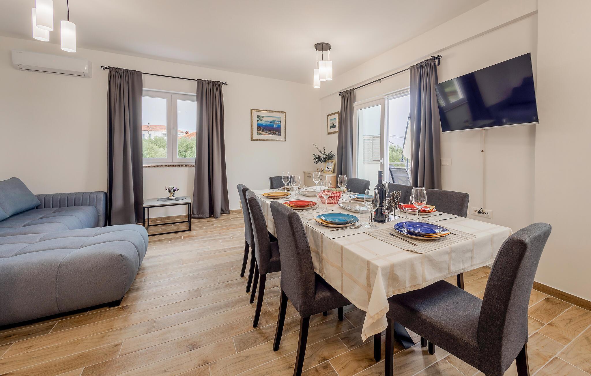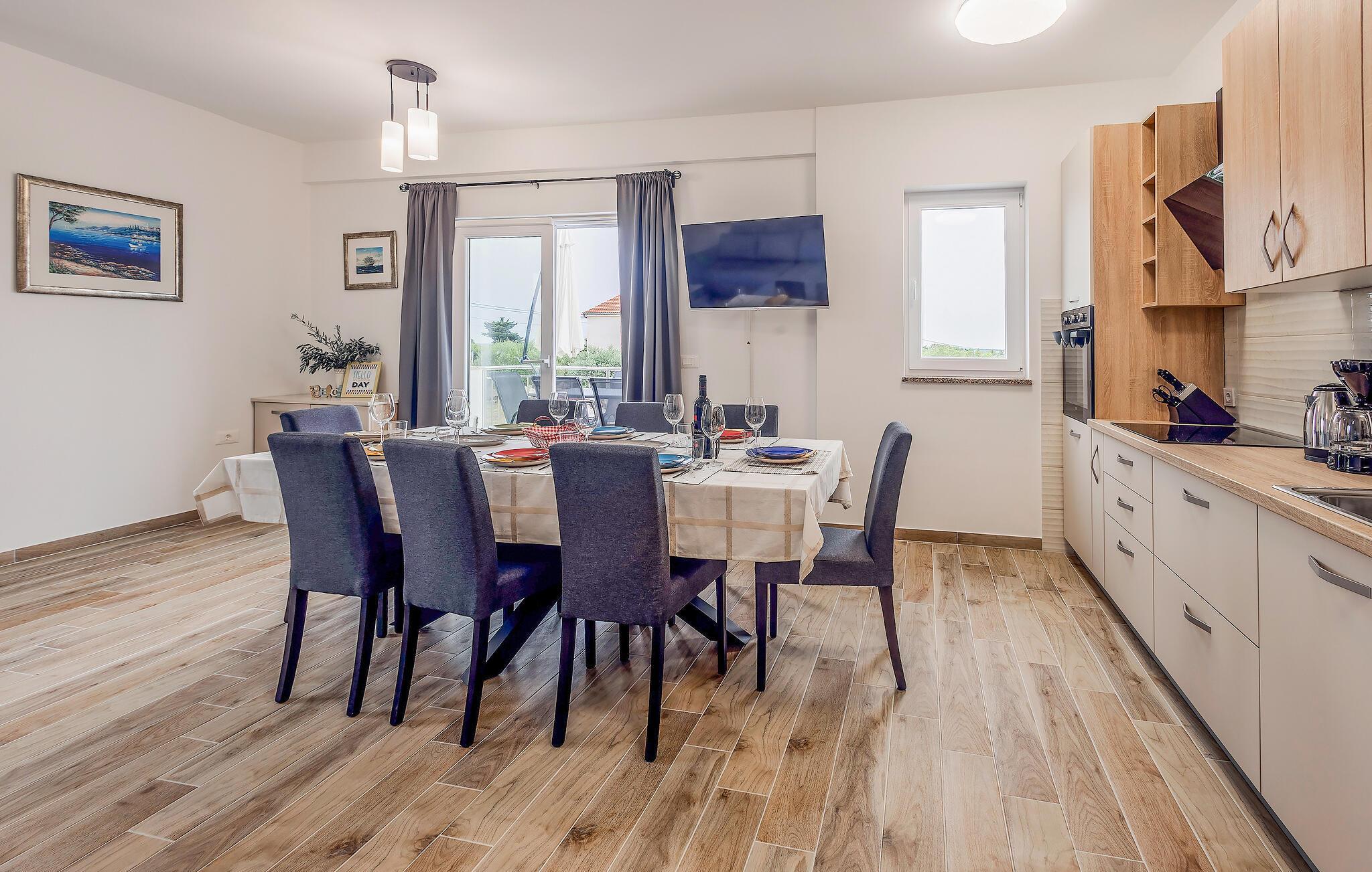 Vrsi ist ein ruhiger Küstenort, ideal für Strandliebhaber und Natursuchende. Die umliegenden Strände sind ein Paradies für Sonnenanbeter und Wassersportler. In der Nähe warten auf Sie Ausflugsziele wie die historische Stadt Nin mit ihren römischen Ruinen und dem berühmten Heilschlamm. Die wunderschöne Landschaft bietet Ihnen Möglichkeiten für Radtouren, Wanderungen und Bootsausflüge. Ein Abstecher in die nahegelegene Stadt Zadar ist ebenfalls ein Muss, um Kunst, Kultur und dalmatinische Küche zu entdecken. Freuen Sie sich auf unvergessliche Erlebnisse und dieses wunderschöne Ferienhaus.