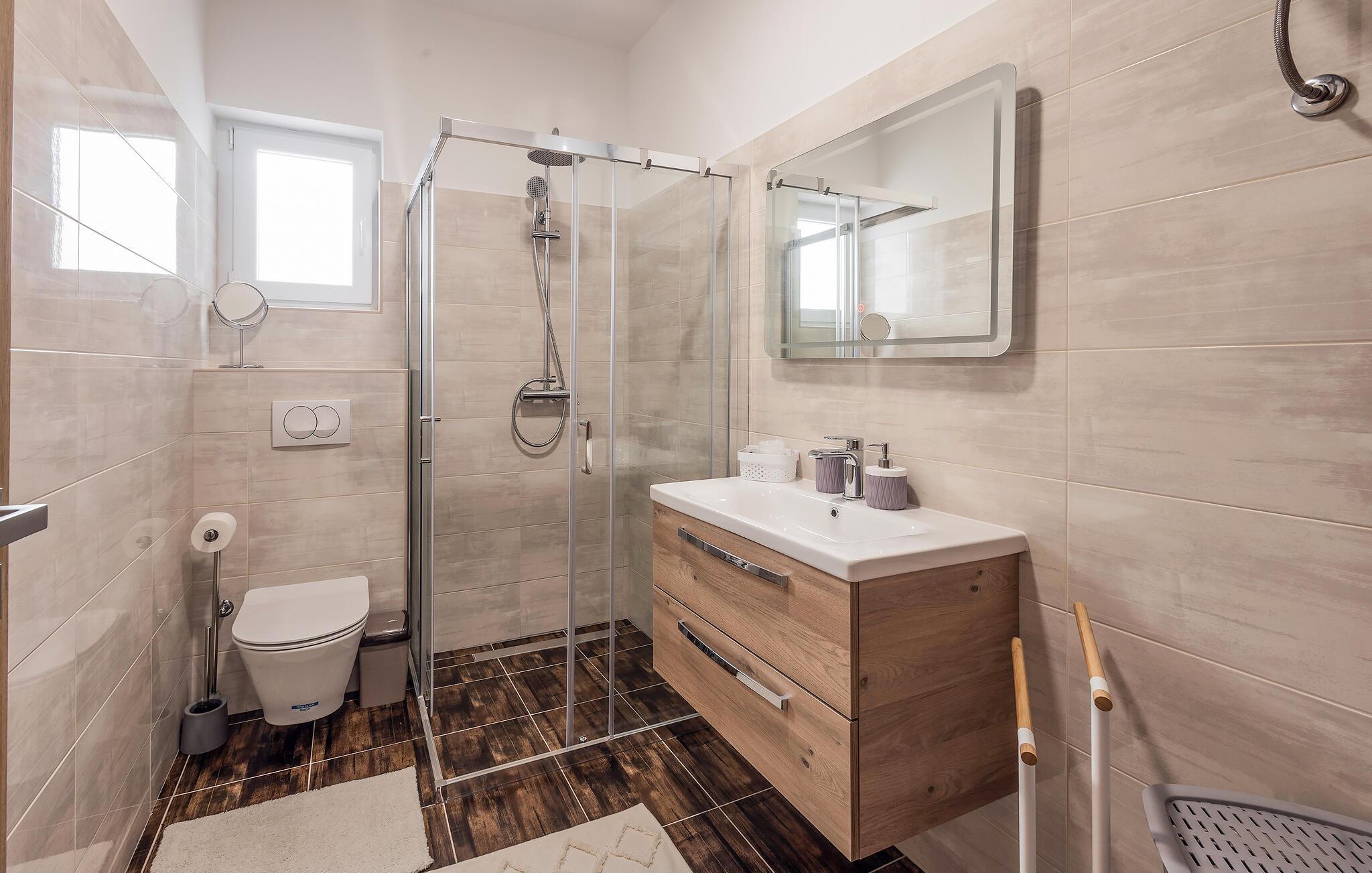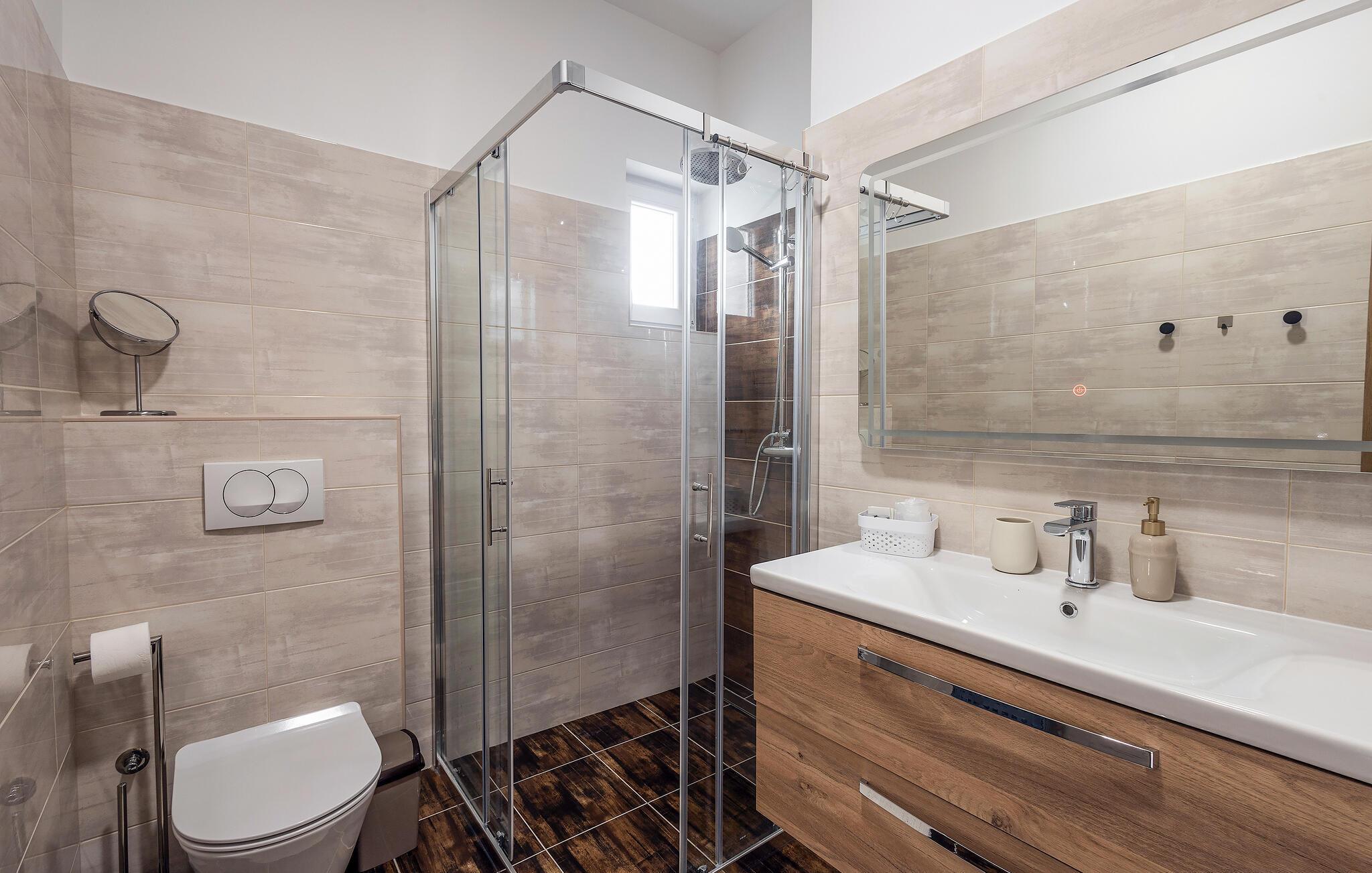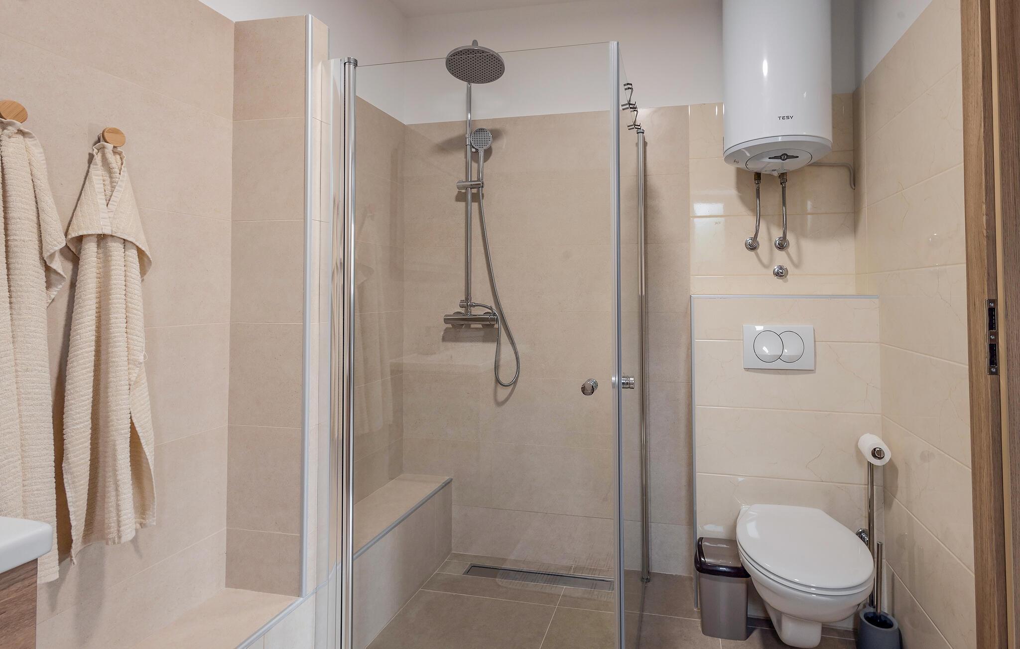 Badezimmer 5m2 (nr. 2) - WC. Warmes und kaltes Wasser. Dusche