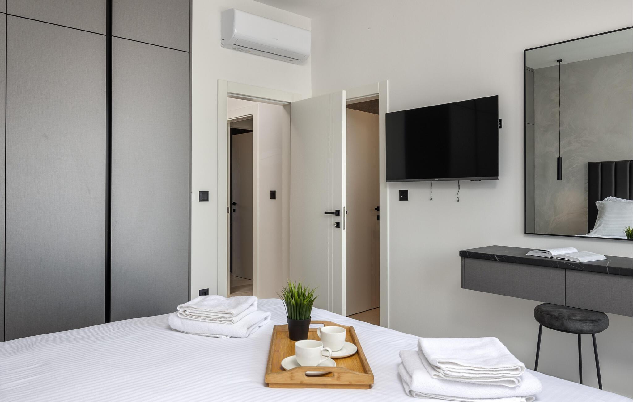 Mit modernem Charme lädt Sie dieses schöne Haus zu einem erholsamen Aufenthalt nahe der Küste ein. In den hellen, modern und stilvoll eingerichteten Räumen werden Sie sich gleich wohlfühlen, im ersten Stock genießen Sie einen schönen Blick auf das Meer. Entspannen Sie abends auf dem weichen Sofa im Wohnzimmer bei Ihrer Lieblingsserie und genießen Sie die gemeinsame Zeit.