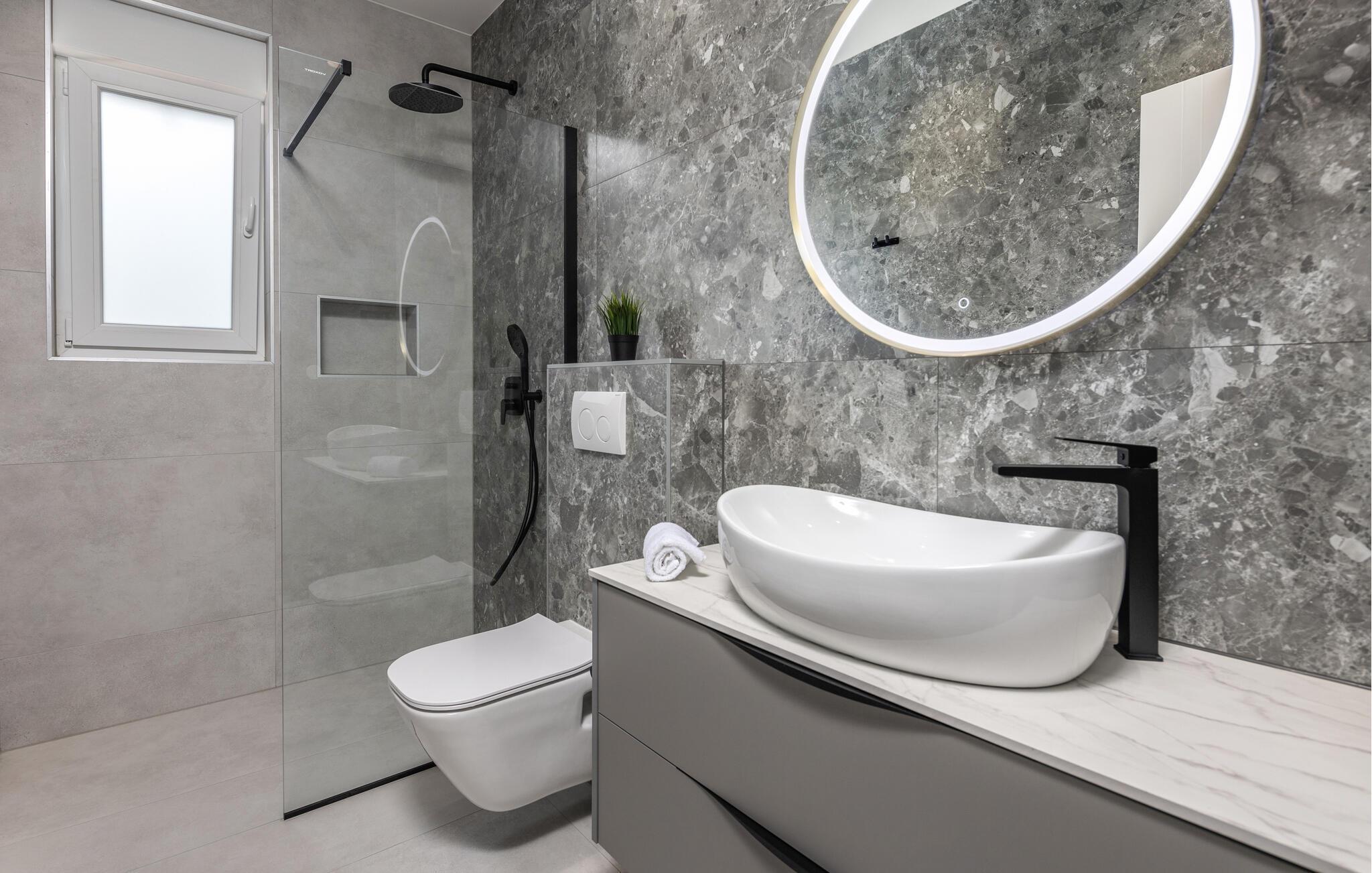 Badezimmer 5m2 (nr. 2) - WC. Warmes und kaltes Wasser. Dusche