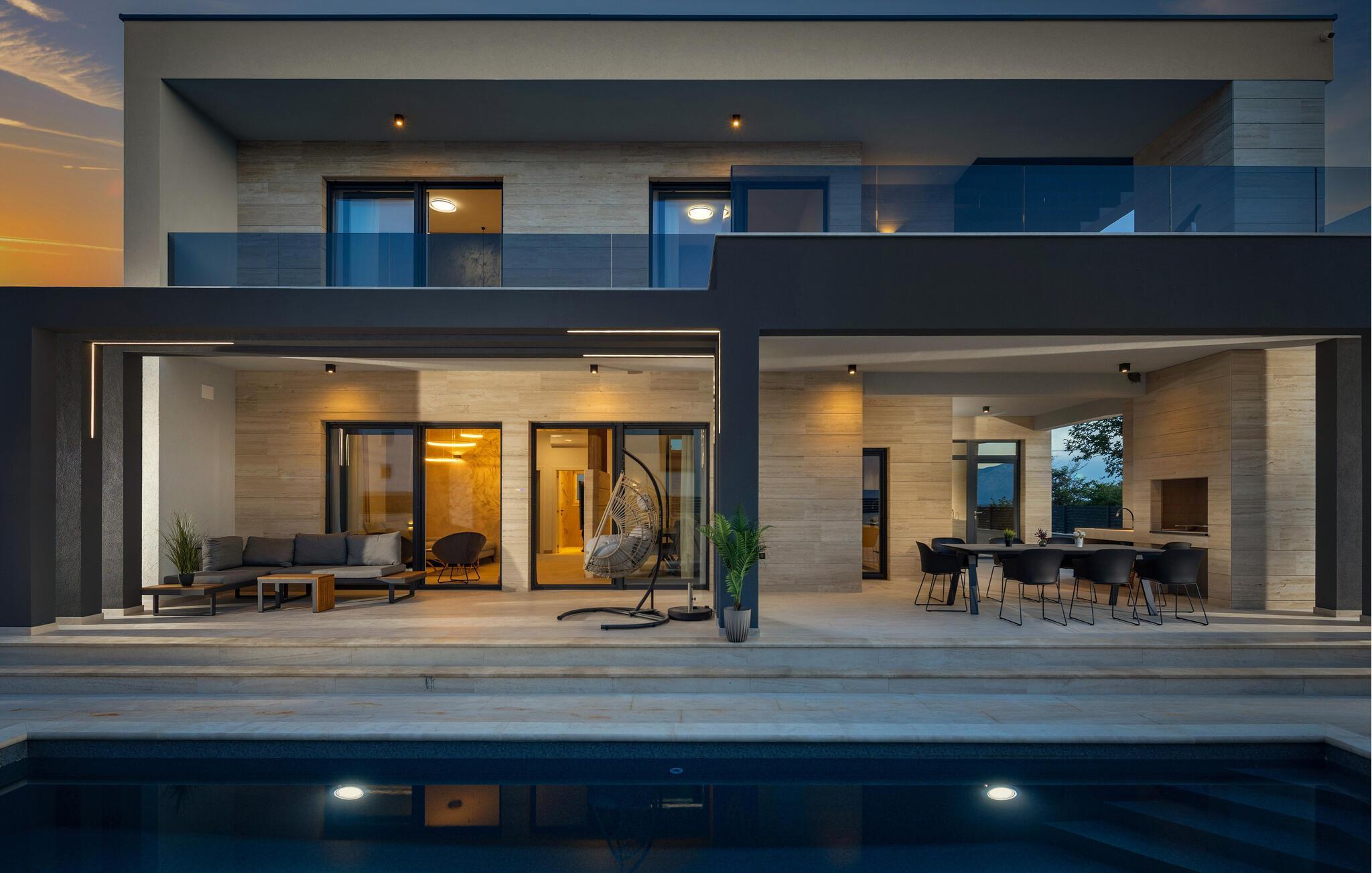 Auch im Freien können Sie herrliche Stunden auf dem gepflegten Grundstück verbringen. Genießen Sie die Sonne und ein paar kalte Getränke auf den Terrassen, im privaten Pool können Sie sich jederzeit erfrischen und anschließend im Liegestuhl entspannen oder eine Partie Kicker spielen. Lassen Sie einen wunderbaren Urlaubstag mit Leckereien vom Grill zu Ende gehen.