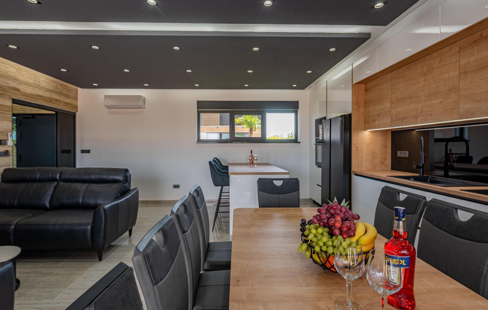 Reichlich Platz für bis zu 10 Personen bietet dieses topmoderne Ferienhaus. Machen Sie es sich mit Ihren Freunden oder der Familie im eleganten Innenbereich bequem und genießen Sie entspannte Stunden in der stilvollen Wohnlandschaft mit Blick auf den Pool. Zaubern Sie köstliche Mahlzeiten in der offenen Designküche. Verbringen Sie gesellige Abende im gemütlichen Essbereich oder gönnen Sie sich gemeinsam einen guten Film auf Ihrem Smart-TV.