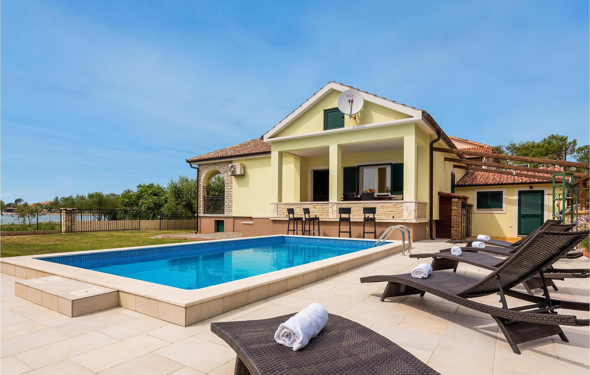 Erleben Sie unvergessliche Urlaubstage in der geschmackvollen und einladenden Villa Curta in Privlaka, die Sie mit einem privaten Swimmingpool, Sonnenliegen und einem herrlichen Garten empfängt. Die ansprechende Küche mit angrenzendem Essbereich und das gemütliche Wohnzimmer schaffen für Sie ein einladendes Ambiente, das Sie zum Entspannen einlädt. Die angenehme Einrichtung, eine hauseigene Bibliothek und ein Weingut sorgen für das gewisse Extra.