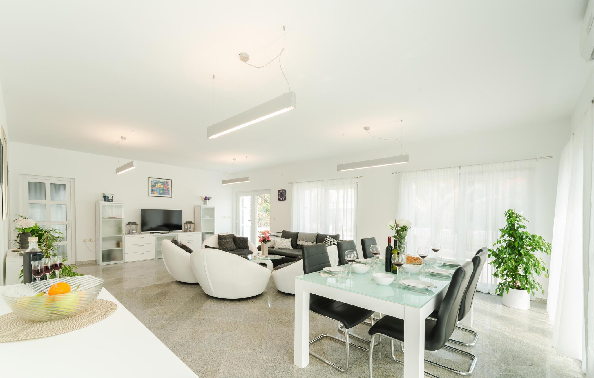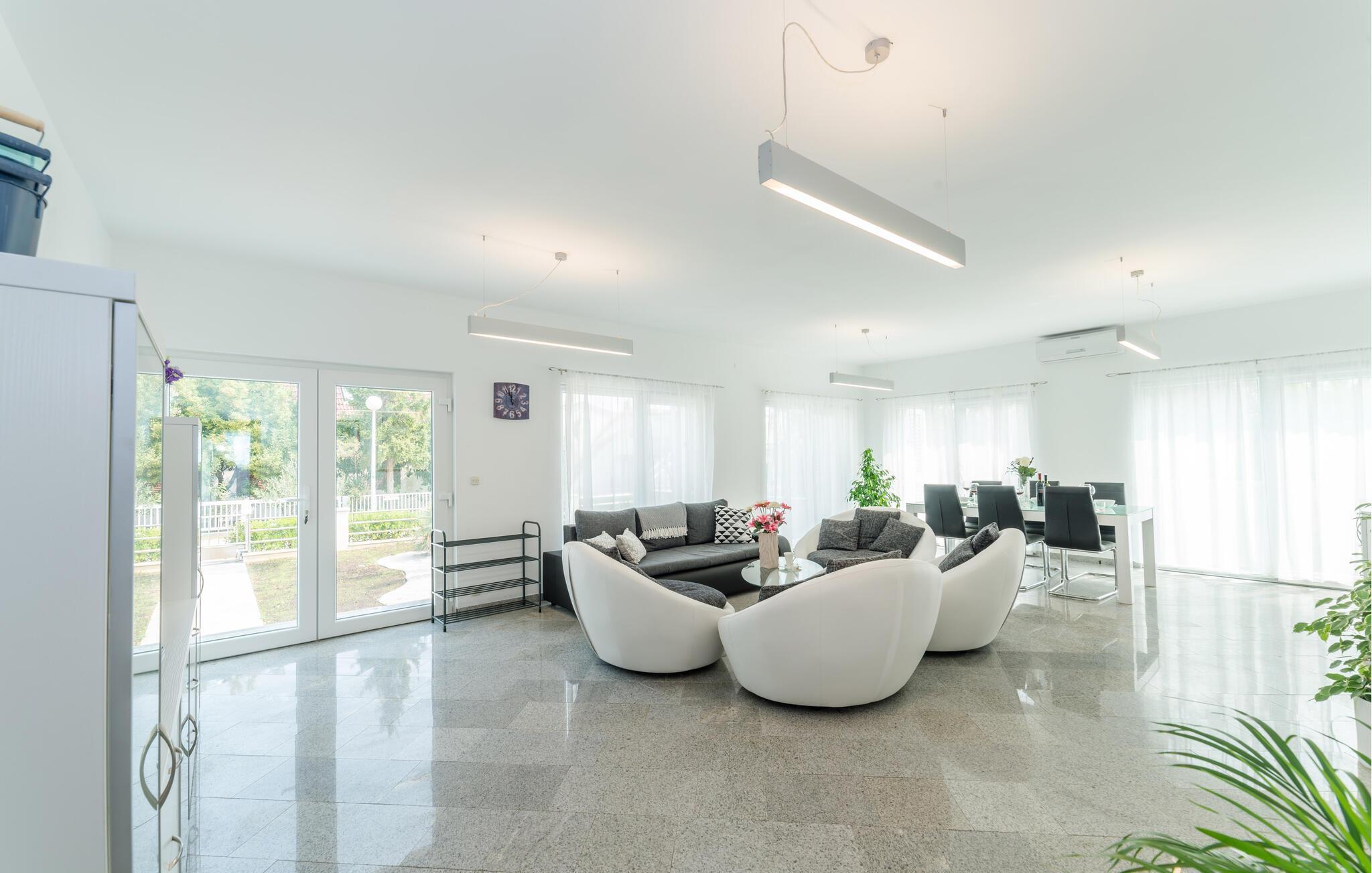 Dieses großzügige Ferienhaus in Nin-Sabunike bietet ausreichend Platz für die ganze Familie und kombiniert Erholung mit abwechslungsreichen Freizeitmöglichkeiten. Zaubern Sie in der praktisch ausgestatteten Küche kulinarische Köstlichkeiten und genießen Sie diese anschließend am stilvollen Esstisch. Entspannen Sie sich im gemütlichen Wohnzimmer, dessen hochwertige Einrichtung und harmonisches Design eine einladende Atmosphäre schaffen.