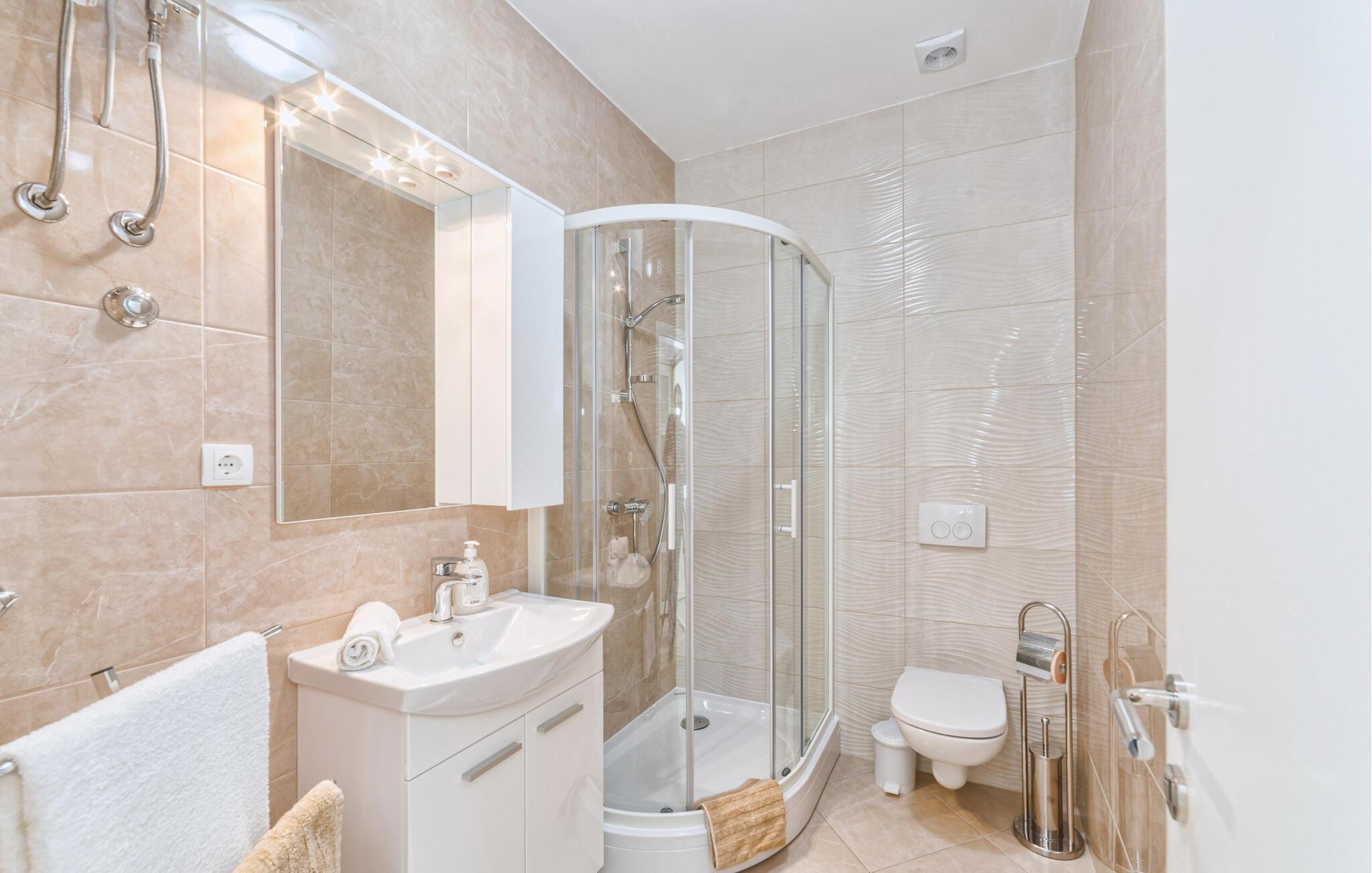 Badezimmer 5m2 (nr. 2) - WC. Warmes und kaltes Wasser. Dusche