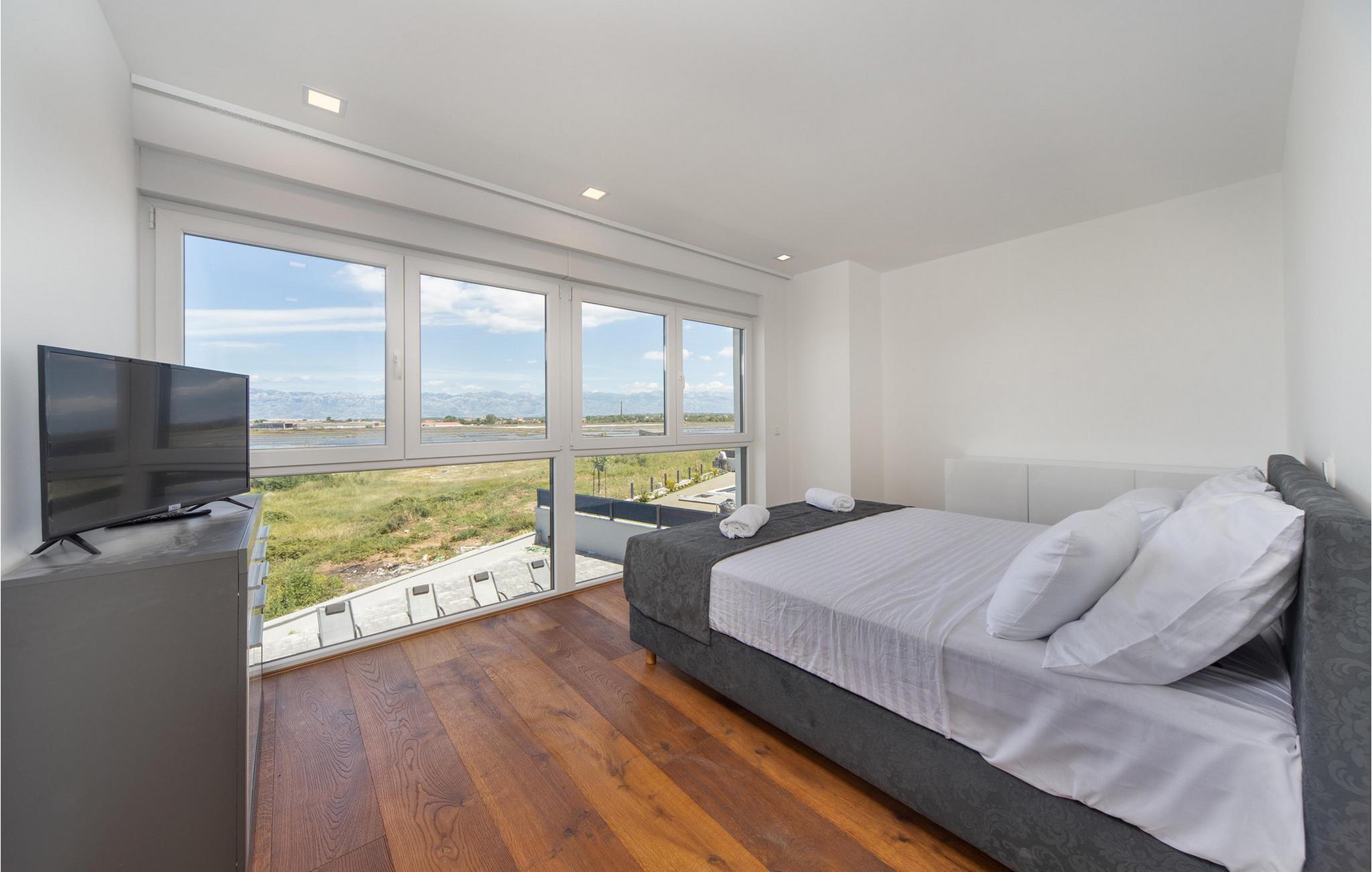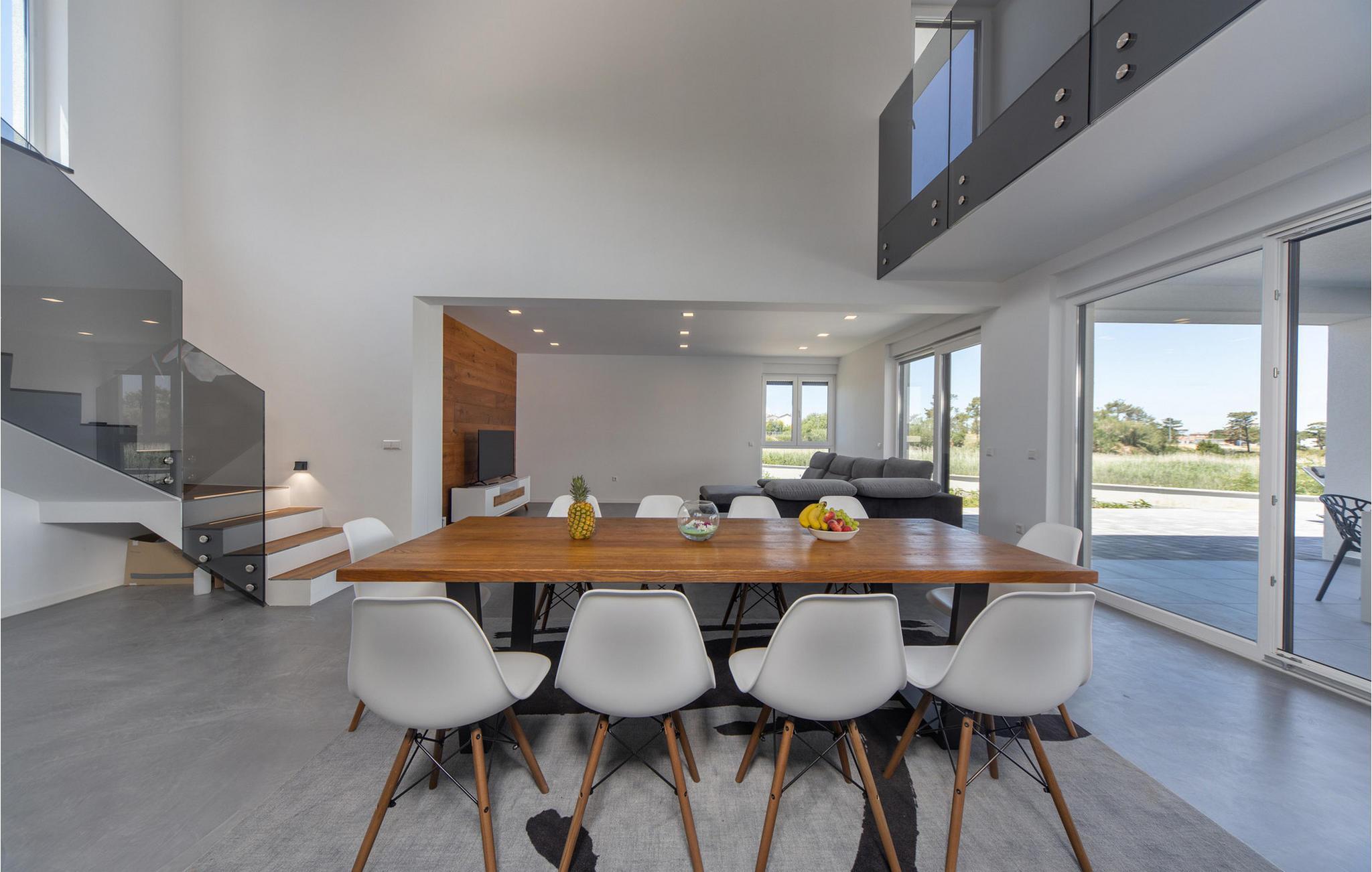 Die moderne Villa Nin liegt in einer flachen Lagune und begrüßt Sie mit einem minimalistisch eingerichteten und hochwertig ausgestatteten Interieur. Große Fensterfronten geben den Blick auf die malerische Landschaft bis zum Meer frei und versorgen die großzügig geschnittenen Räume mit viel natürlichem Tageslicht. Zaubern Sie in geselliger Runde kulinarische Highlights, nehmen Sie am stilvollen Esstisch Platz und halten Sie sich an den Trimmgeräten fit oder vergnügen Sie sich an der Nintendo Wii.