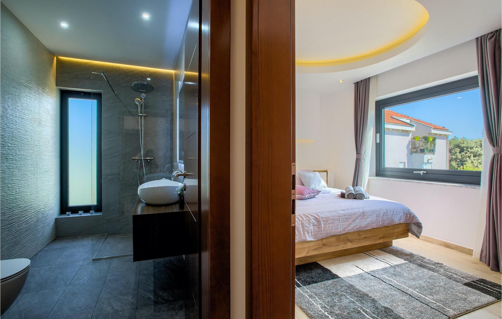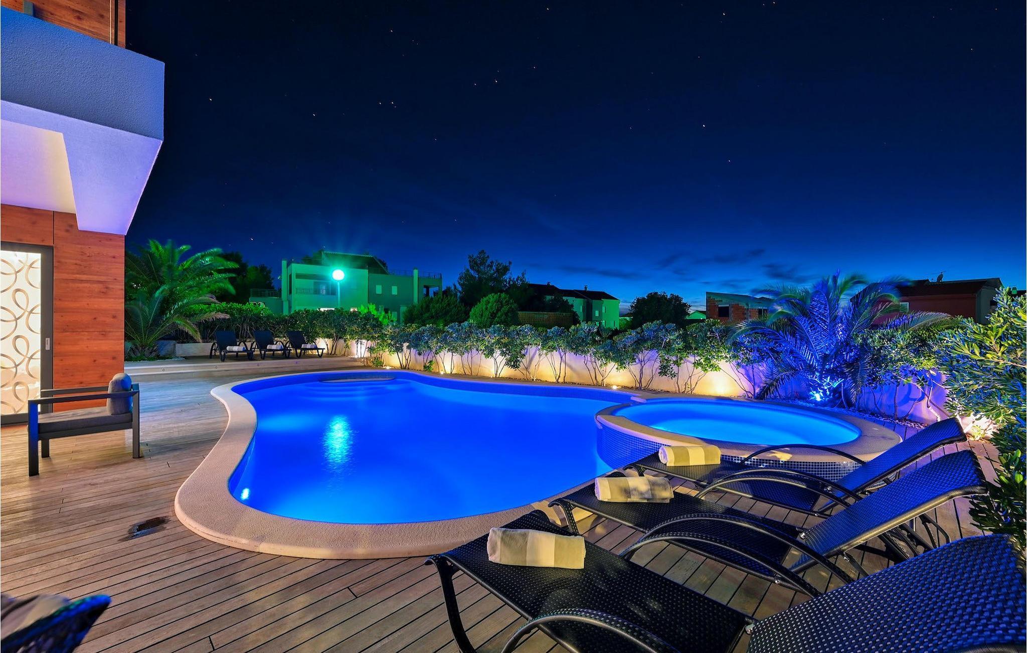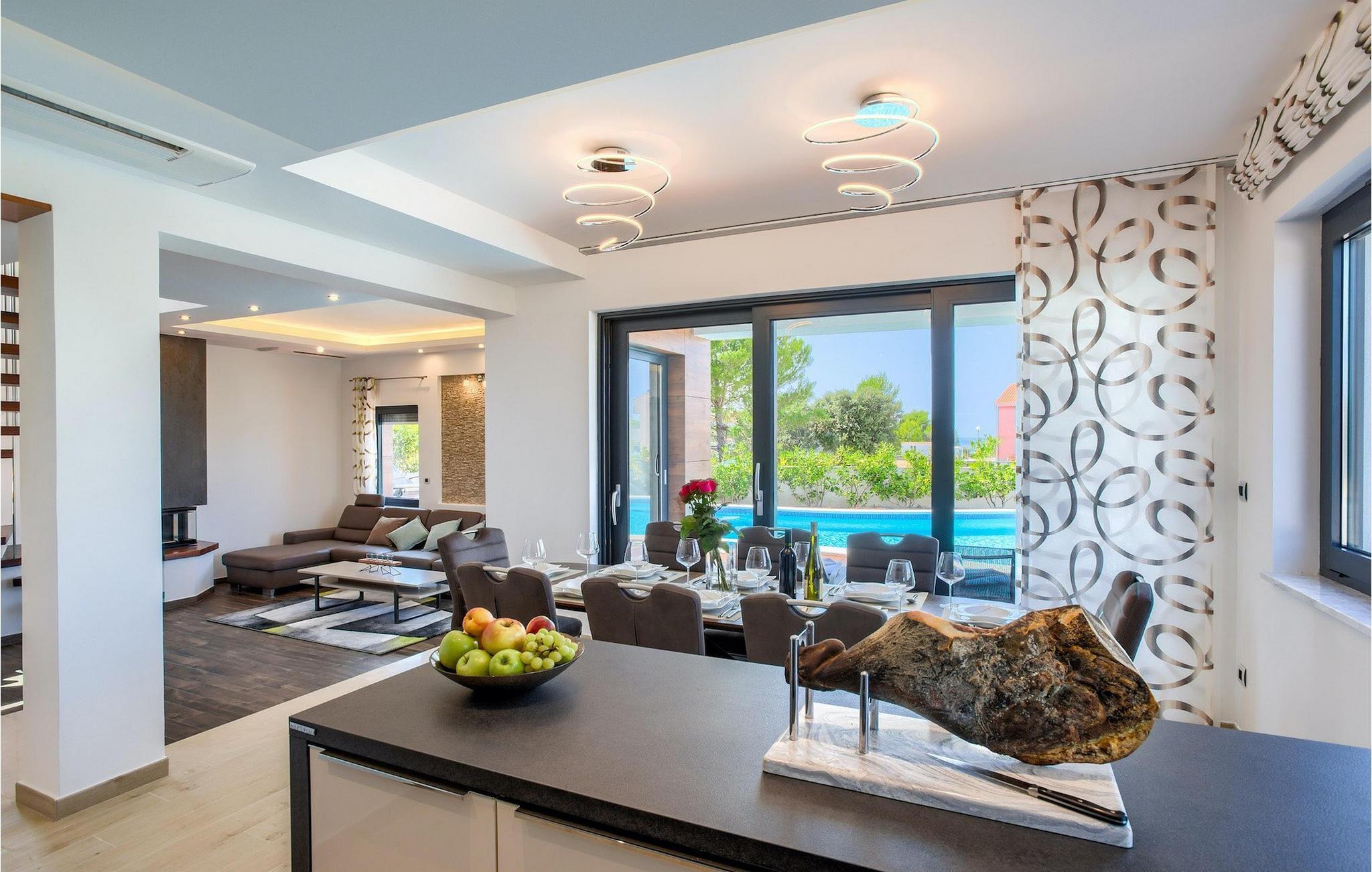 Aber das Highlight dieser wundervollen Villa ist wohl wahrscheinlich die atemberaubende Dachterrasse mit Lounge-Bereich und Ausblick auf das Meer. Sie ist der perfekte Ort für unbeschwerte, abendliche Gespräche, während Sie den Sonnenuntergang bewundern und nach einem anstrengendem Tag am Pool oder Strand das Meer endlich aufatmen sehen. :)Zaton ist ein kleiner, touristischer Ort, gelegen zwischen zwei historischen Städten - Nin (2km) und Zadar (12km). Die wunderschöne dalmatinische Architektur, das angenehme mediterrane Klima, herrliche Landschaften und eine lebhafte touristische Atmosphäre wie auch Vielfalt an Stränden, die Schatten bieten, machen diesem Ort perfekt für einen angenehmen Familienurlaub. Mit Zaton verbindet man Ruhe, kristallklares Meer, einen sauberen Meeresgrund und traumhafte Sonnenuntergänge. Gute Straßenverbindungen und die Nähe vom Radar Flughafen ermöglichen eine angenehme Anreise. 2 km von Zaton finden Sie Nin - ein kleines Städtchen, gelegen auf einer Insel in einer seichten Lagune und mit 2 Steinbrücken mit dem Festland verbunden. Nin ist als die älteste königliche wiege Kroatiens bekannt. Hier befindet sich auch die kleinste Kathedrale der Welt. Die Stadt hat eine lange Geschichte und wunderschöne Naturschätze und ist ein ausgezeichneter Ort für Gesundheitstourismus, wovon der heilbare Meerschlamm zeugt, der angeblich viele Krankheiten heilen kann. Zadar, das Zentrum von Mitteldalmatien ist auch nicht weit (12 km). Zadar ist eine historische Stadt mit reichem kulturellen und historischen Erbe, das bis in die Antike, das Mittelalter und die Renaissance zurückreicht. Besuchen Sie den Römerplatz, die Kirche des Hl. Donat, die Kathedrale der Hl. Anastasia oder entdecken Sie die alte Verteidigungsmauer. Neben den kulturellen und historischen Schönheiten bietet Dalmatien ein einzigartiges gastronomisches Erlebnis, bekannt für hausgemachten dalmatinischen Prosciutto (pršut) und mediterrane blaue Muscheln. Zadar ist berühmt für die Lichtinstallation "Pozdrav Suncu" (Gruß an die Sonne) und die Symphonie der Meeresorgel. Die Stadt vervollständigt ihr Angebot mit verschiedenen Stränden, Restaurants, Bars und Cafés. Als Idee für einen Tagesausflug würden wir die National- und Naturparks empfehlen, wie z.B. die Krka-Wasserfälle, Kornati-Inseln, Plitvicer Seen, Vransko jezero, Telascica und Paklenica, die Ihnen zweifellos den Atem rauben werden.