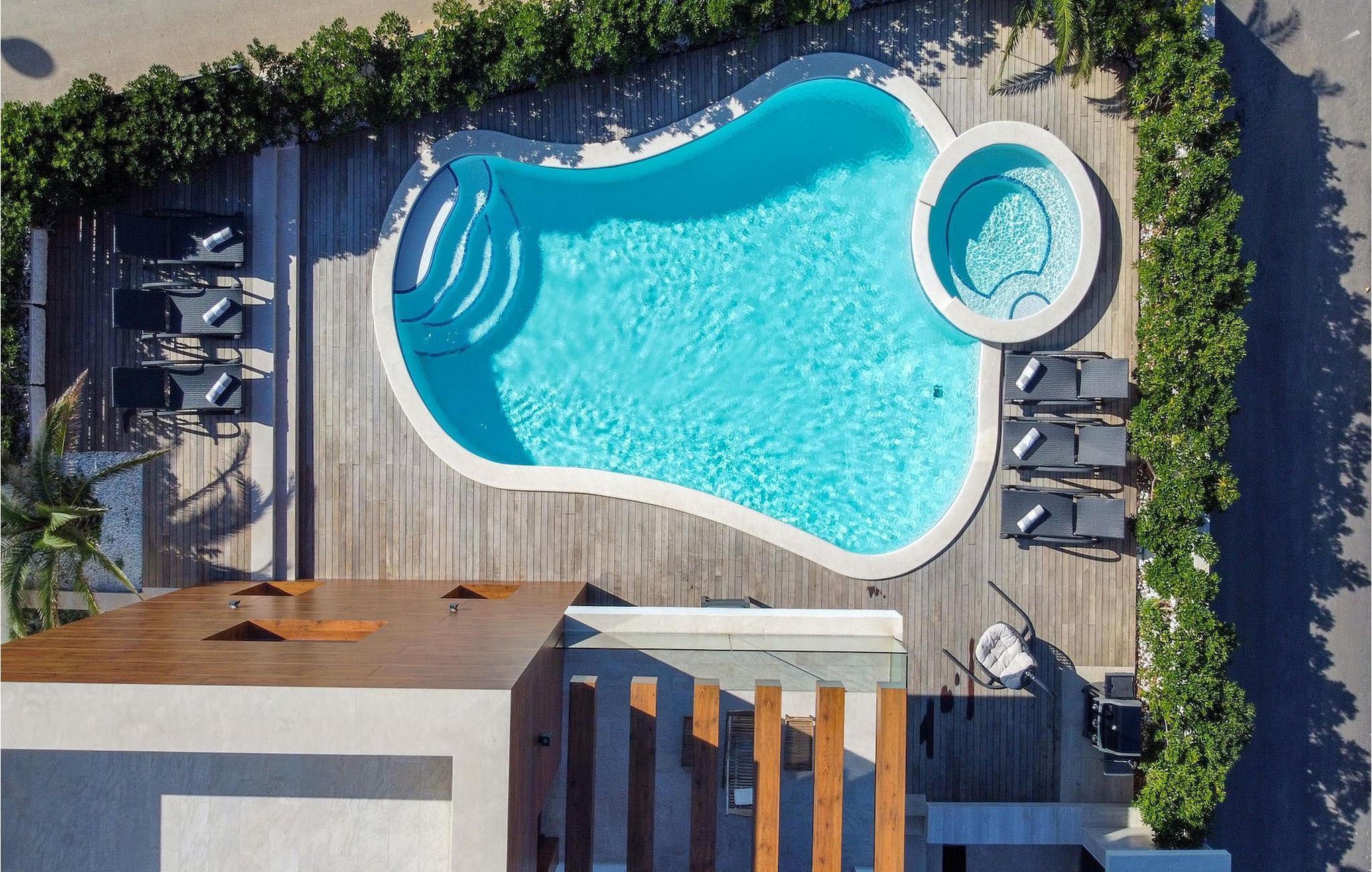 Umgeben von drei Seitem vom Meer, entfernt nur 50m von einer seichten Lagune und 100m von Stränden mit Heilschlamm, bietet Villa Tamaria ein Stück Paradies direkt vor Ihrer Türschwelle. Diese brandneue Villa hat das Beste aus der vorteilhaften Lage gemacht und bietet allen möglichen Luxus und Bequemlichkeiten, die Sie im Urlaub brauchen. Der sorgfältige Gebrauch von natürlichen, erdigen mit eleganten weißen und grauen Tönen verschafft ein angenehmes, heimisches Gefühl, bietet aber gleichzeitig allen nötigen Komfort. Beginnend vom Erdgeschoss hinauf, ist der offen gelegene, stilvolle Wohnraum mit der genauso schönen Küche und Essraum verbunden, von wo aus man sehr leicht bis zum privaten Pool mit Hydromassage und wunderschönem Meerblick gelangt. Ein gemütliches Schlafzimmer mit Doppelbett und ensuite Badezimmer, wie auch ein Gäste-WC, befinden sich ebenfalls im Erdgeschoss. Die anderen drei eleganten Schlafzimmer befinden sich auf dem ersten Stock. Eines der Schlafzimmer hat ein eigenes Bad, während die anderen beiden Schlafzimmer ein Bad teilen. Alle Schlafzimmer sind klimatisiert und 3 von 4 haben einen Fernseher für zusätzlichen Komfort.