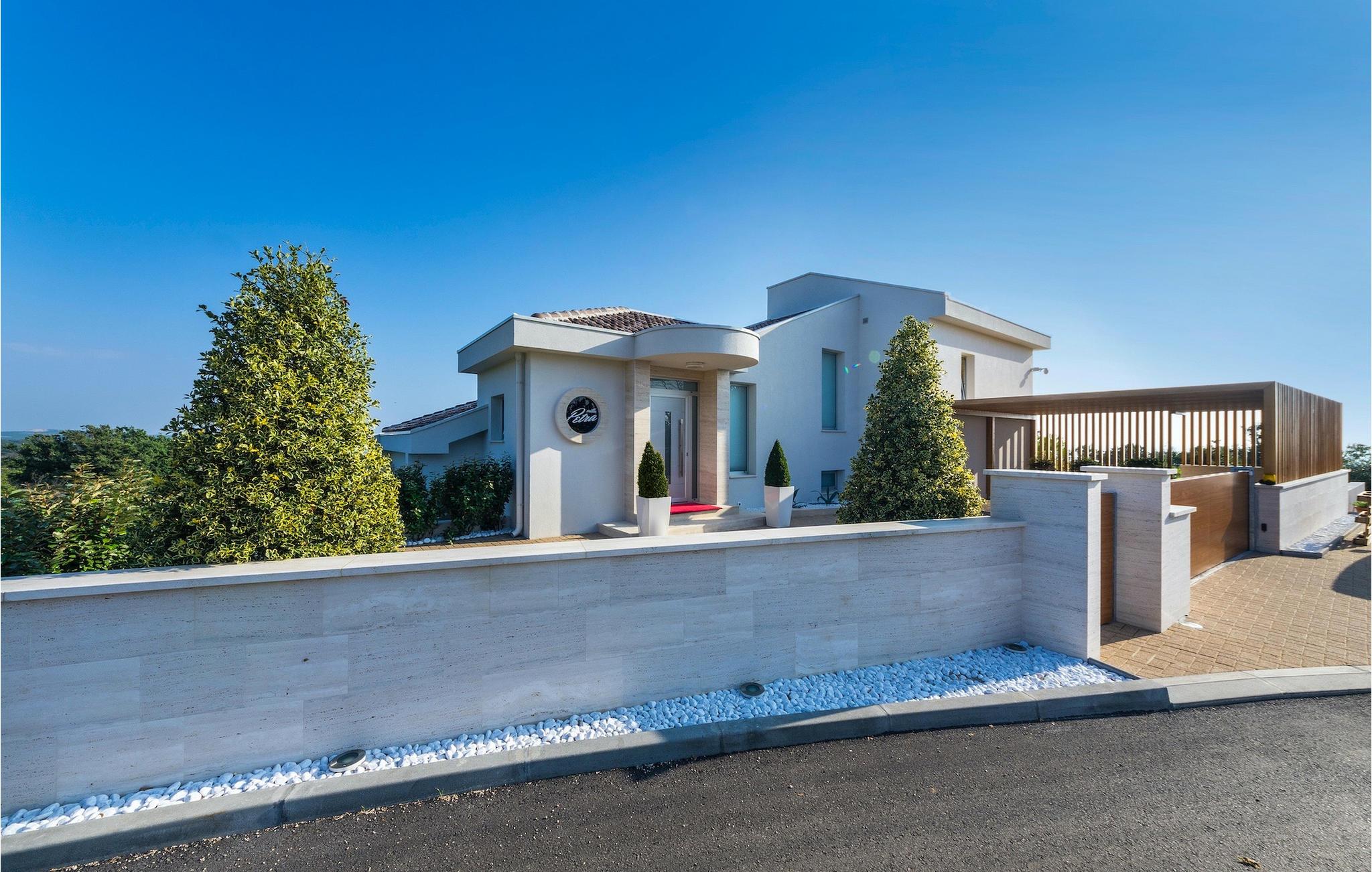 Die wunderschöne Villa Petra Pag befindet sich auf der Insel Pag in der Nähe des touristischen Ortes Novalja. Diese einzigartige Villa ist für Familien und Gruppen geeignet und kann insgesamt bis zu 8 Personen in 3 komfortablen Schlafzimmern beherbergen. Alle Schlafzimmer befinden sich in der ersten Etage und verfügen über ein eigenes Badezimmer, eine Klimaanlage und einen Fernseher. Von der ersten Etage haben Sie direkten Zugang zu einer schönen Terrasse, von der aus Sie den herrlichen Meerblick genießen können, und zum Wintergarten, in dem sich der Fitnessraum und die Sauna befinden. Das offen eingerichtete Erdgeschoss besteht aus einem gemütlichen Wohnzimmer mit TV und einer modernen, voll ausgestatteten Küche mit eigenem Weinkeller. Vom Erdgeschoss aus haben Sie über Panorama-Schiebetüren direkten Zugang zur Terrasse und zum Garten. Der Außenbereich ist einfach atemberaubend! Das Highlight der Villa ist eine moderne Außenküche mit einem großen Esstisch und einem Loungebereich für entspannte Momente mit Ihren Freunden und Ihrer Familie. Der perfekte Ort, um die Vorzüge dieser ruhigen Lage zu genießen, ist der einladende Poolbereich mit bequemen Sonnenliegen und einem Außen-Jacuzzi. Genießen Sie einen luxuriösen Urlaub und buchen Sie die Villa Petra Pag, die Ihnen ein Gefühl von Zuhause geben wird.Die Villa Petra Pag befindet sich auf der Insel Pag, nicht weit von der Touristenstadt Novalja entfernt. Pag ist eine der besonderssten Inseln an der Adria. Sie ist bekannt für ihr ungewöhnliches Relief, das durch den Einfluss des starken Nordwindes namens Bura entstanden ist. Es wird gesagt, dass die Insel Pag wie die Oberfläche des Planeten Mars aussieht, und genau das macht sie zu einem attraktiven Reiseziel. Wir empfehlen allen Gastronomie-Liebhabern, das Pager Lammfleisch unter der Backhaube und den Pager Käse zu probieren, der in der ganzen Welt bekannt ist. Ihr Geschmack ist sehr ungewöhnlich, aufgrund der einzigartigen Ernährung der Schafe auf der Insel. Der bekannteste touristische Ort auf der Insel Pag ist Novalja, wo Sie das reiche Angebot an Nachtclubs und Musikfestivals, die im Sommer stattfinden, genießen können. Die Insel Pag ist durch eine Brücke mit dem Festland verbunden. Wir empfehlen Ihnen, die touristischen Städte Nin und Zadar zu besuchen, die Sie mit ihren historischen Gebäuden, schönen Stränden und anderem touristischen Angebot begeistern werden.