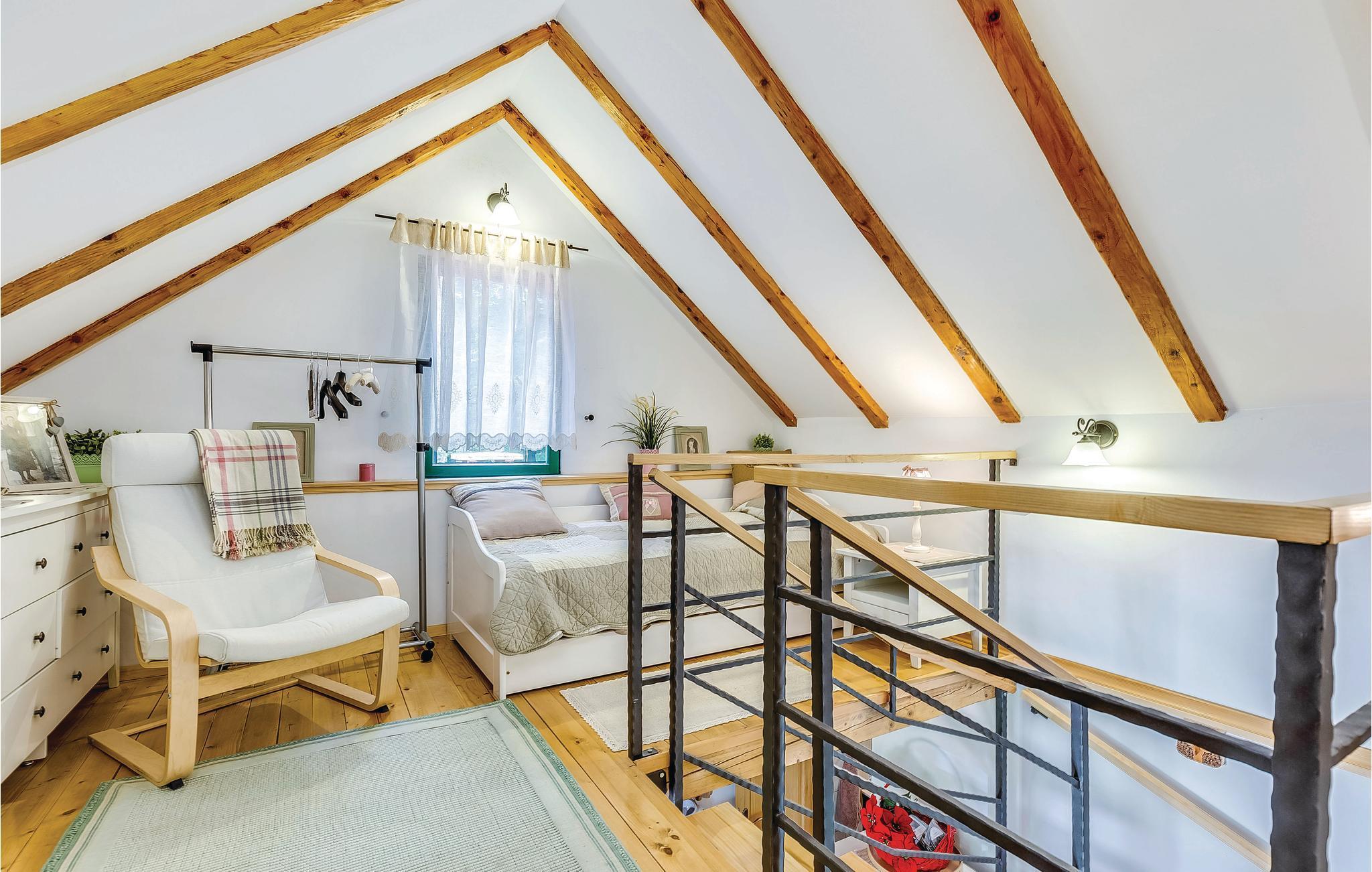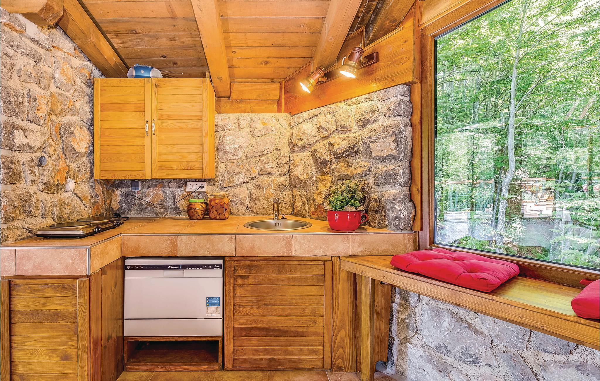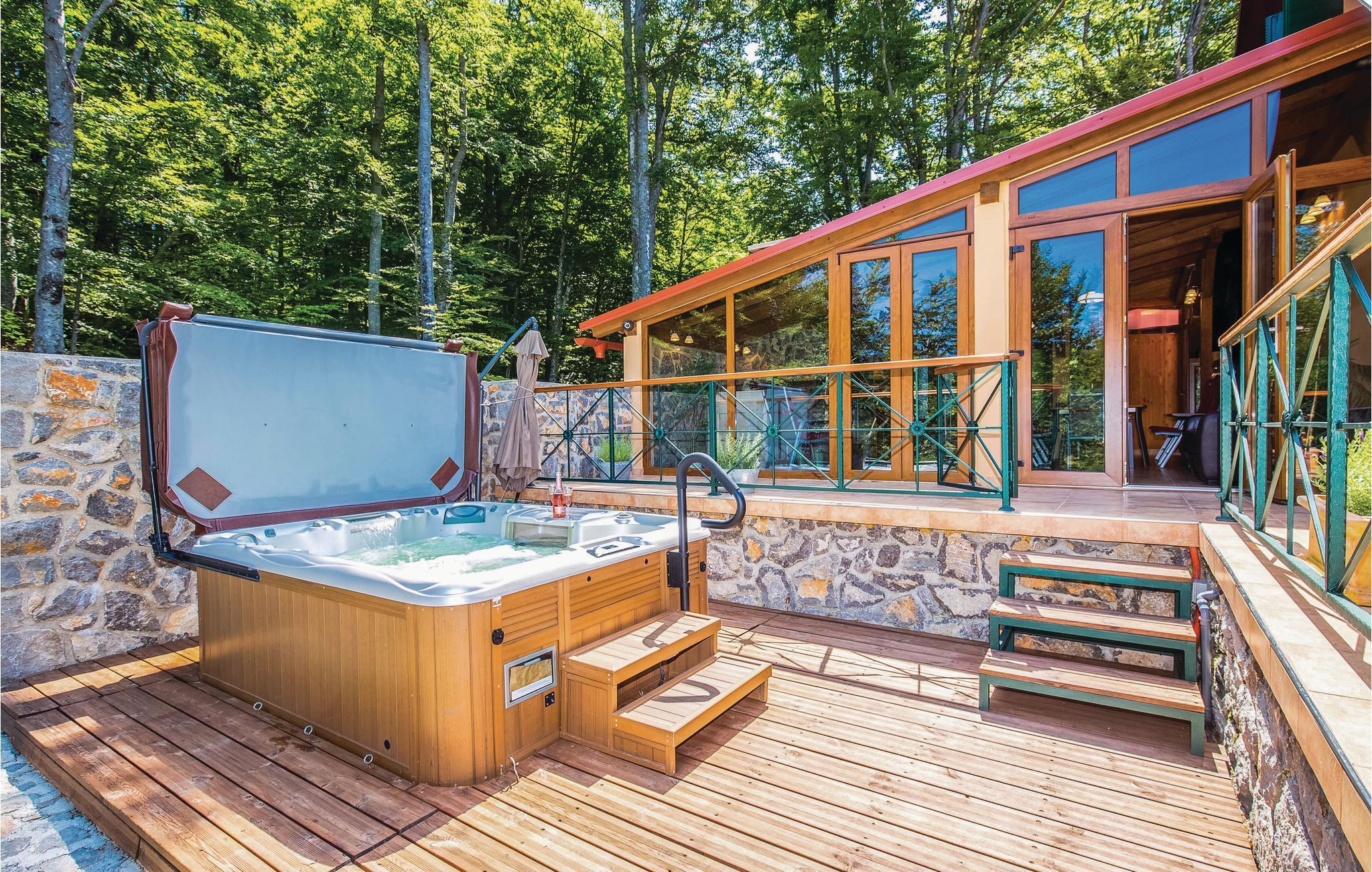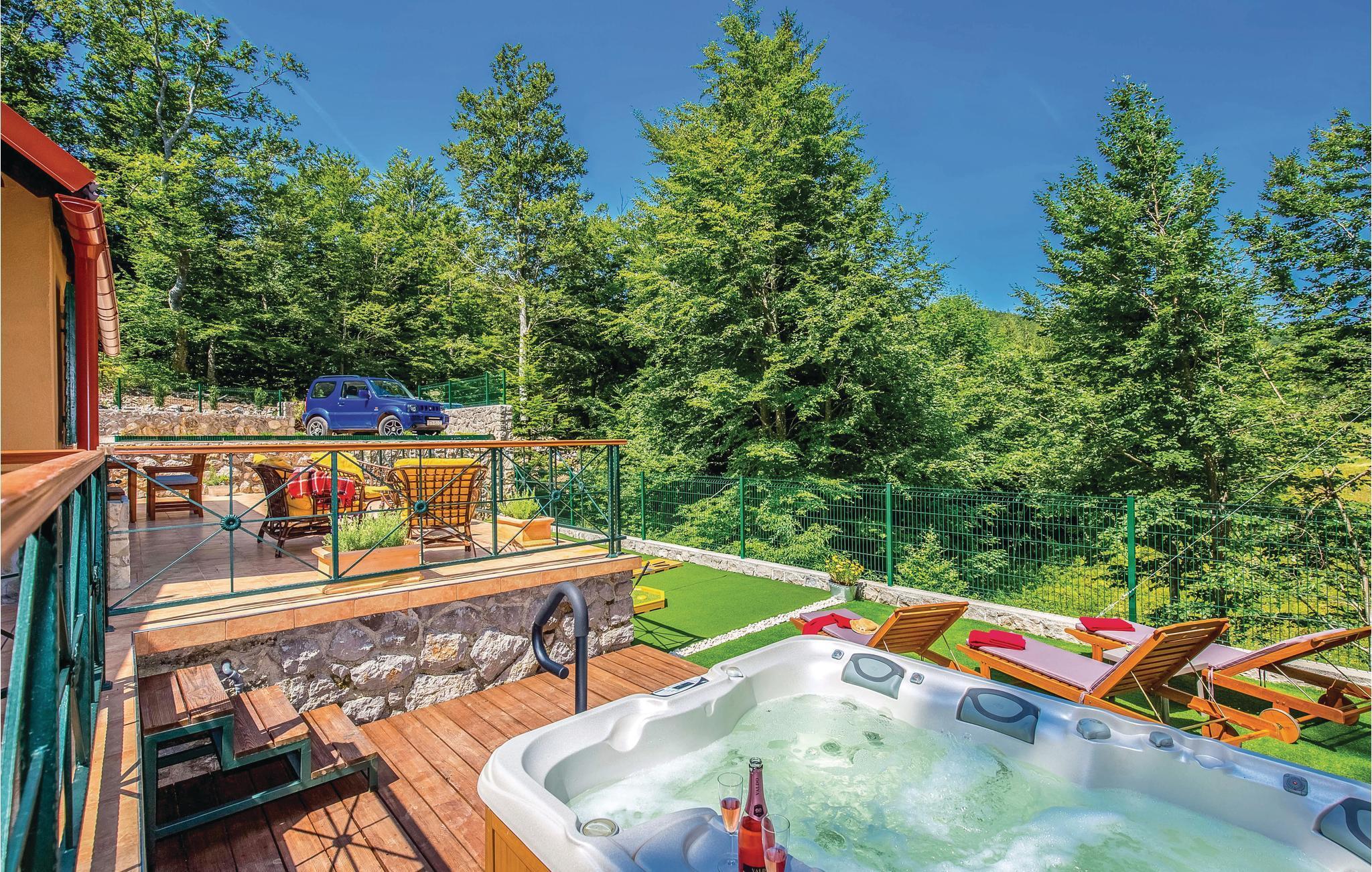 Dieses Ferienhaus liegt im einsamen und ruhigen Hinterland von Bribir und wird vor allem Naturliebhaber begeistern. Im Erdgeschoss liegt das Wohnzimmer mit Küche, während die Innentreppe zum geräumigen Galerie-Schlafbereich (min. Deckenhöhe 100 cm) führt. Über einen separaten Eingang ist die Sommerküche erreicht, wo sich auch der Grill und das Badezimmer befinden. Dieses Ferienhaus besticht durch seine charmante Innenausstattung, die mit viel Liebe zum Detail ausgesucht wurde. Genießen Sie gegrillte Köstlichkeiten auf der Terrasse und lassen dass wohltuende Ambiente der malerischen Natur auf sich wirken oder verwöhnen Sie sich mit einem entspannten Bad im Whirlpool. Novi Vinodolski (22 km) wird Sie mit seiner wunderschönen Küste und romantischen Stränden sicher für sich gewinnen.