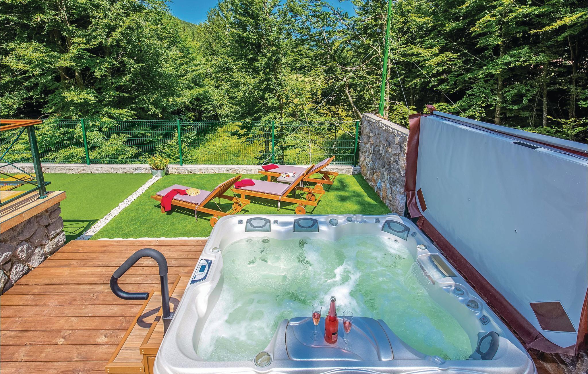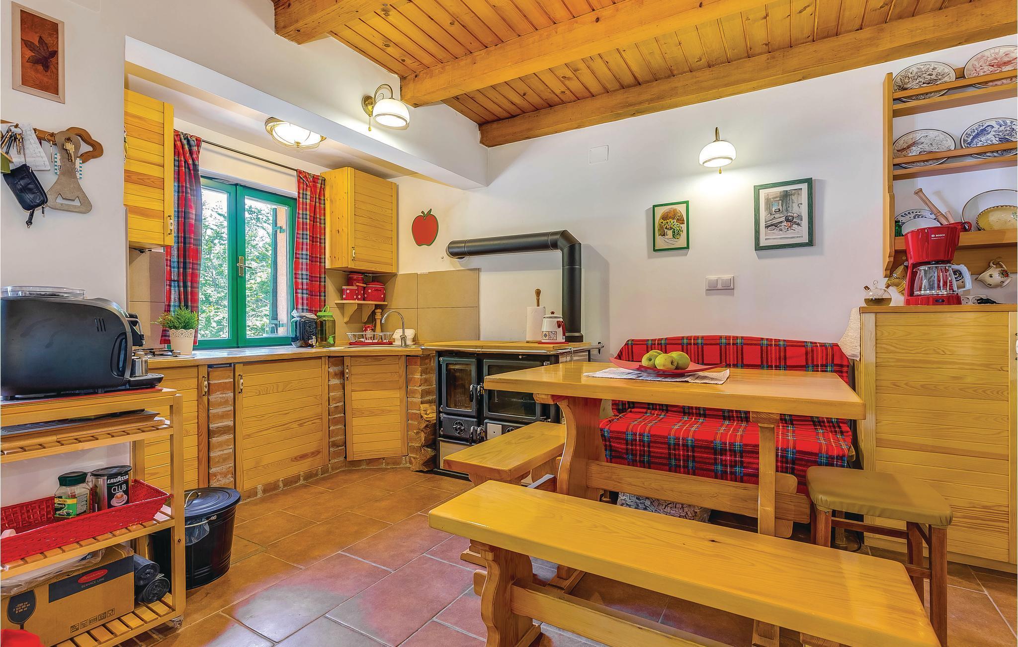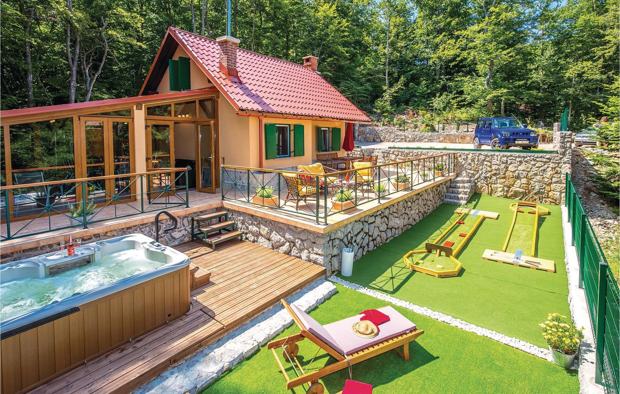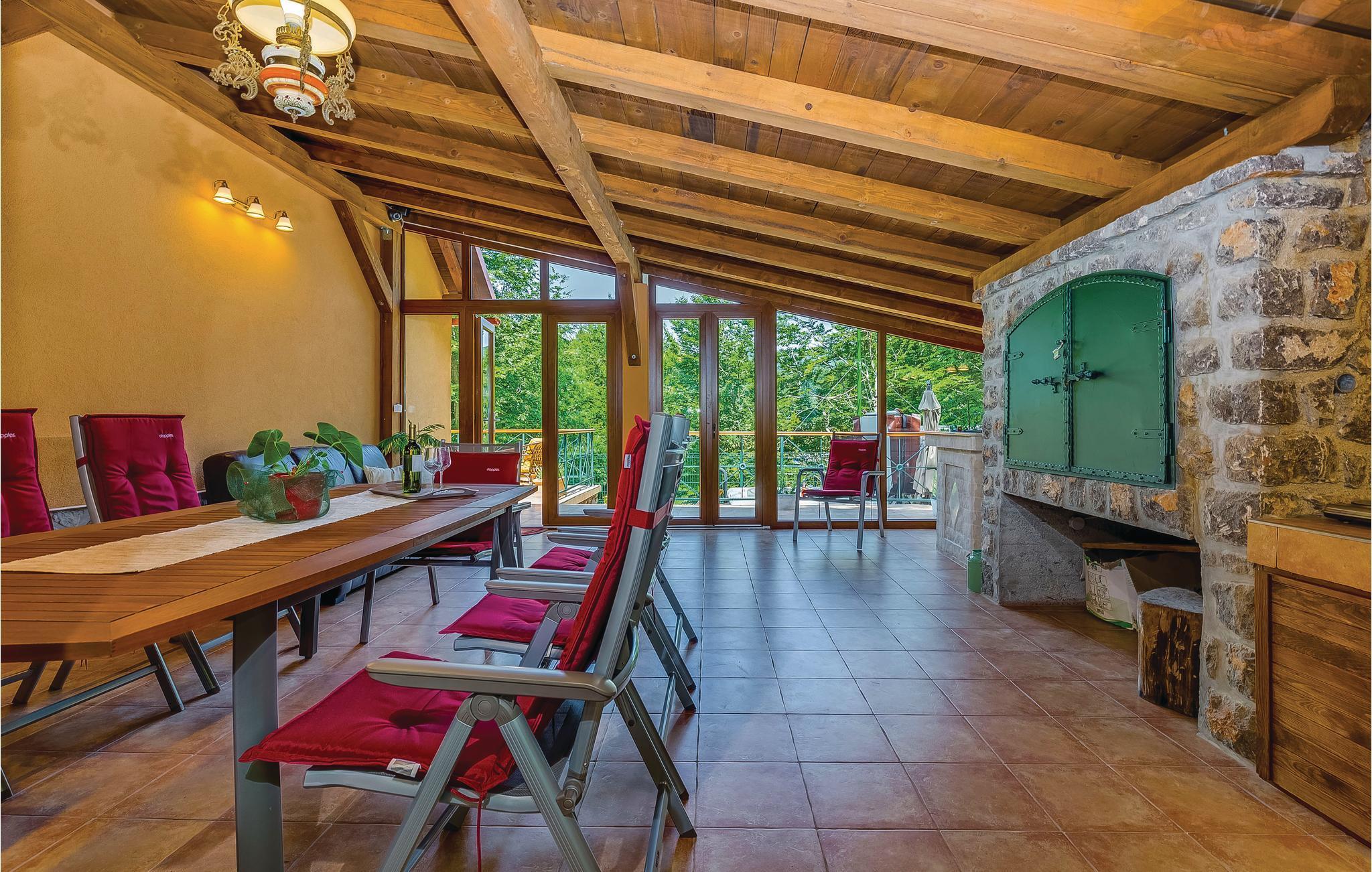 Dieses Ferienhaus liegt im einsamen und ruhigen Hinterland von Bribir und wird vor allem Naturliebhaber begeistern. Im Erdgeschoss liegt das Wohnzimmer mit Küche, während die Innentreppe zum geräumigen Galerie-Schlafbereich (min. Deckenhöhe 100 cm) führt. Über einen separaten Eingang ist die Sommerküche erreicht, wo sich auch der Grill und das Badezimmer befinden. Dieses Ferienhaus besticht durch seine charmante Innenausstattung, die mit viel Liebe zum Detail ausgesucht wurde. Genießen Sie gegrillte Köstlichkeiten auf der Terrasse und lassen dass wohltuende Ambiente der malerischen Natur auf sich wirken oder verwöhnen Sie sich mit einem entspannten Bad im Whirlpool. Novi Vinodolski (22 km) wird Sie mit seiner wunderschönen Küste und romantischen Stränden sicher für sich gewinnen.