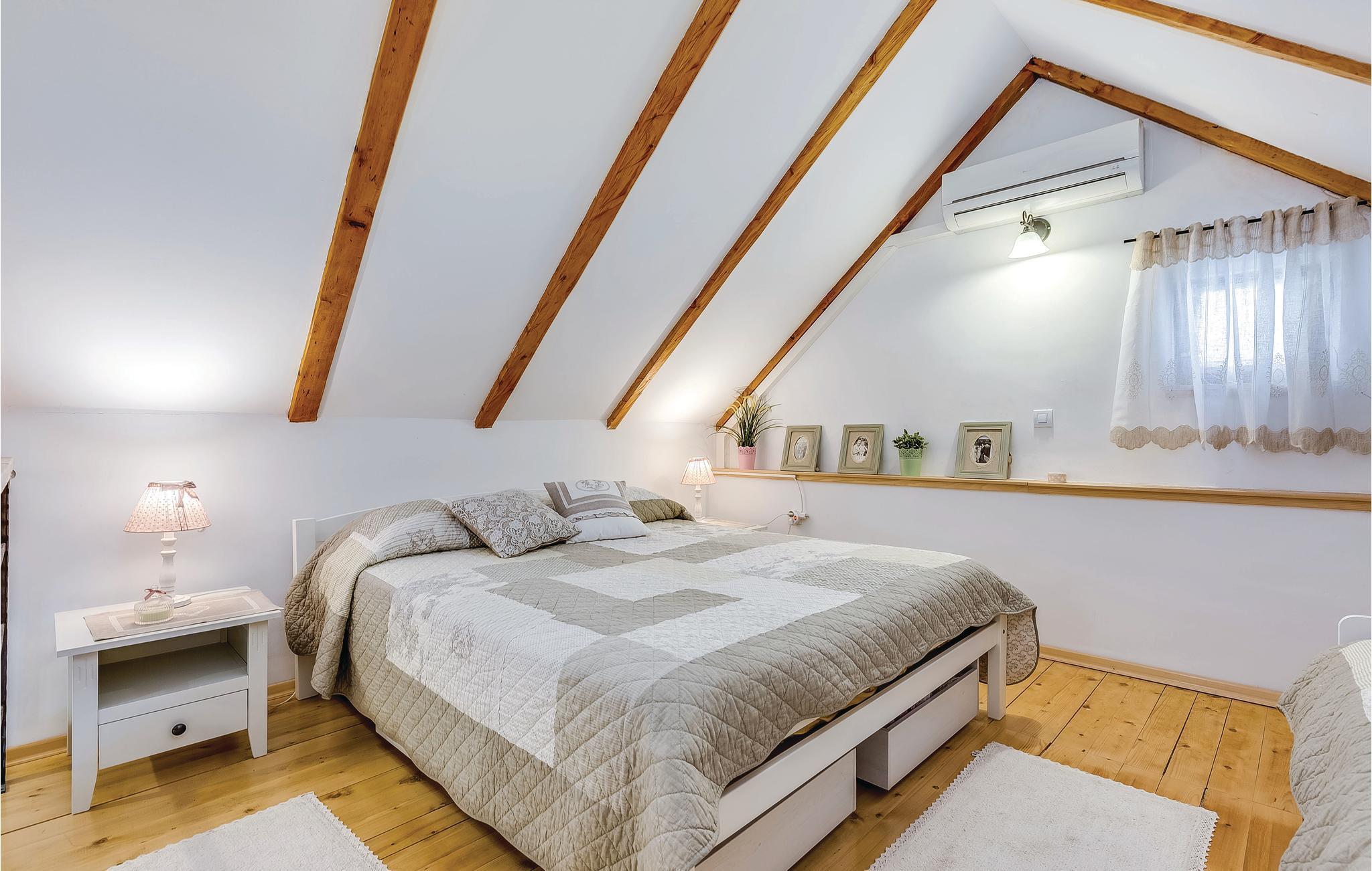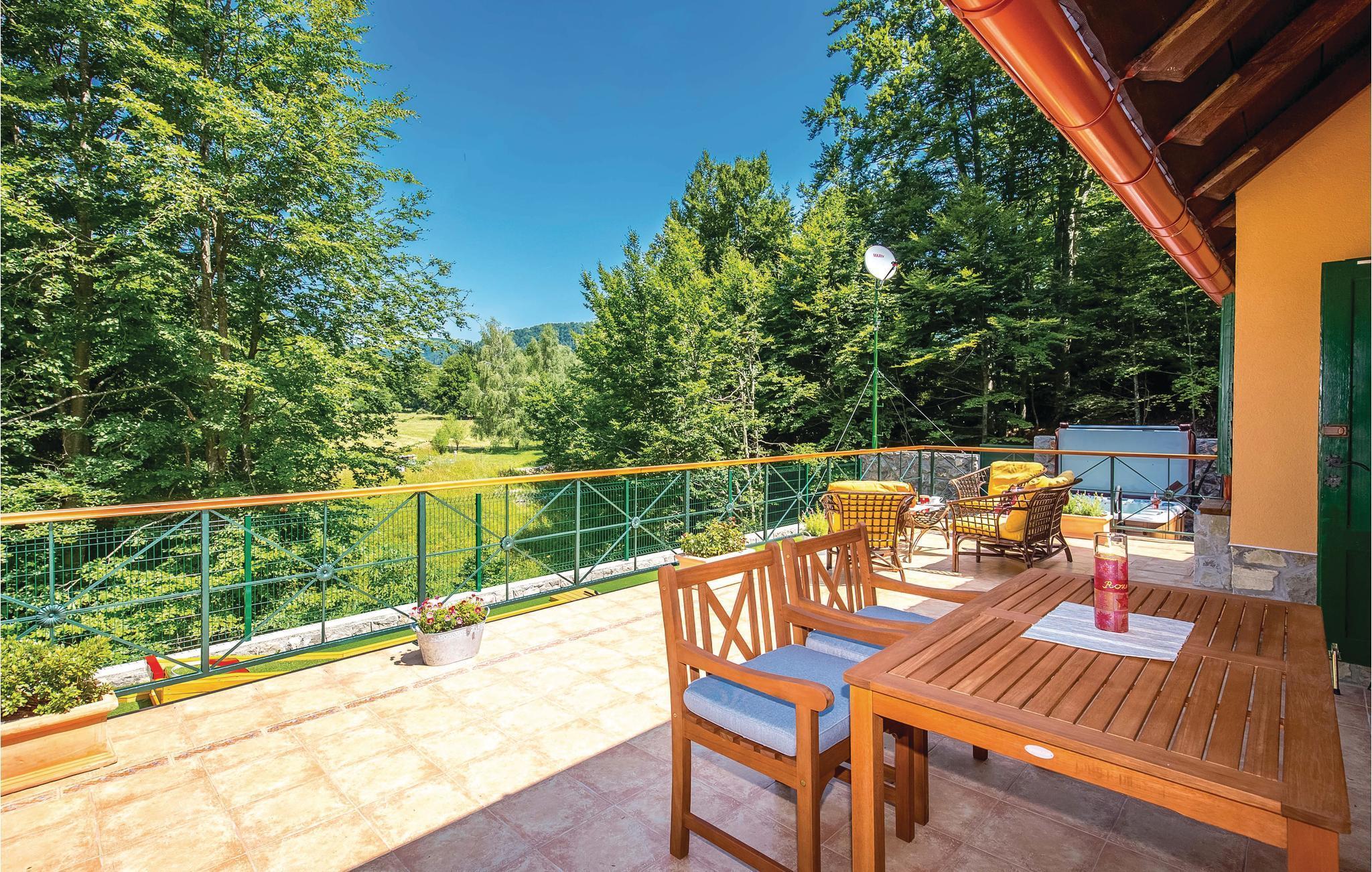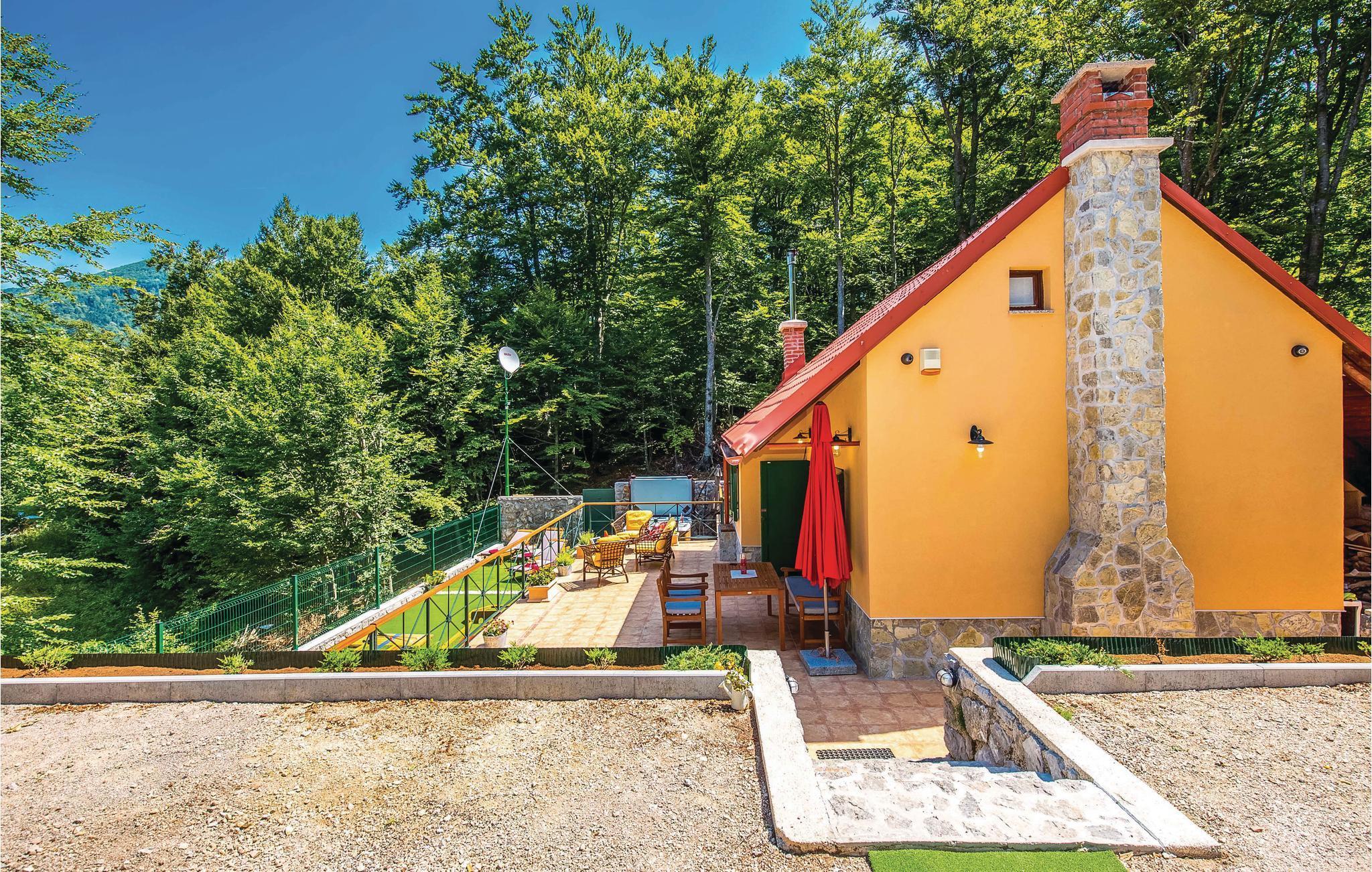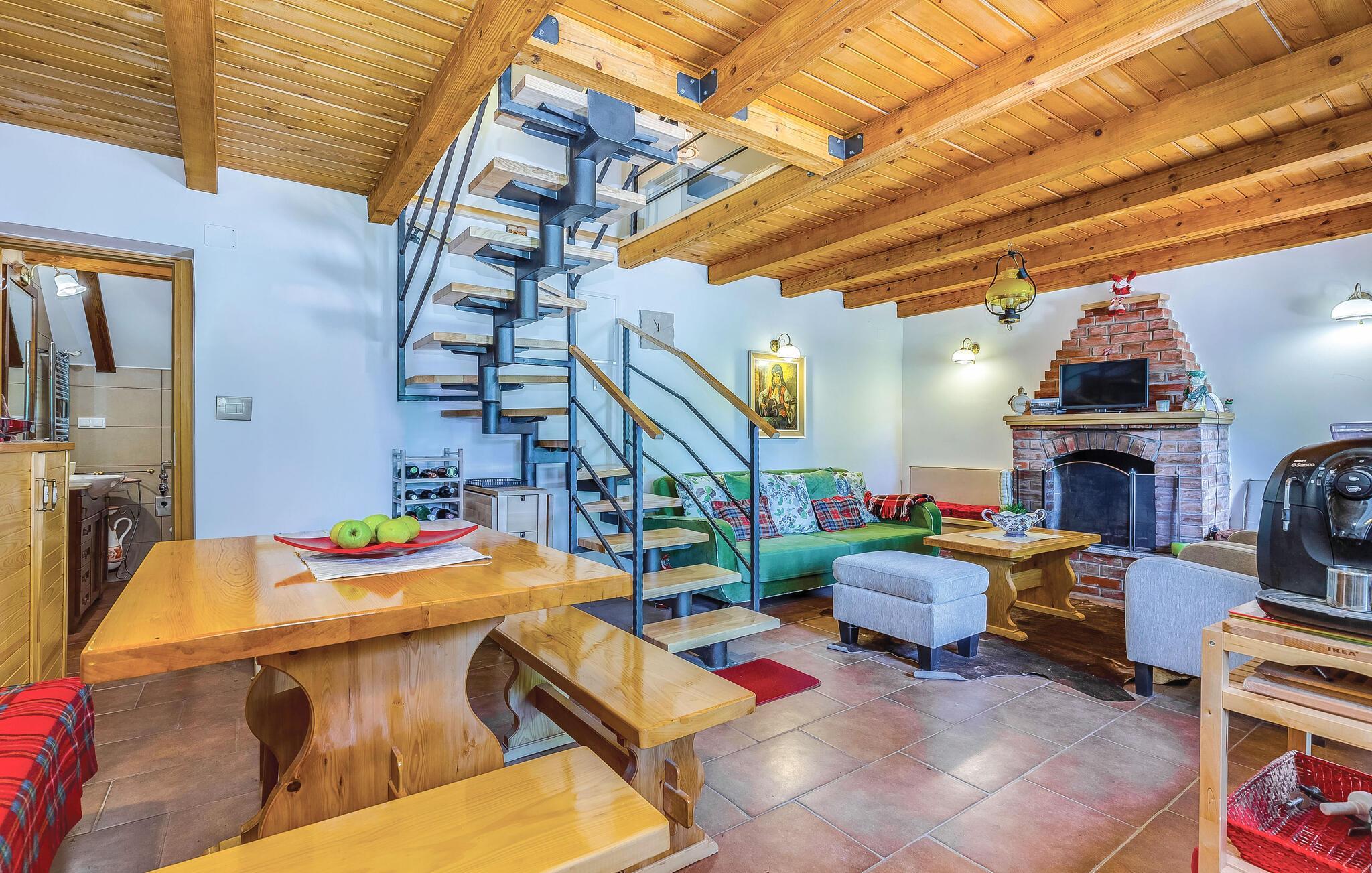 Dieses Ferienhaus liegt im einsamen und ruhigen Hinterland von Bribir und wird vor allem Naturliebhaber begeistern. Im Erdgeschoss liegt das Wohnzimmer mit Küche, während die Innentreppe zum geräumigen Galerie-Schlafbereich (min. Deckenhöhe 100 cm) führt. Über einen separaten Eingang ist die Sommerküche erreicht, wo sich auch der Grill und das Badezimmer befinden. Dieses Ferienhaus besticht durch seine charmante Innenausstattung, die mit viel Liebe zum Detail ausgesucht wurde. Genießen Sie gegrillte Köstlichkeiten auf der Terrasse und lassen dass wohltuende Ambiente der malerischen Natur auf sich wirken oder verwöhnen Sie sich mit einem entspannten Bad im Whirlpool. Novi Vinodolski (22 km) wird Sie mit seiner wunderschönen Küste und romantischen Stränden sicher für sich gewinnen.