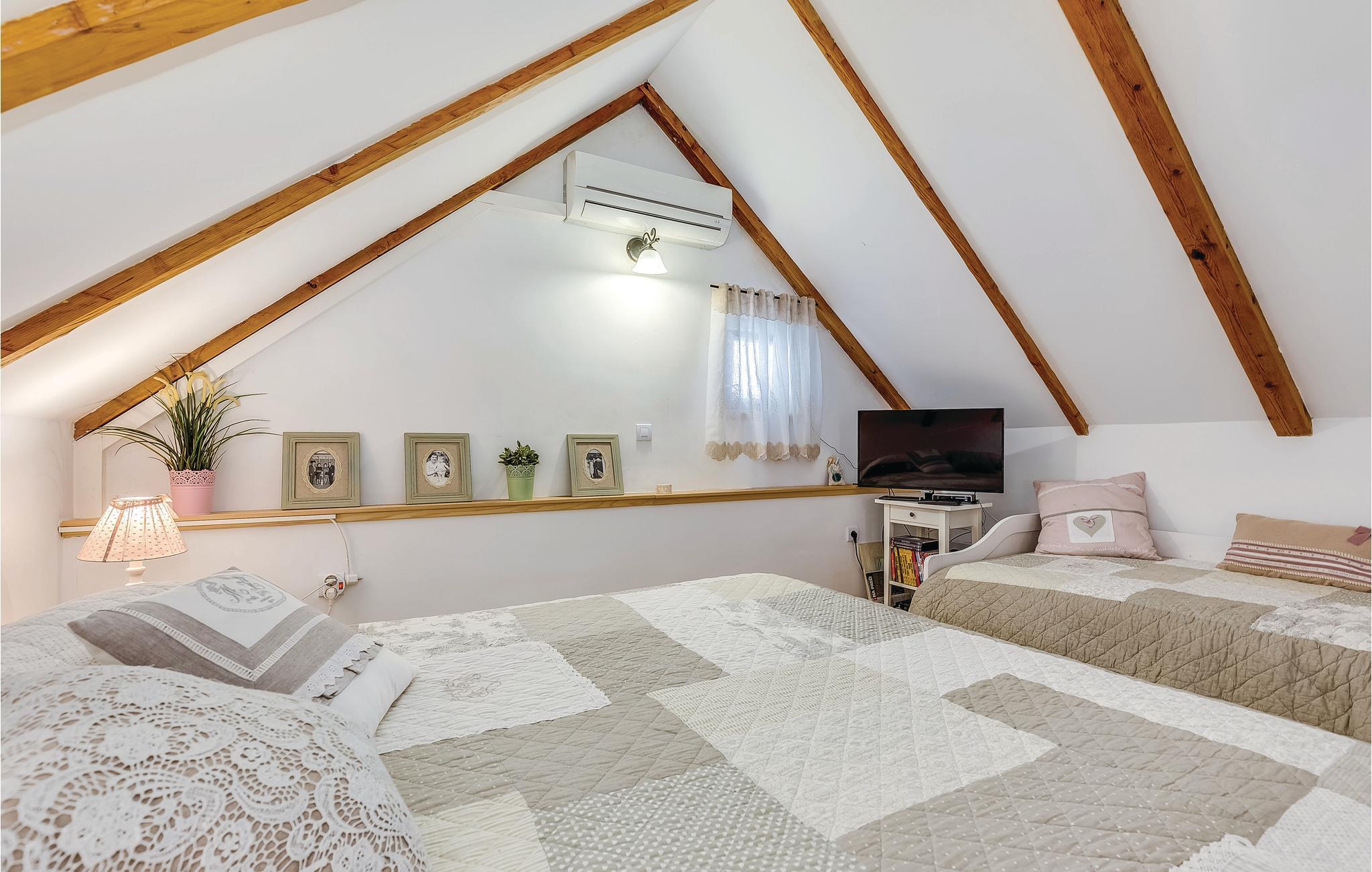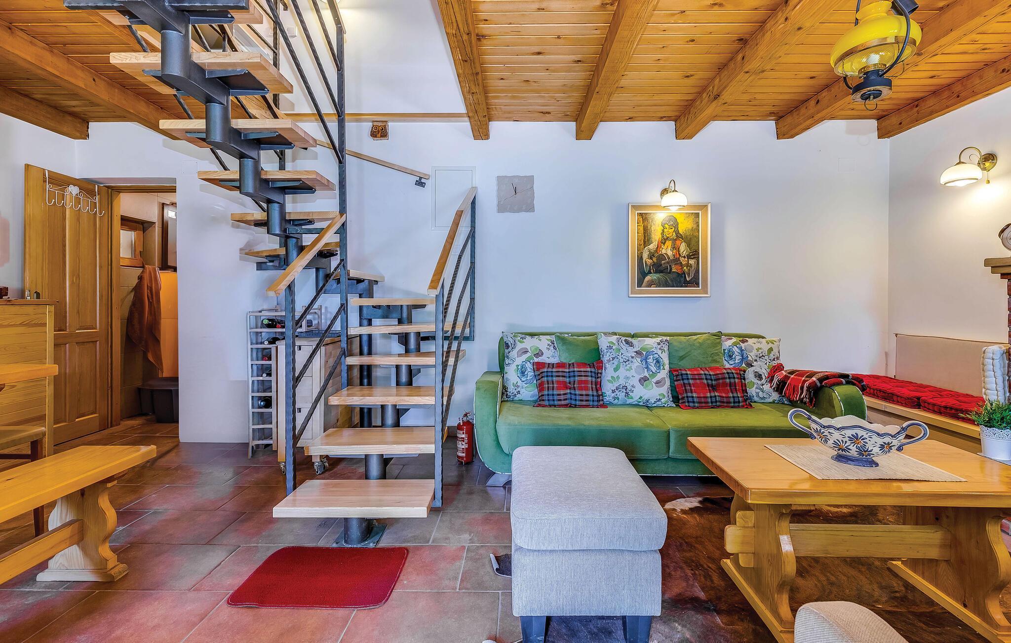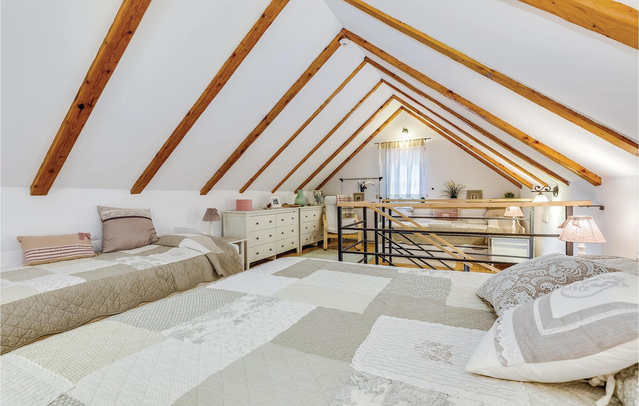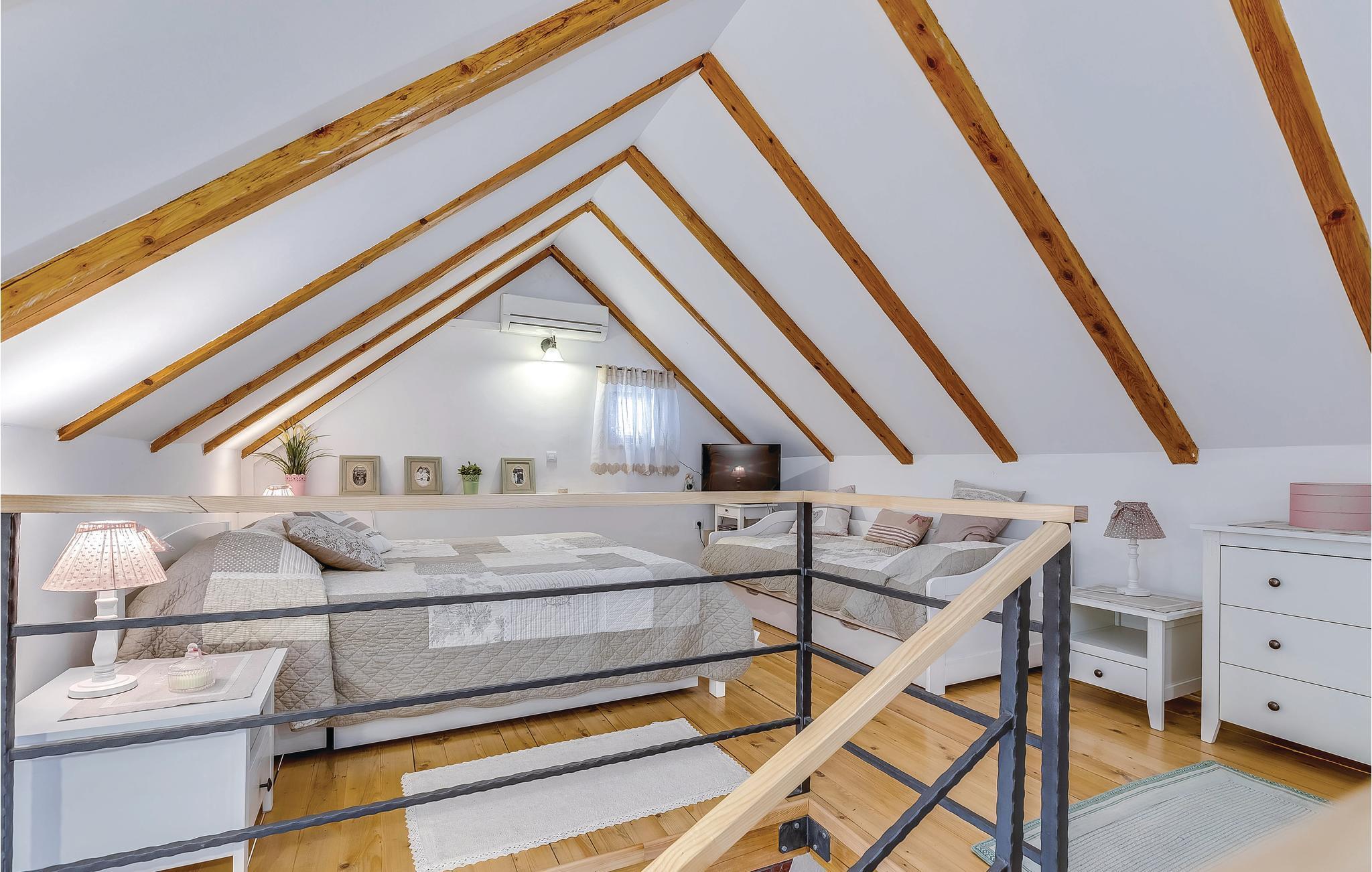Dieses Ferienhaus liegt im einsamen und ruhigen Hinterland von Bribir und wird vor allem Naturliebhaber begeistern. Im Erdgeschoss liegt das Wohnzimmer mit Küche, während die Innentreppe zum geräumigen Galerie-Schlafbereich (min. Deckenhöhe 100 cm) führt. Über einen separaten Eingang ist die Sommerküche erreicht, wo sich auch der Grill und das Badezimmer befinden. Dieses Ferienhaus besticht durch seine charmante Innenausstattung, die mit viel Liebe zum Detail ausgesucht wurde. Genießen Sie gegrillte Köstlichkeiten auf der Terrasse und lassen dass wohltuende Ambiente der malerischen Natur auf sich wirken oder verwöhnen Sie sich mit einem entspannten Bad im Whirlpool. Novi Vinodolski (22 km) wird Sie mit seiner wunderschönen Küste und romantischen Stränden sicher für sich gewinnen.