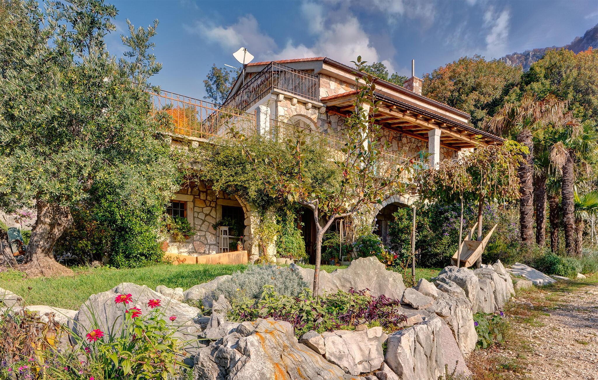 Erleben Sie den schönen, mediterranen Garten voller Kräuter, lauschigen Ecken und zusätzlich einen einladenden Hauptpool und ein kleines Kinderbecken. Verbringen Sie hier viele Stunden und genießen die Aussicht, bis hin zum Meer.