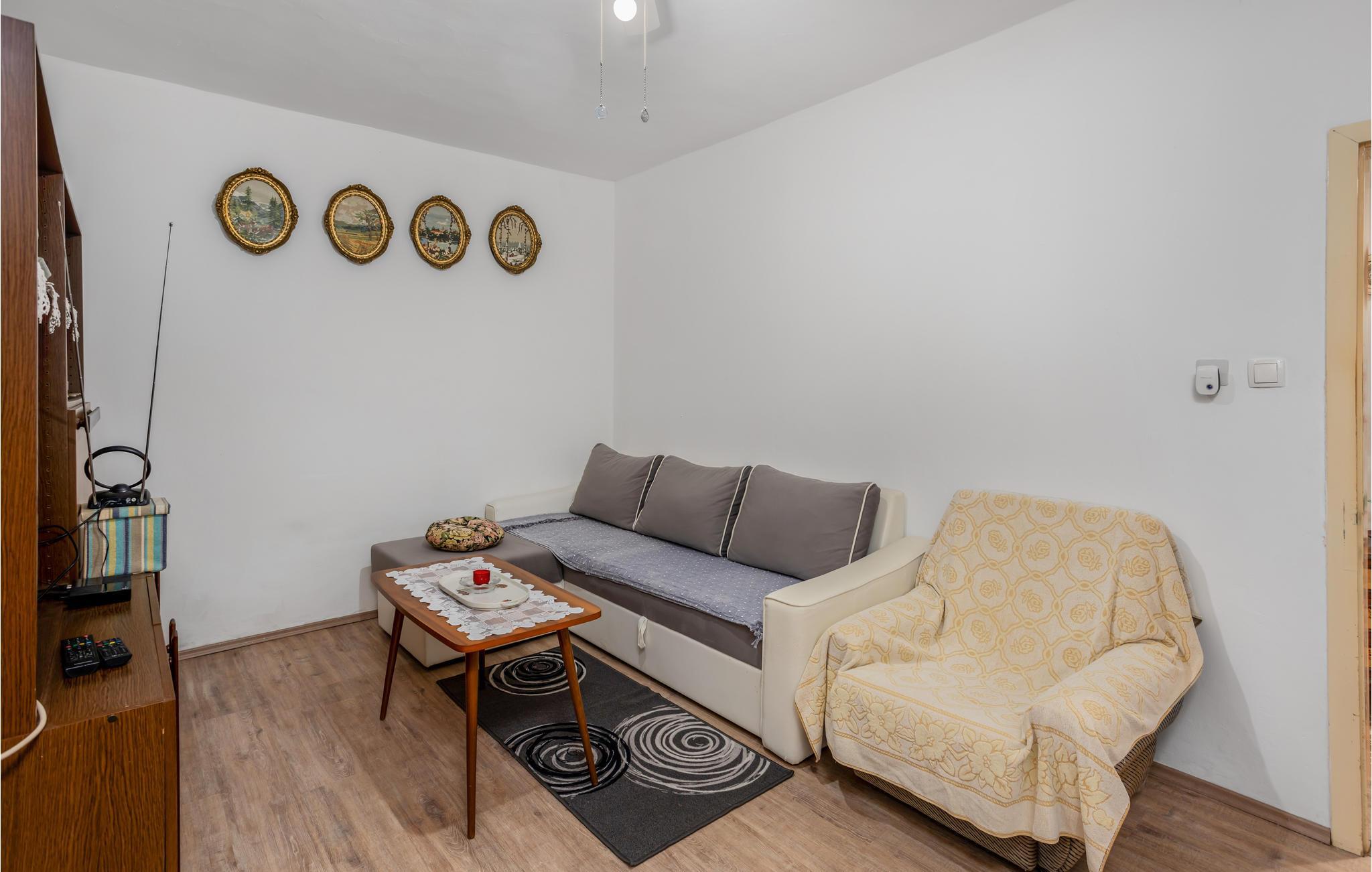 Kommen Sie an und fühlen sich in dem einstöckigen Haus, das den Garten mit einem anderen Haus teilt, willkommen. Das Haus verfügt über einfachem Komfort und dient Ihnen als guter Ausgangspunkt für Ihre Unternehmungen in der Region. Entspannen Sie sich mit Ihrer kleinen Familie im grünen Garten, der ideal zum Genießen der Ruhe und Stille ist.