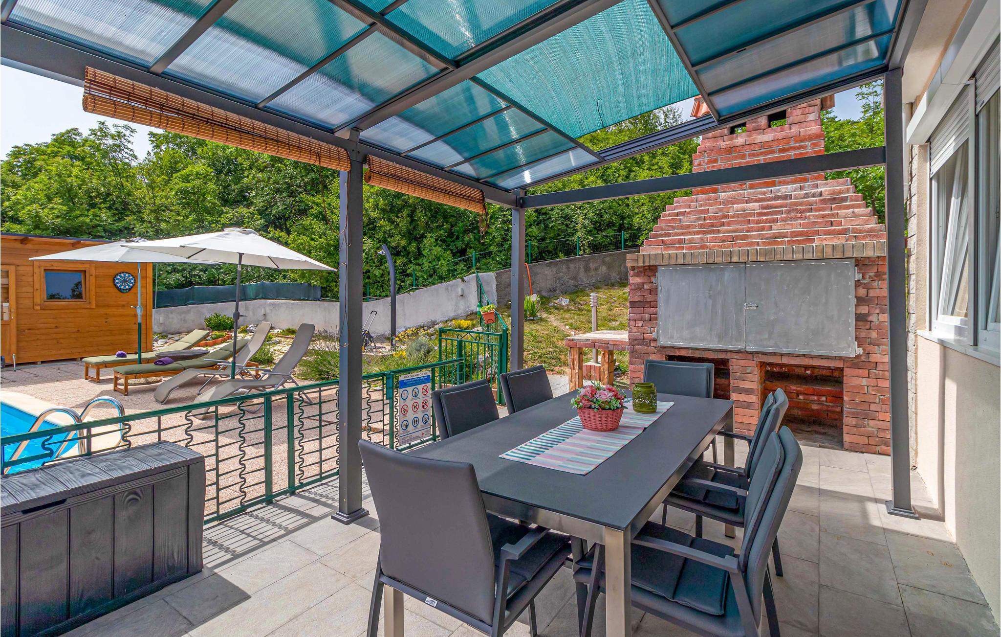 Dieses charmante Haus ist eine Einladung für alle Naturliebhaber. Es liegt in der Nähe eines Waldes im Hinterland von Novi Vinodolski und ist von unberührter Natur umgeben. Das angenehme und einfach eingerichtete Haus eignet sich gut für Familien mit Kindern. Hier können Sie das Vogelzwitscher und die schöne Landschaft genießen oder einfach nur in Ruhe mit Ihrem Lieblingsbuch entspannen. Erfrischung Sie sich an heißen Tagen im Pool und lassen Sie sich in der Sonne trocknen. Nach einem Tag an der frischen Luft finden Sie wohlige Wärme im Whirlpool.
