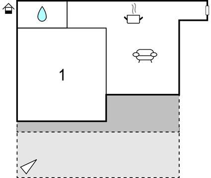 Diese funktionale Wohnung befindet sich im Erdgeschoss eines Familienhauses. Es gibt eine Küche mit einem Wohnzimmer, ein Schlafzimmer und ein Badezimmer.