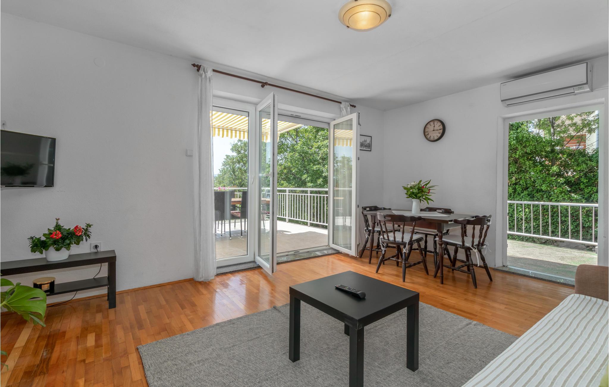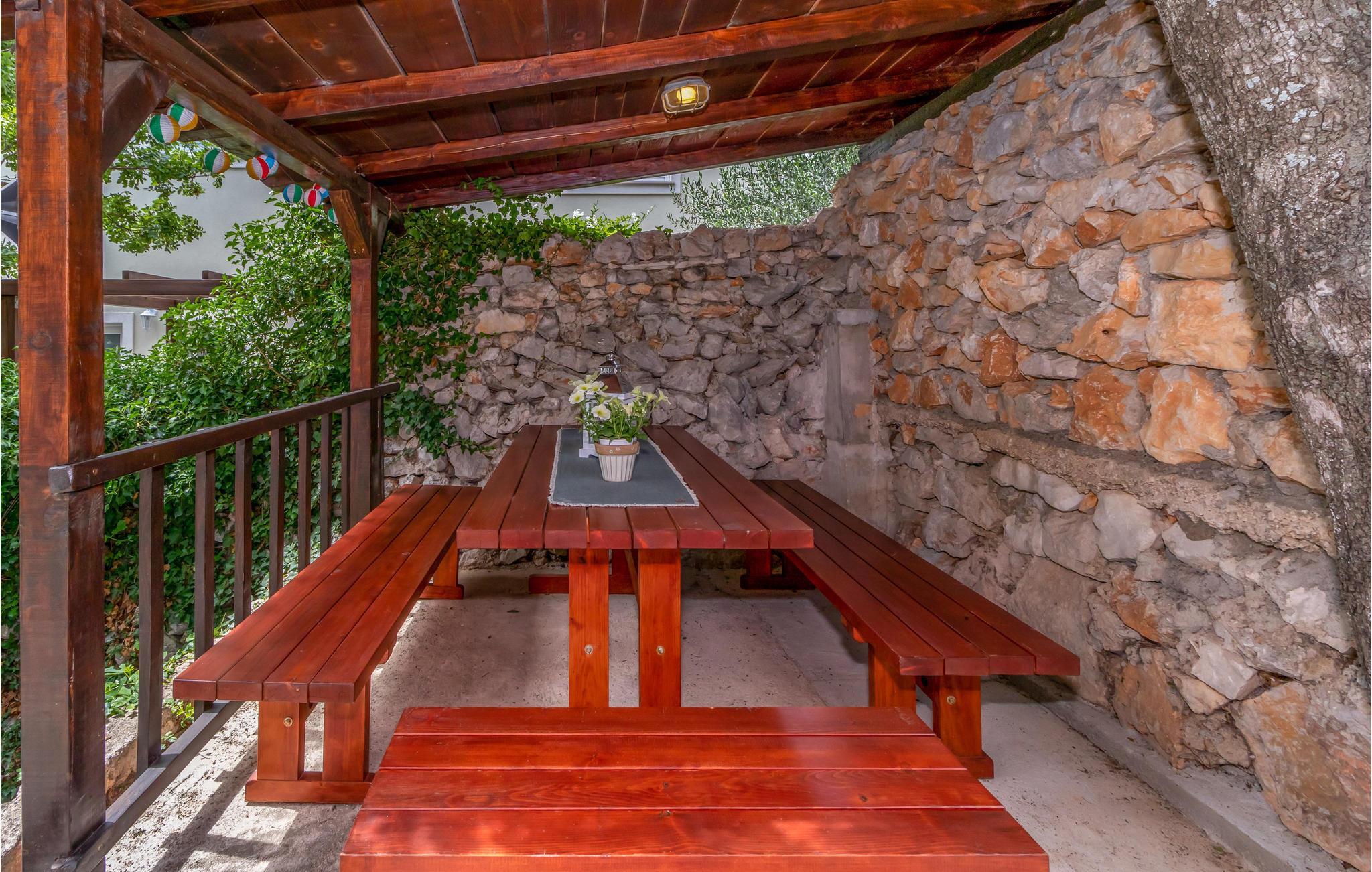 In Strandnähe in dem kleinen Ort Povile liegt dieses schöne Ferienhaus das für mehrere Familien oder einen Freundeskreis geeignet ist. Es besteht aus 4 separaten Wohnungen, die durch Außentreppen miteinander verbunden sind. Im Erdgeschoß befindet sich eine große Terrasse auf der alle Gäste gemeinsam essen können. Der Ort Povile verfügt über einen schönen Strand und klares Wasser. In der Nähe ist ein Geschäft und ein Restaurant. Der nächstgrößere Ort ist Novi Vinodolski, der in den Sommermonaten über ein reiches gastronomisches Angebot verfügt und viele Unterhaltungsmöglichkeiten bietet.