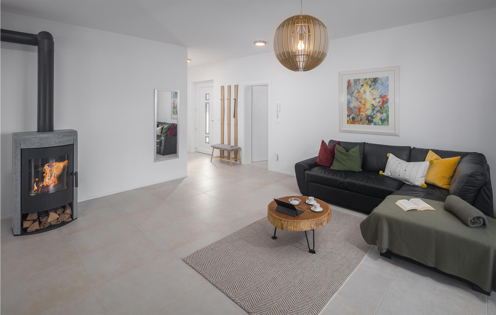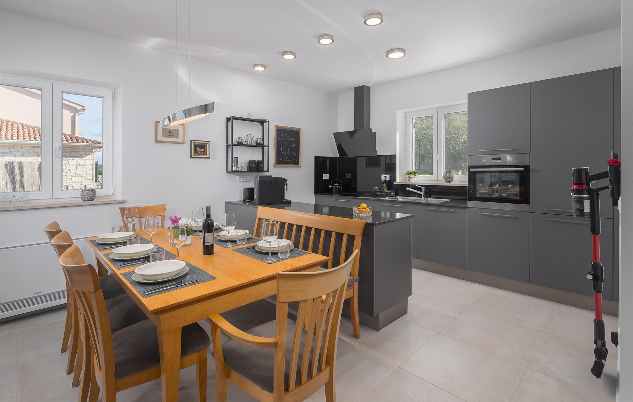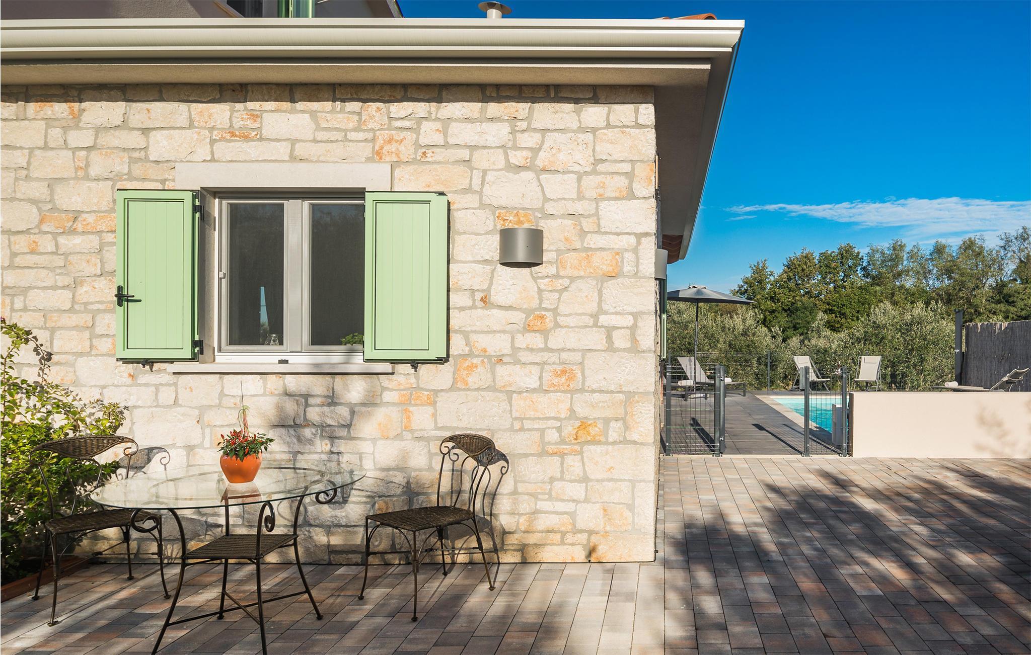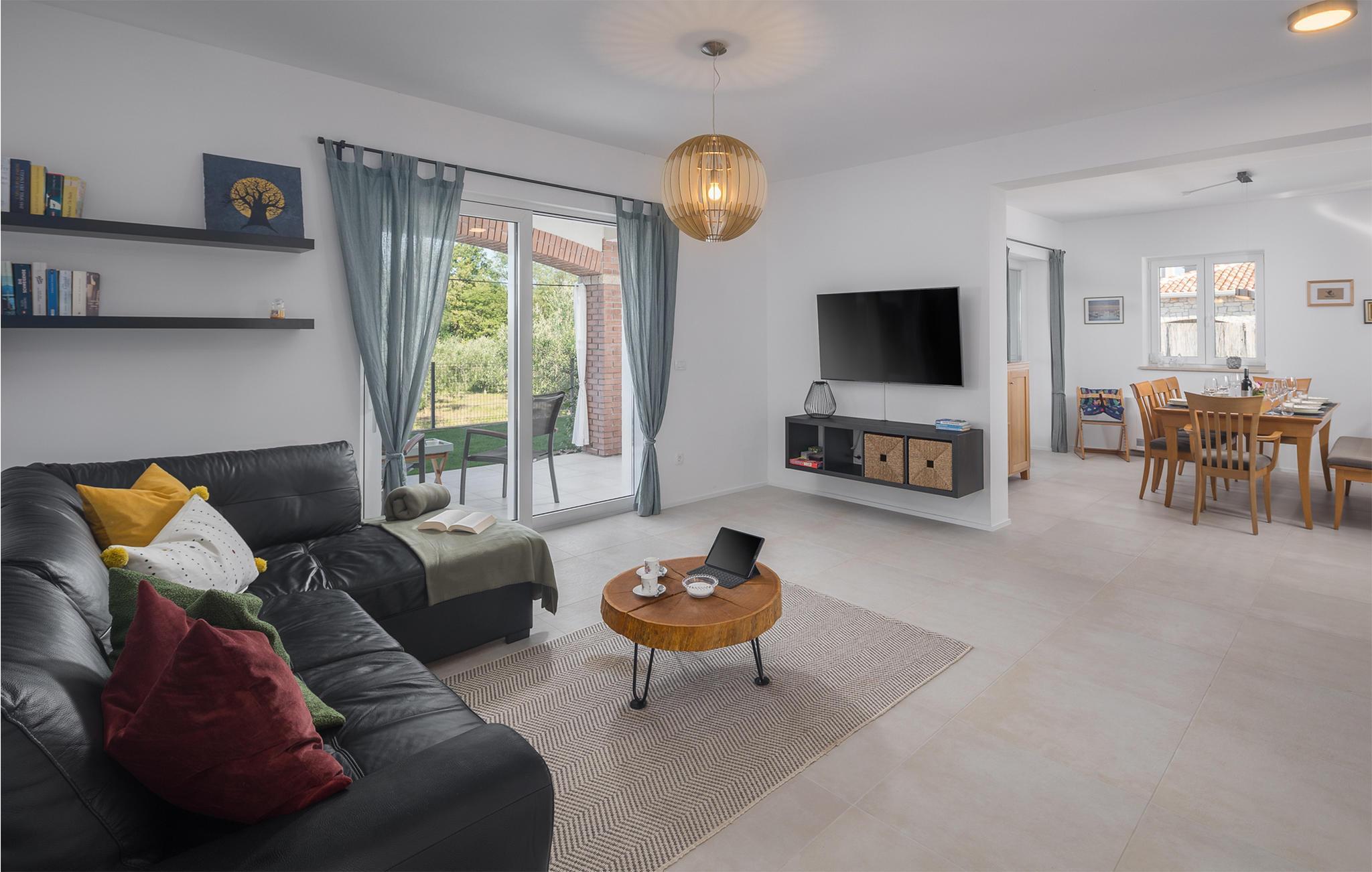 Abseits der Touristenstädte der Küste heißt Sie Buzinija dieses schöne Haus willkommen. Die komfortablen und einladenden Räume versprechen mit dem offenen Grundriss einen entspannten Ferienalltag, den Sie nach der jeweiligen Vorliebe, wie Kochen, Spielen und Entspannen auf dem Sofa, verbringen können. Aber nicht nur im Haus können Sie sich ausruhen, sondern sich auch auf dem Balkon mit Ausblick über die Landschaft oder der Terrasse für Grillabende niederlassen. Der Garten bietet Platz zum Spielen, Sonnenbaden und Platschen im Pool und lässt Sie die gemeinsame Familienzeit voll auskosten.
