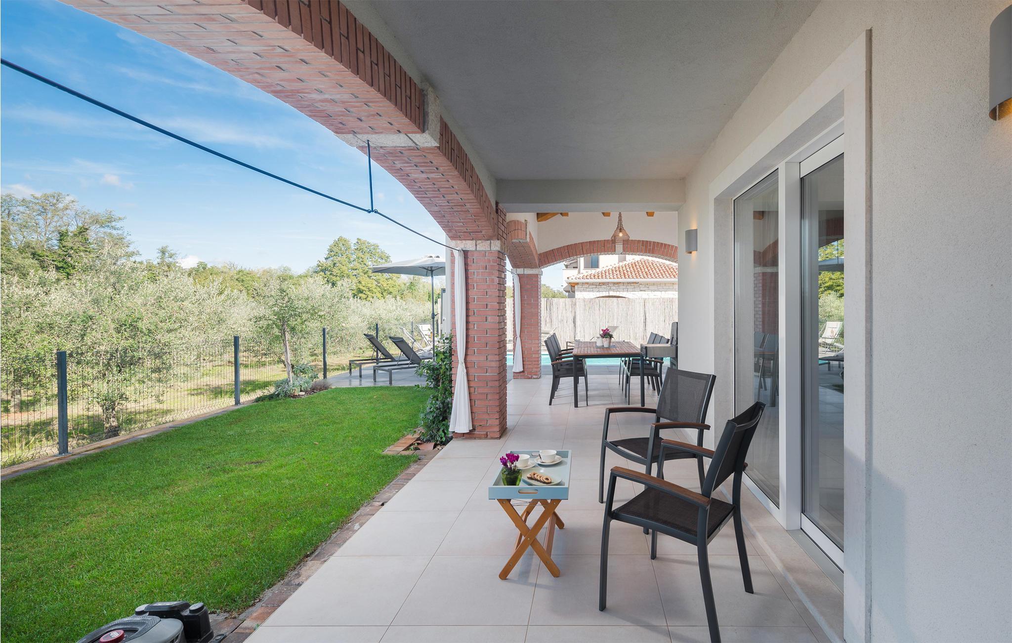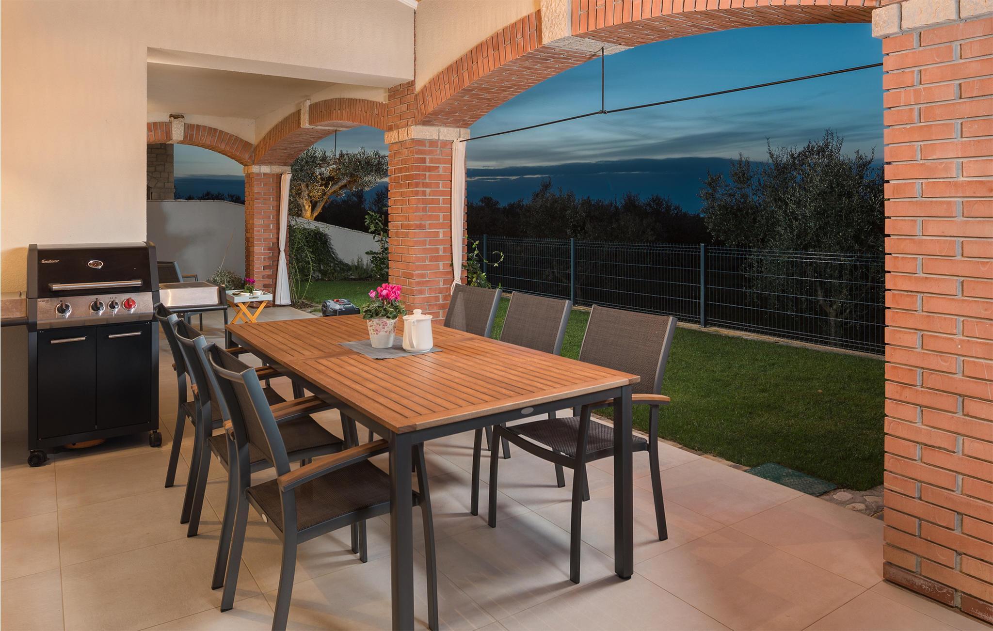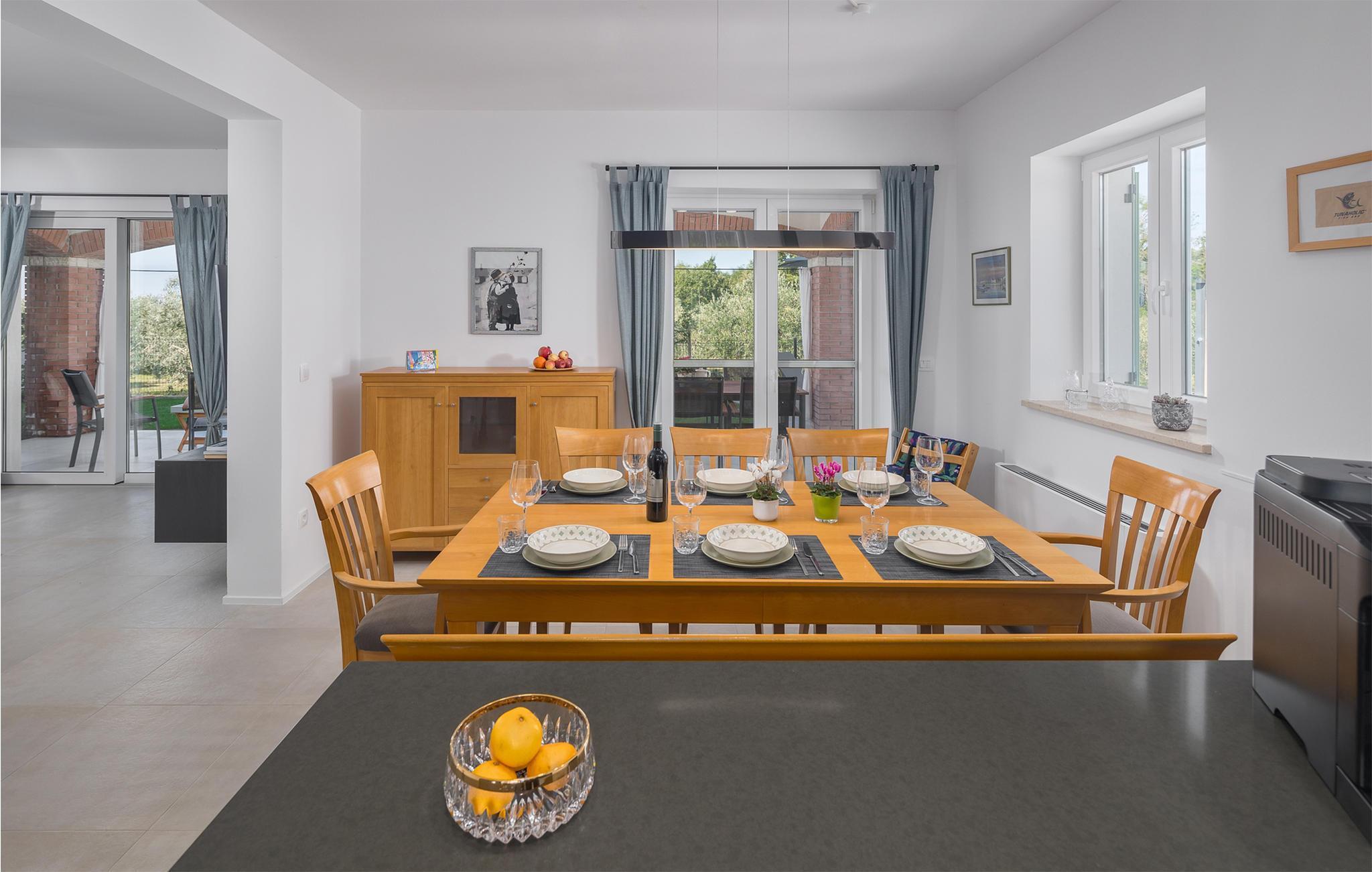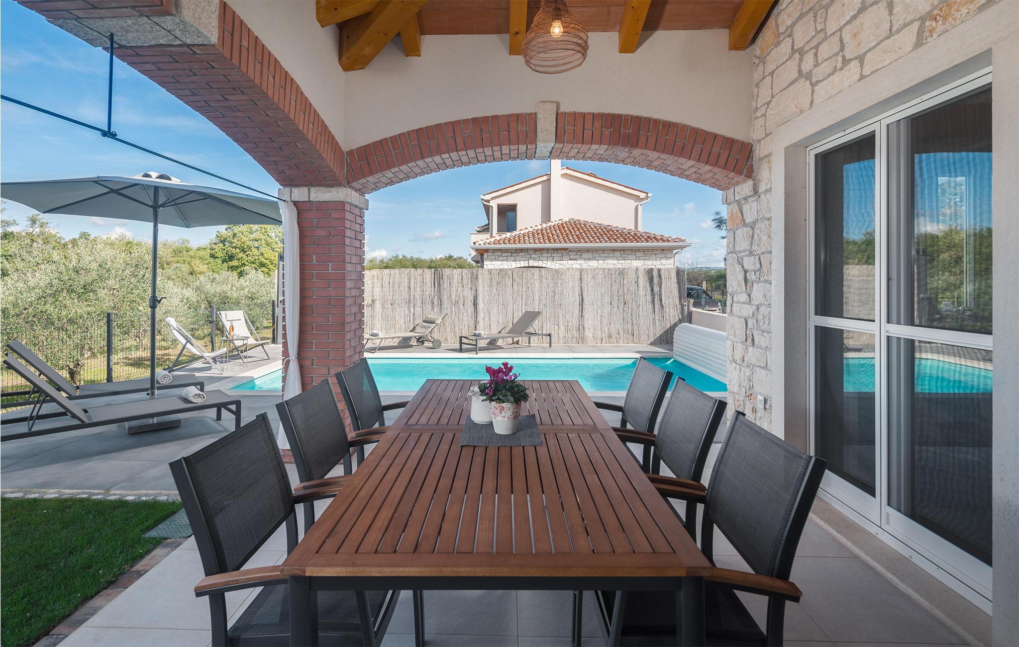 Abseits der Touristenstädte der Küste heißt Sie Buzinija dieses schöne Haus willkommen. Die komfortablen und einladenden Räume versprechen mit dem offenen Grundriss einen entspannten Ferienalltag, den Sie nach der jeweiligen Vorliebe, wie Kochen, Spielen und Entspannen auf dem Sofa, verbringen können. Aber nicht nur im Haus können Sie sich ausruhen, sondern sich auch auf dem Balkon mit Ausblick über die Landschaft oder der Terrasse für Grillabende niederlassen. Der Garten bietet Platz zum Spielen, Sonnenbaden und Platschen im Pool und lässt Sie die gemeinsame Familienzeit voll auskosten.