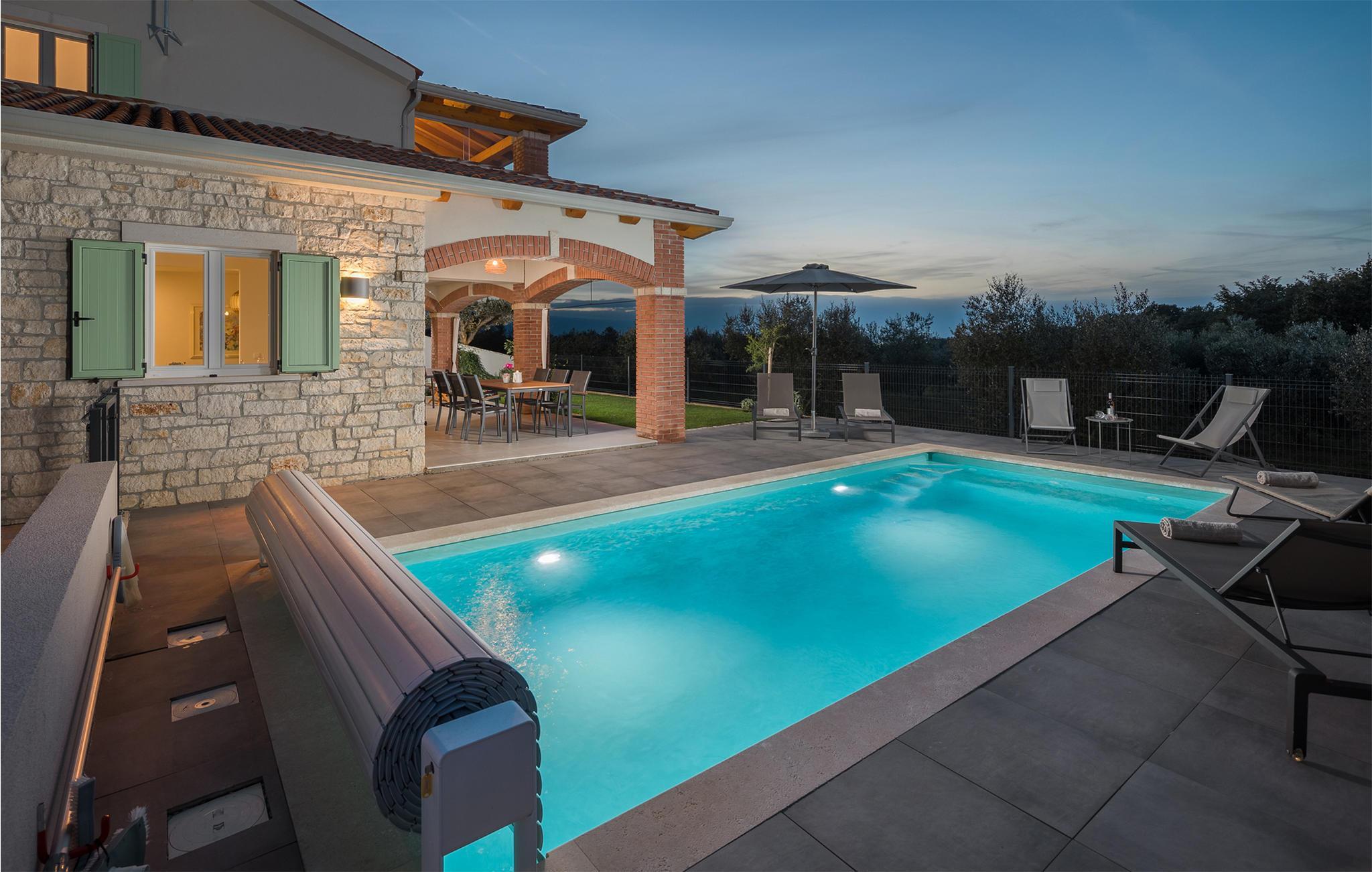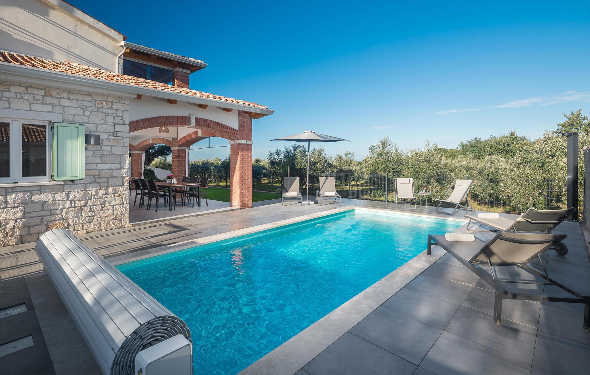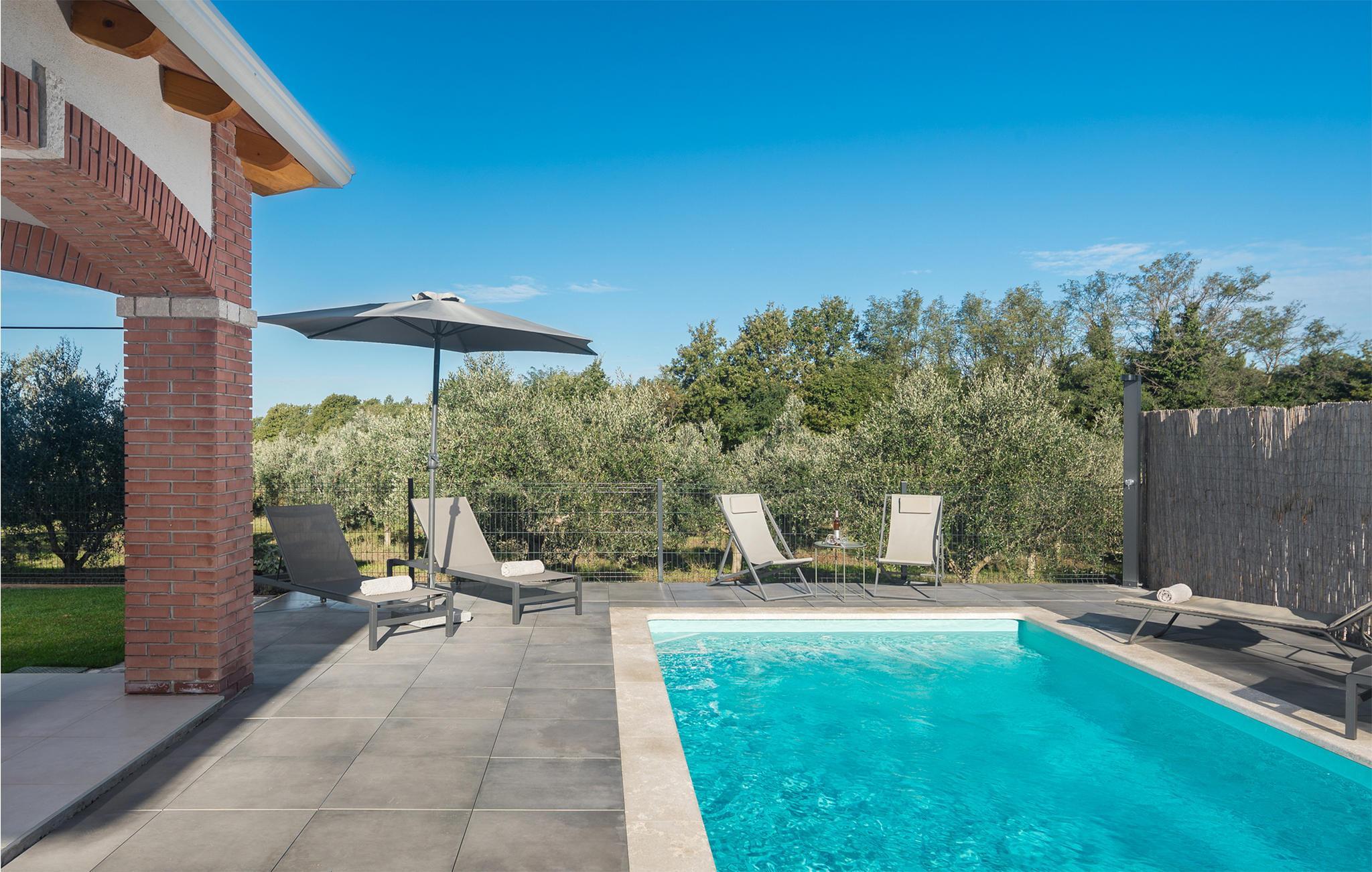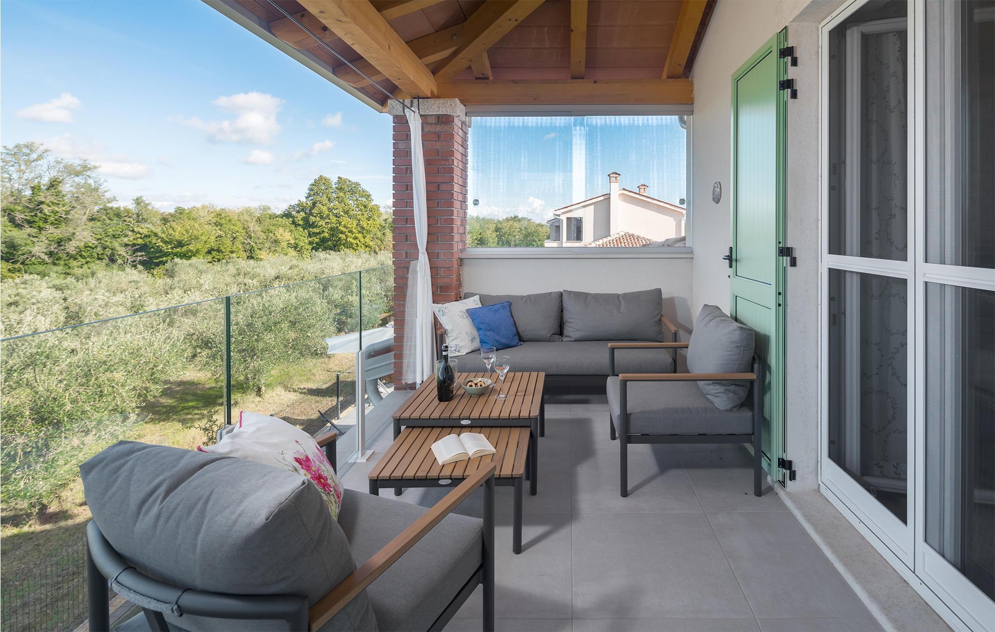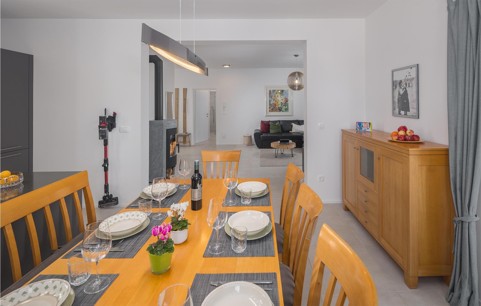 Abseits der Touristenstädte der Küste heißt Sie Buzinija dieses schöne Haus willkommen. Die komfortablen und einladenden Räume versprechen mit dem offenen Grundriss einen entspannten Ferienalltag, den Sie nach der jeweiligen Vorliebe, wie Kochen, Spielen und Entspannen auf dem Sofa, verbringen können. Aber nicht nur im Haus können Sie sich ausruhen, sondern sich auch auf dem Balkon mit Ausblick über die Landschaft oder der Terrasse für Grillabende niederlassen. Der Garten bietet Platz zum Spielen, Sonnenbaden und Platschen im Pool und lässt Sie die gemeinsame Familienzeit voll auskosten.
