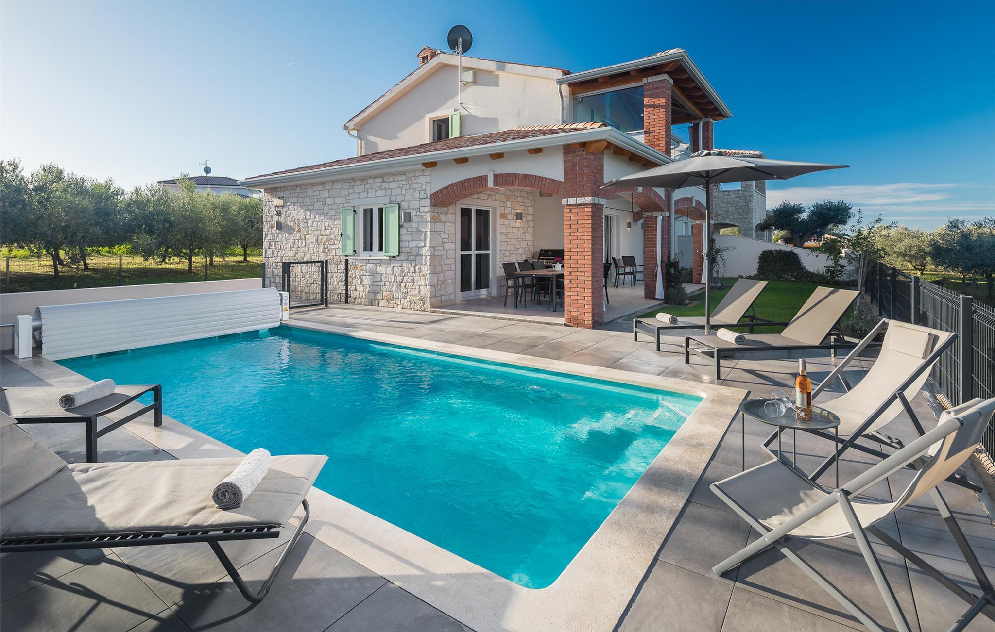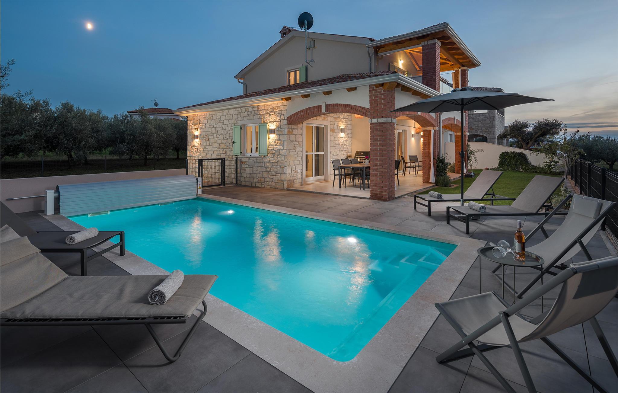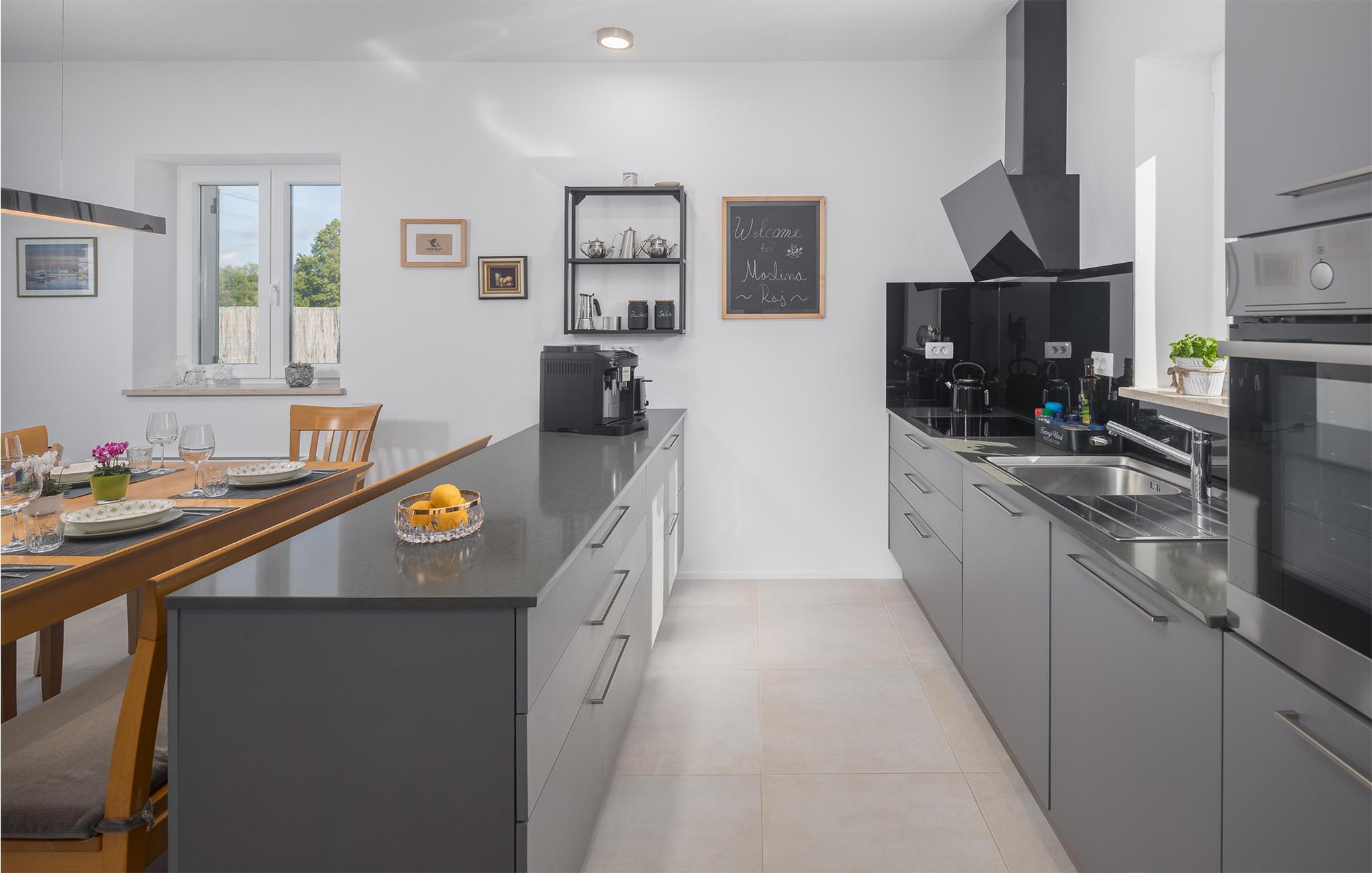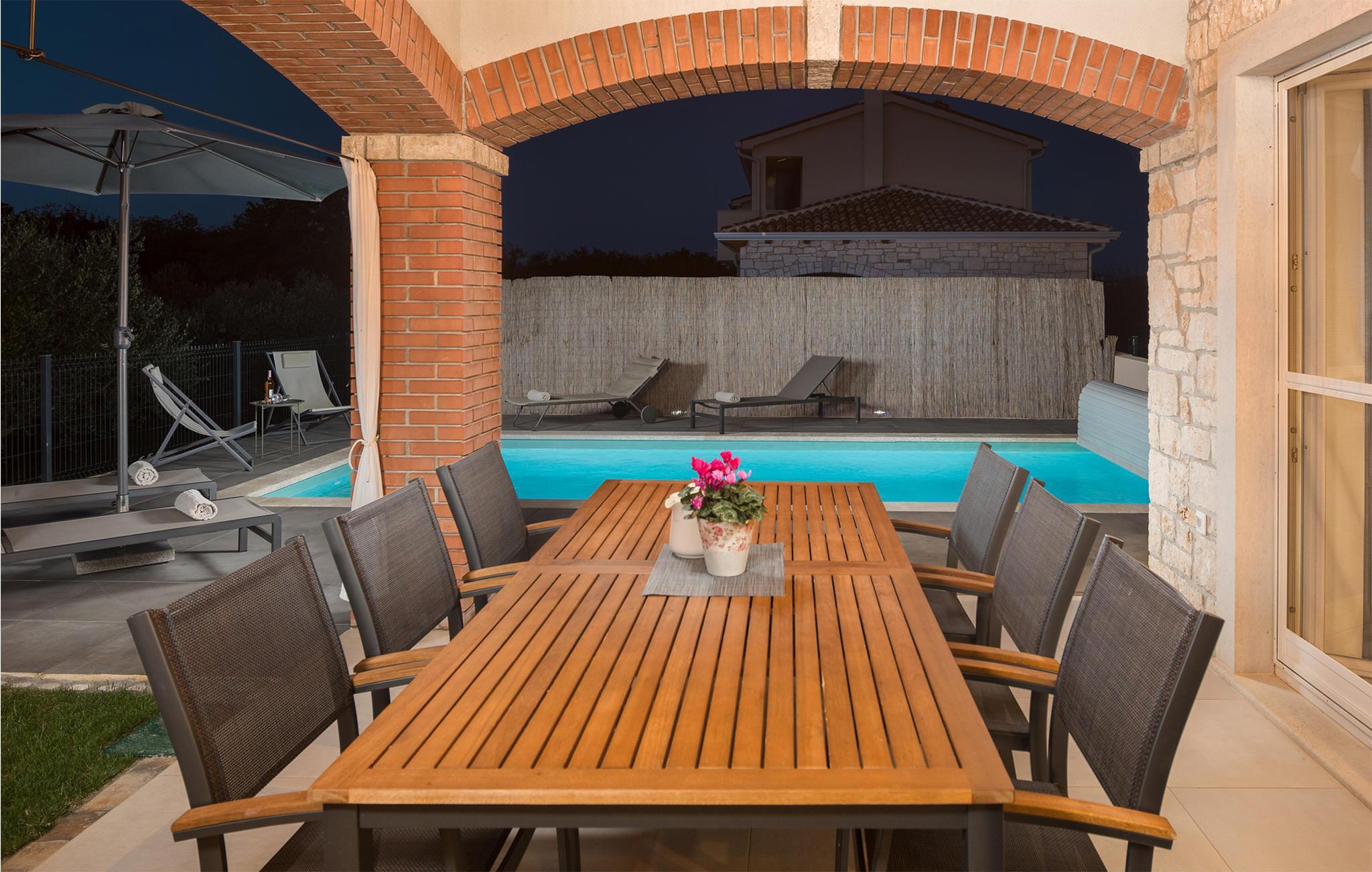 Abseits der Touristenstädte der Küste heißt Sie Buzinija dieses schöne Haus willkommen. Die komfortablen und einladenden Räume versprechen mit dem offenen Grundriss einen entspannten Ferienalltag, den Sie nach der jeweiligen Vorliebe, wie Kochen, Spielen und Entspannen auf dem Sofa, verbringen können. Aber nicht nur im Haus können Sie sich ausruhen, sondern sich auch auf dem Balkon mit Ausblick über die Landschaft oder der Terrasse für Grillabende niederlassen. Der Garten bietet Platz zum Spielen, Sonnenbaden und Platschen im Pool und lässt Sie die gemeinsame Familienzeit voll auskosten.