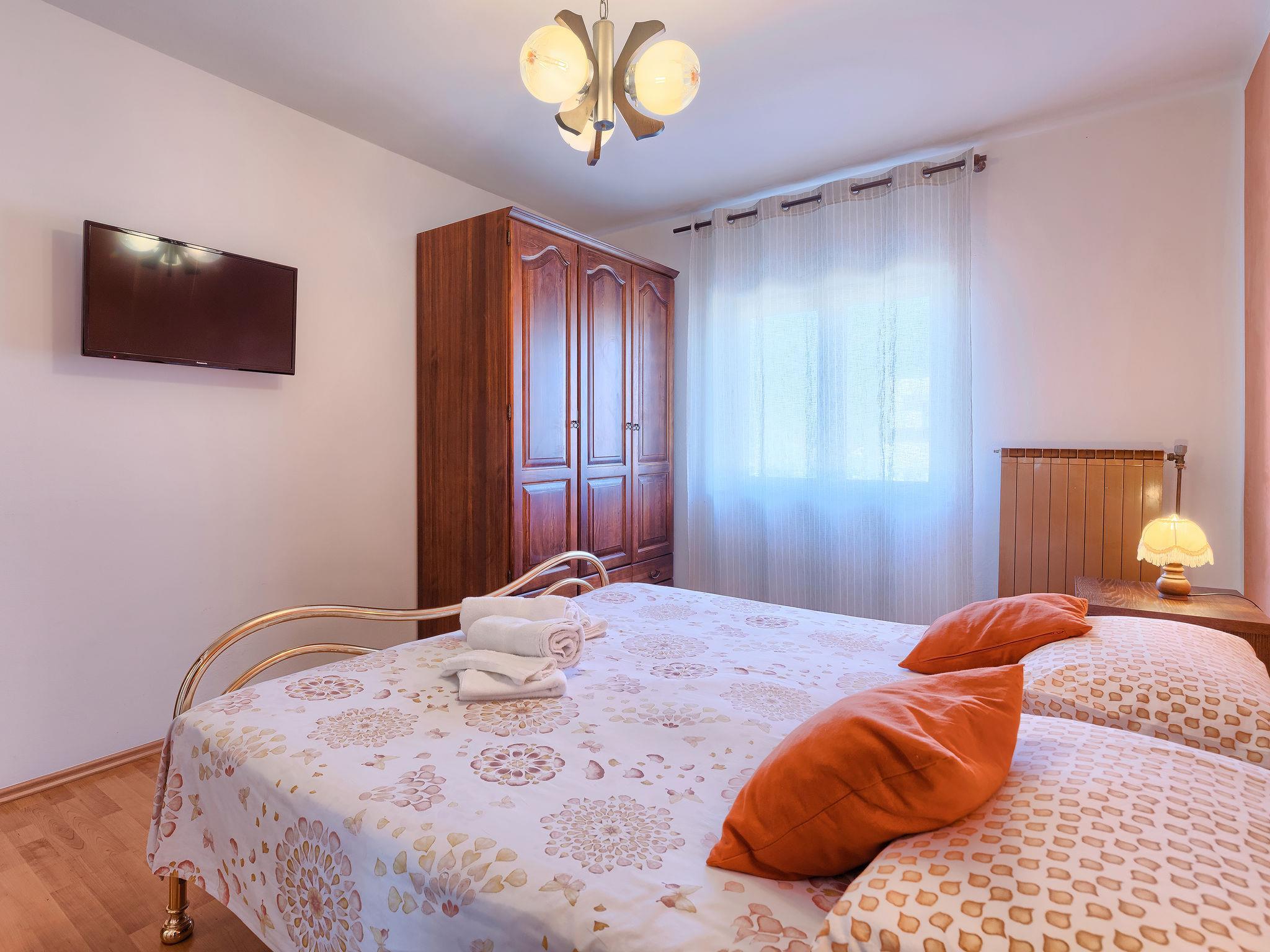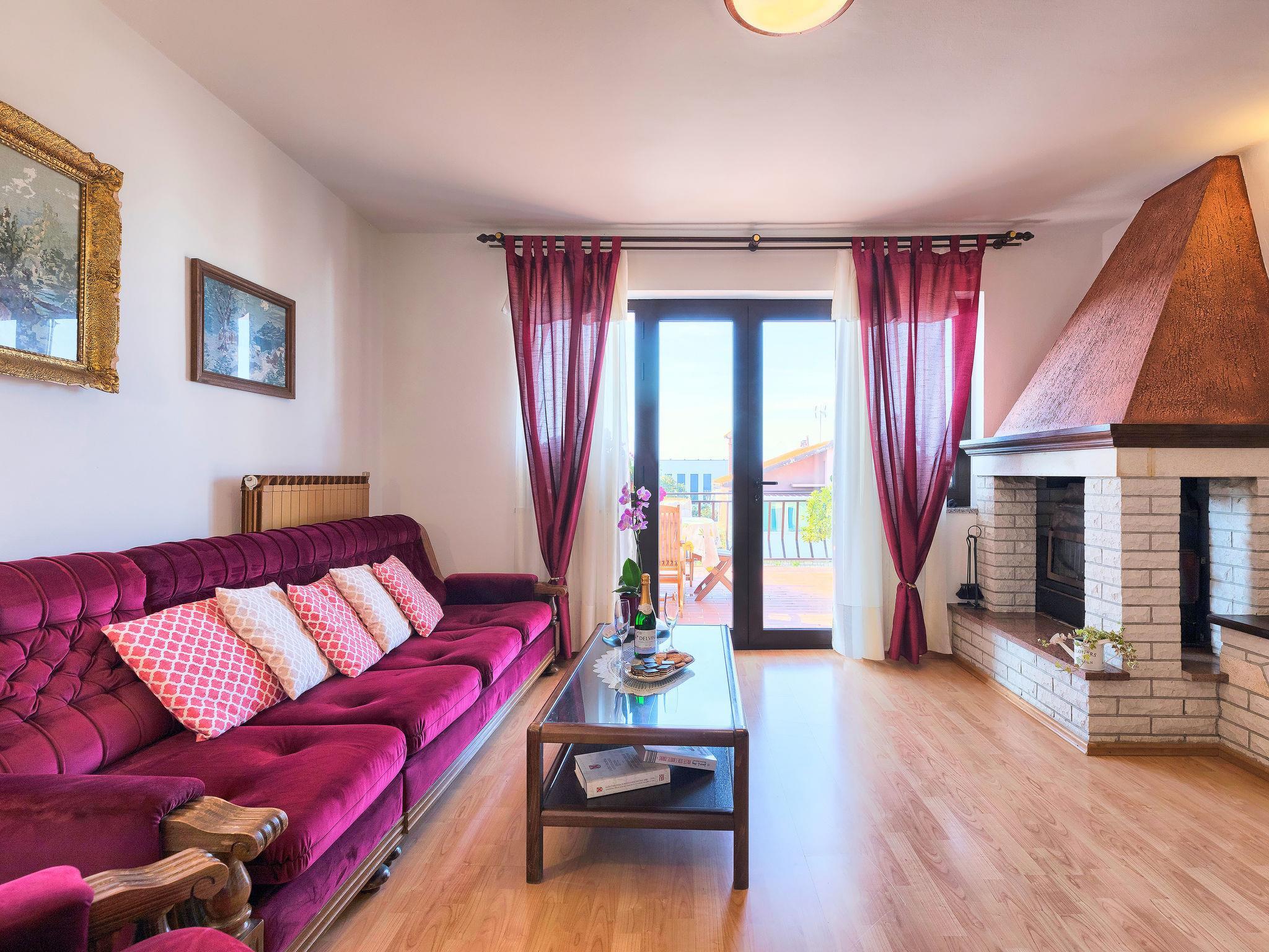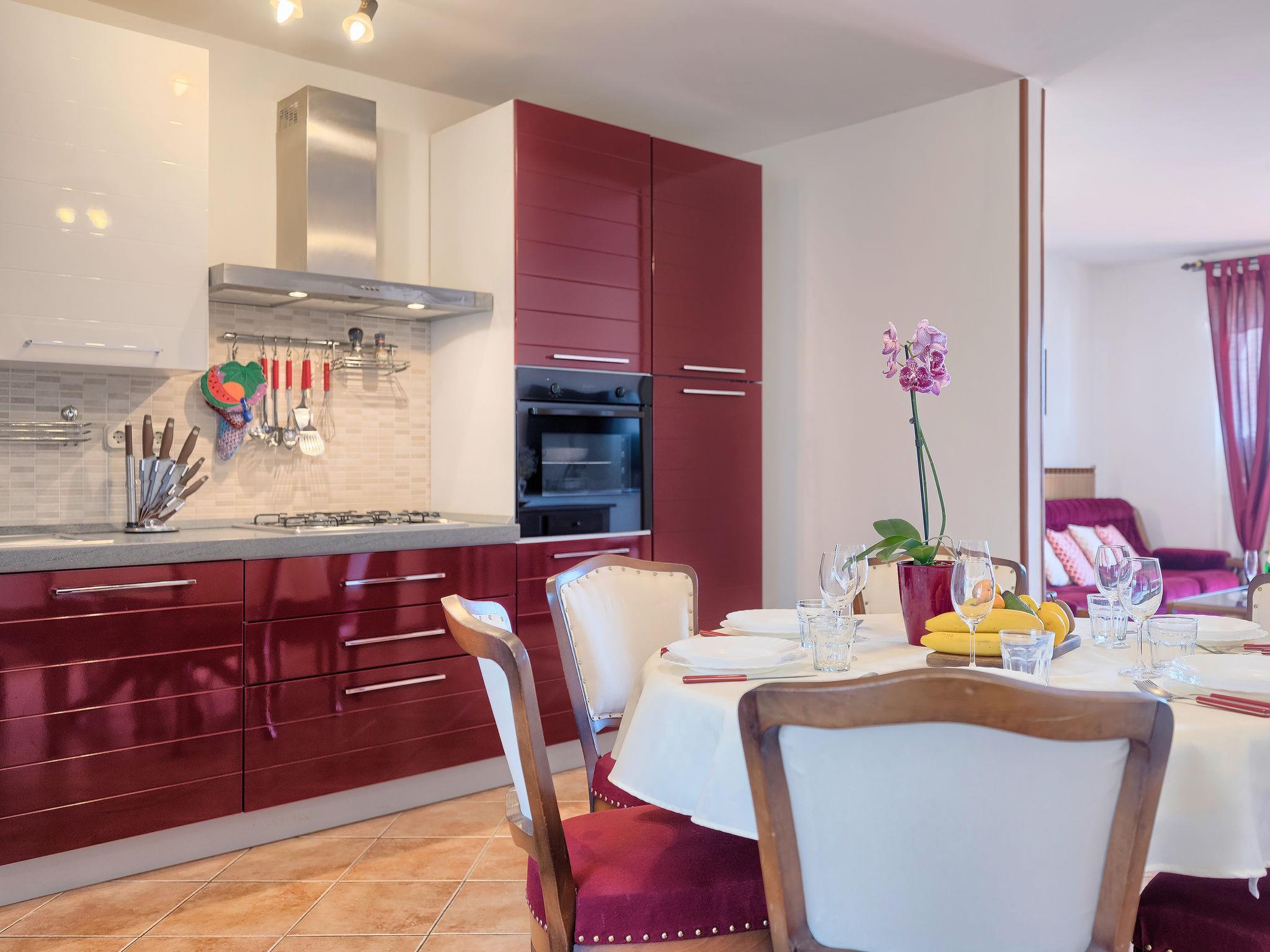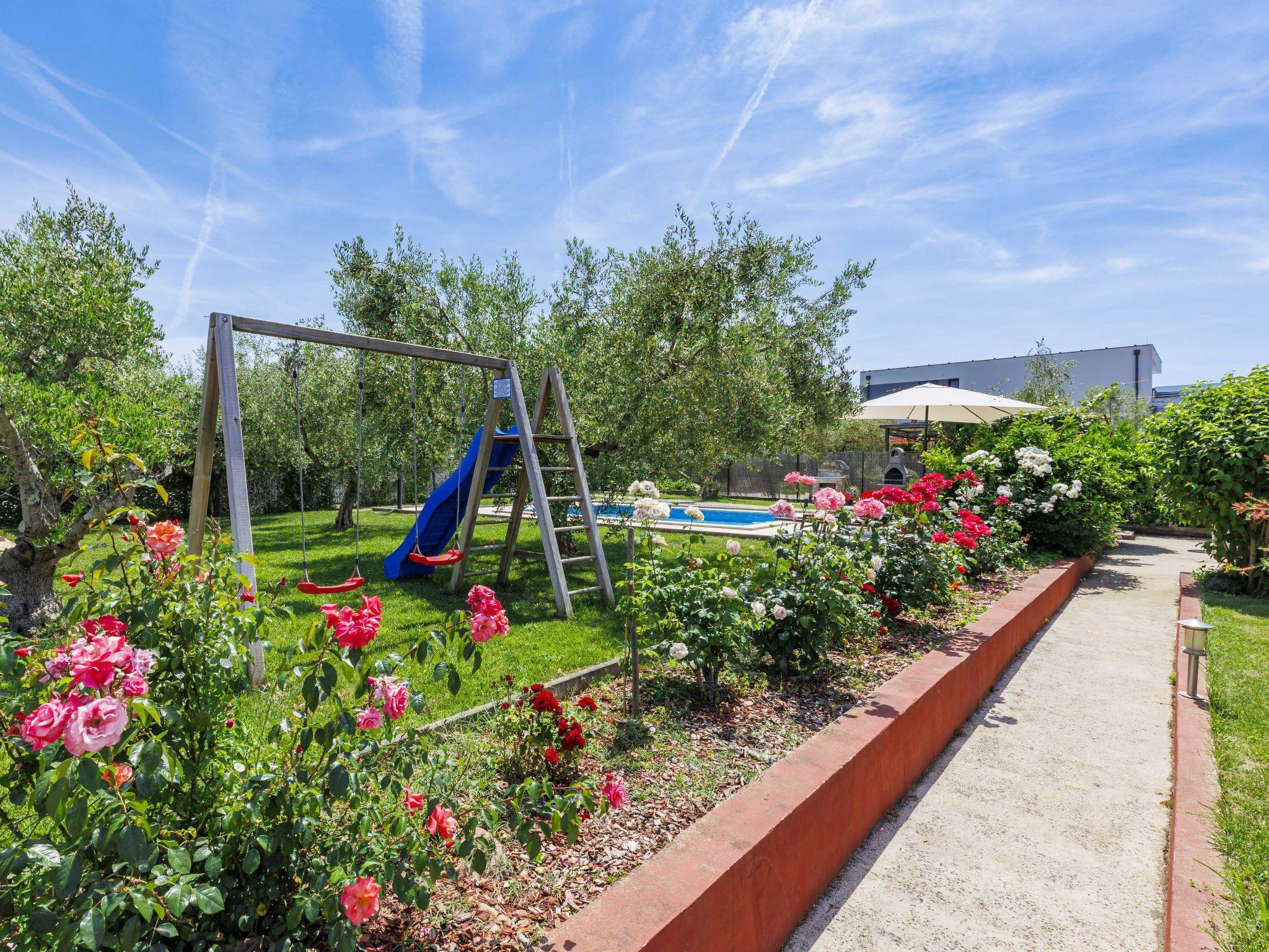 3-Zimmer-Wohnung 108 m2 im 1. Stock. Wohn-/Esszimmer 33 m2 mit 1 Doppeldiwanbett (160 cm, Länge 190 cm), Sat-TV (Flachbildschirm), Klimaanlage. Ausgang zur Terrasse. 1 Zimmer mit 1 Doppelbett (2 x 90 cm, Länge 200 cm), Sat-TV und Klimaanlage. 1 Zimmer mit 2 Betten (90 cm, Länge 200 cm), Sat-TV und Klimaanlage. Offene Küche (Backofen, Geschirrspüler, 4 Flammen, Wasserkocher, Tiefkühler, elektrische Kaffeemaschine). Dusche/Bidet/WC, sep. WC. Heizung (extra). Terrasse 8 m2, überdacht, Terrasse 15 m2. Terrassenmöbel, Liegestühle. Sicht auf das Schwimmbad und den Garten. Zur Verfügung: Waschmaschine, Bügeleisen, Babybett, Haartrockner. Internet (Wireless LAN, gratis). Bitte beachten: Nichtraucher-Unterkunft. Eigener Eingang.