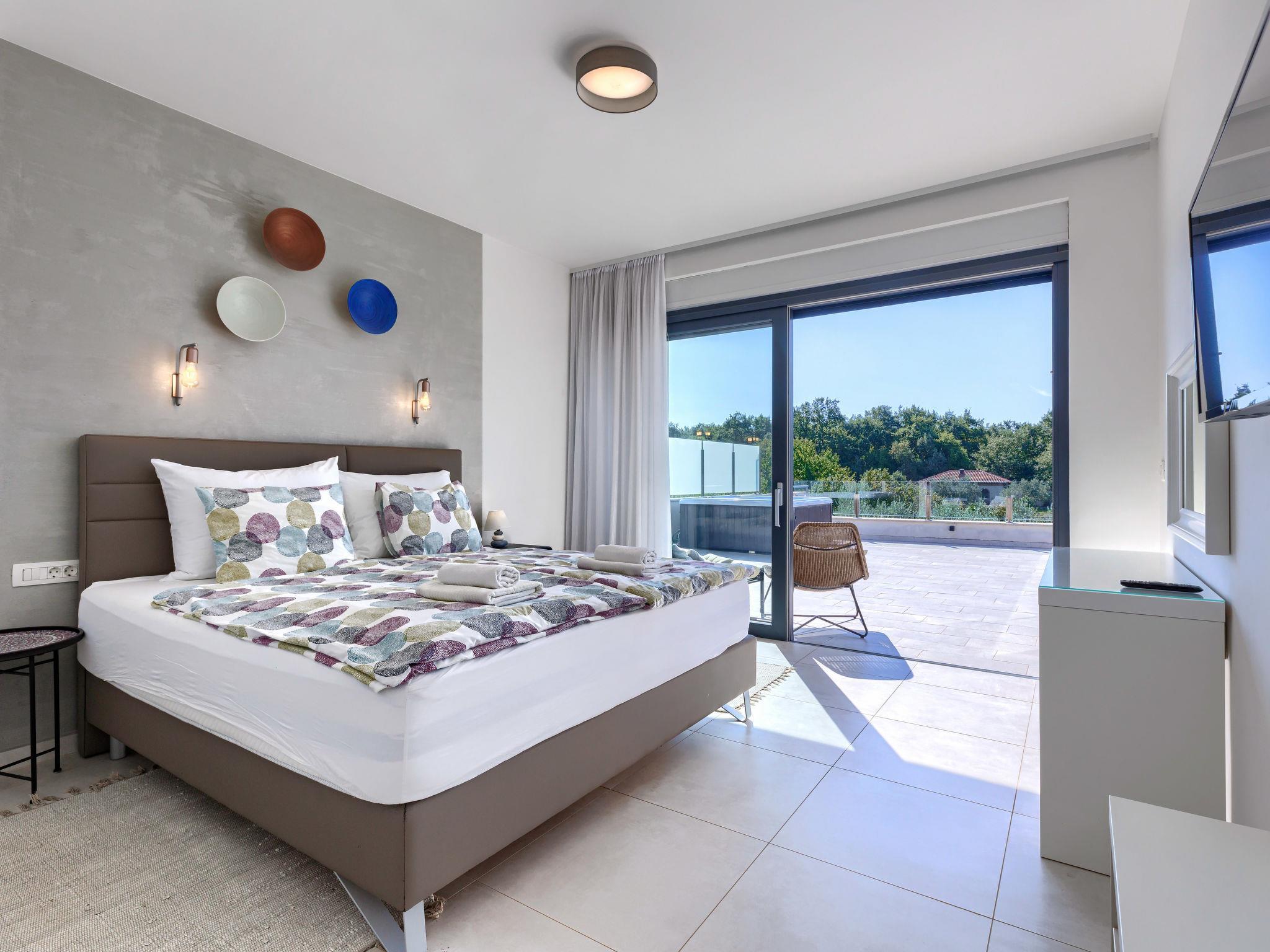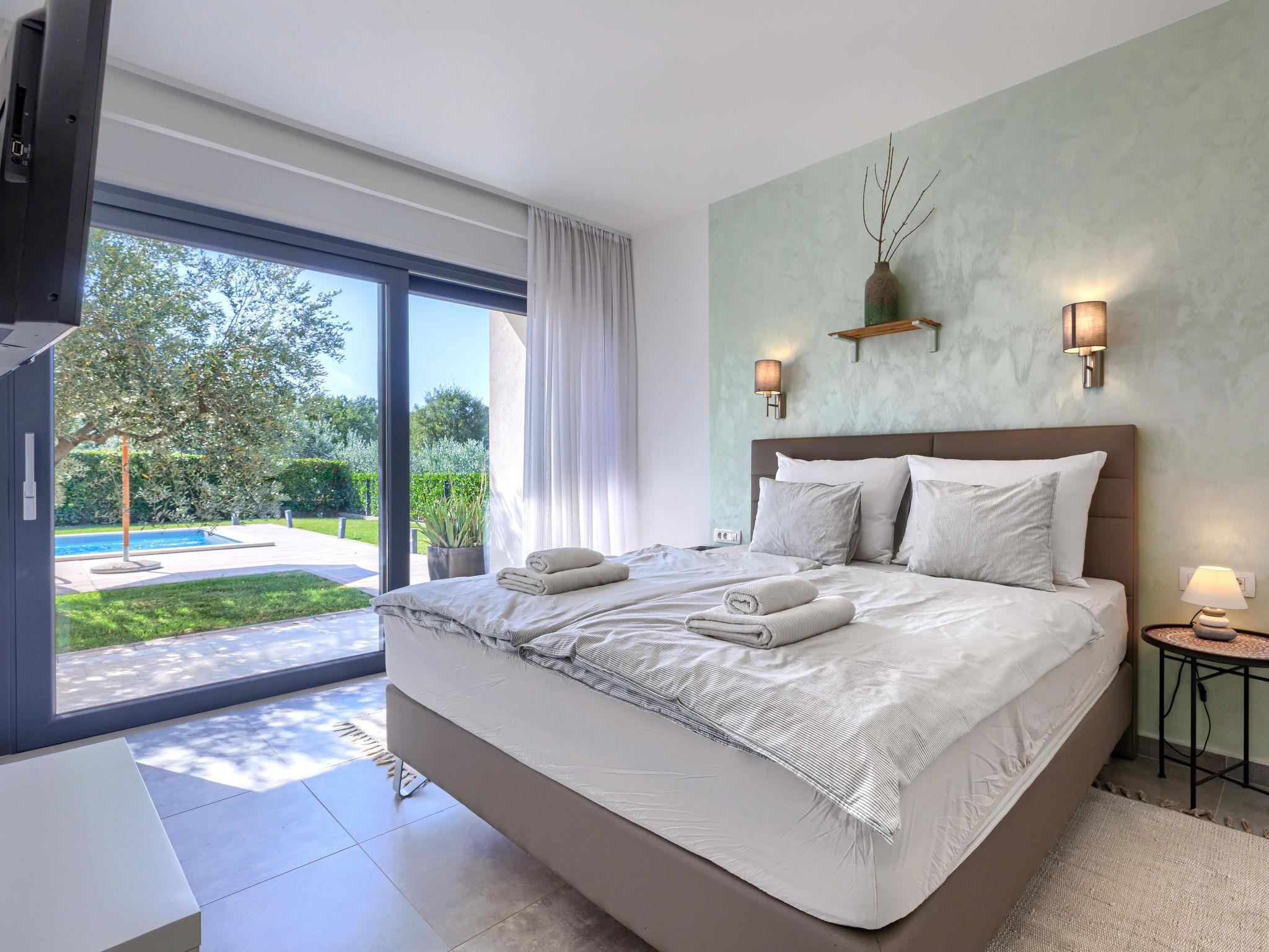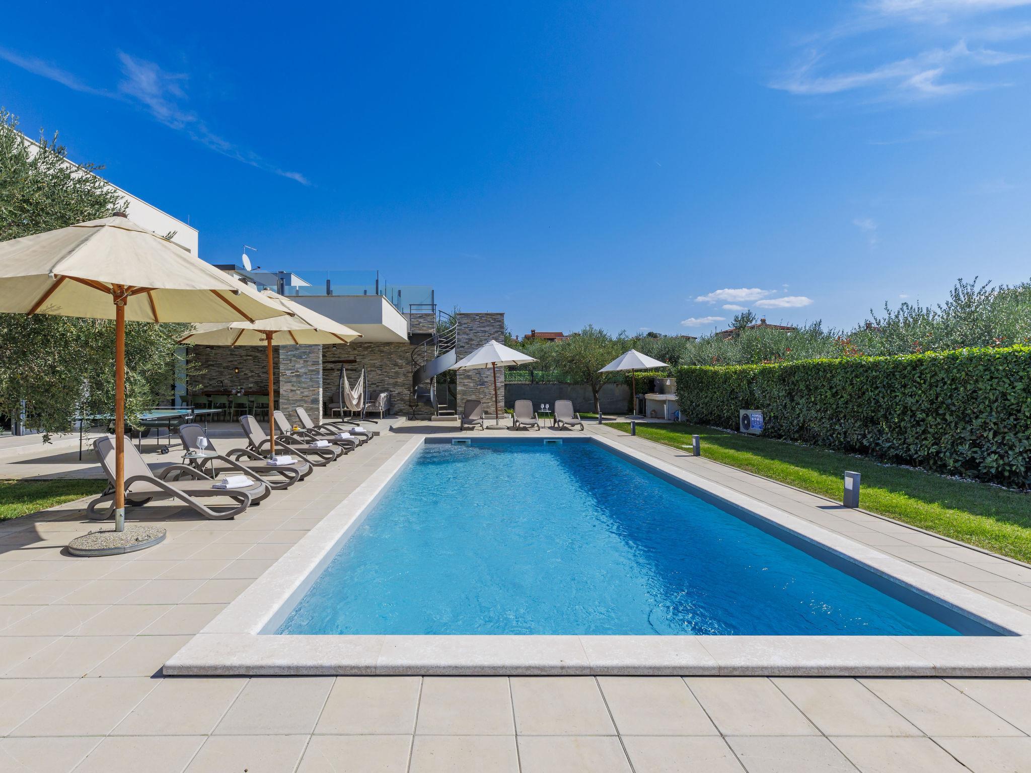 Luxuriöse Villa "Bianca", auf 2 Stockwerken. Im Ortsteil Sveti Servul, 2 km vom Zentrum von Novigrad, ruhige, sonnige Lage, 3 km vom Meer, 3 km vom Strand. Zur Alleinbenutzung: Grundstück 1'000 m2 mit Pflanzen und Bäumen, Schwimmbad eckig, beheizt (10 x 4 m, 140 cm tief, saisonale Verfügbarkeit: 01.Apr. - 30.Okt.) mit Innentreppe und Salzelektrolyse-Reinigungssystem. Aussendusche, Sprudelbad, Terrasse (50 m2), Gartenmöbel, Grill. Im Hause: Internetzugang, Sauna, Tischtennis, Waschmaschine, Wäschetrockner. Zur Verfügung: Fahrräder (3). Parkplatz (für 3 Autos) beim Haus auf dem Grundstück. E-Ladestation. Einkaufsgeschäft 1.5 km, Supermarkt 1.5 km, Restaurant 500 m, Bushaltestelle 2 km, Kieselstrand 3 km, Felsstrand 3 km. Golfplatz (18 Loch) 25 km, Tennis 2 km, Wanderwege ab Haus 500 m, Radweg 550 m. Nahe gelegene Sehenswürdigkeiten: Aquapark 5 km. Bitte beachten: Flugplatz 60 km vom Haus. Schwimmbad beheizt (extra). Es ist notwendig 7 Tage im Voraus bekannt zu geben, ob die Schwimmbadheizung eingeschaltet werden soll.